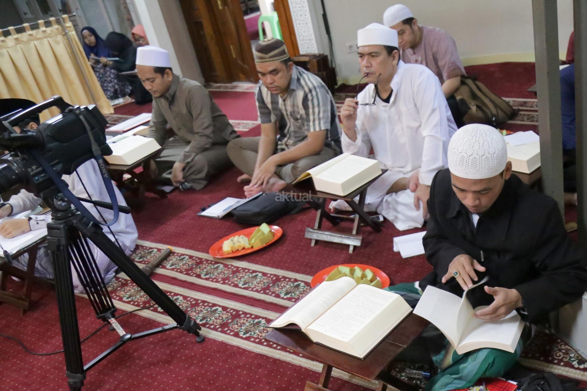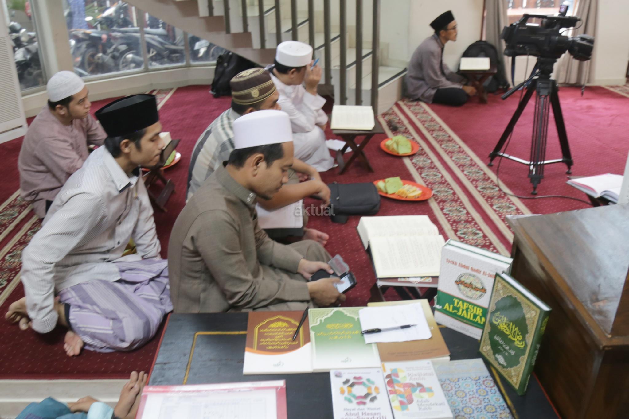 Peserta talaqinkitab Karya besar imam ahlu sunnah _al-Imam al-Hafizh Muhammad bin Isa at-Tirmidzi_ dengan Ijazah Mutasil & Sanad Riwayah hingga Imam Tirmidzi di Zawiyah Arraudhah, Jalan Tebet Barat, Jakarta Selatan, Minggu (4/2/2018). AKTUAL/Tino Oktaviano