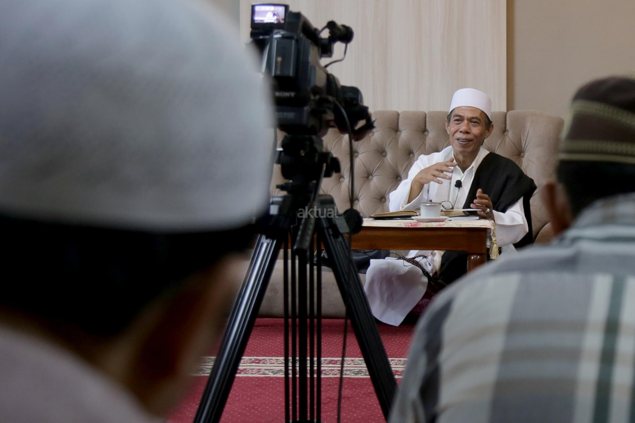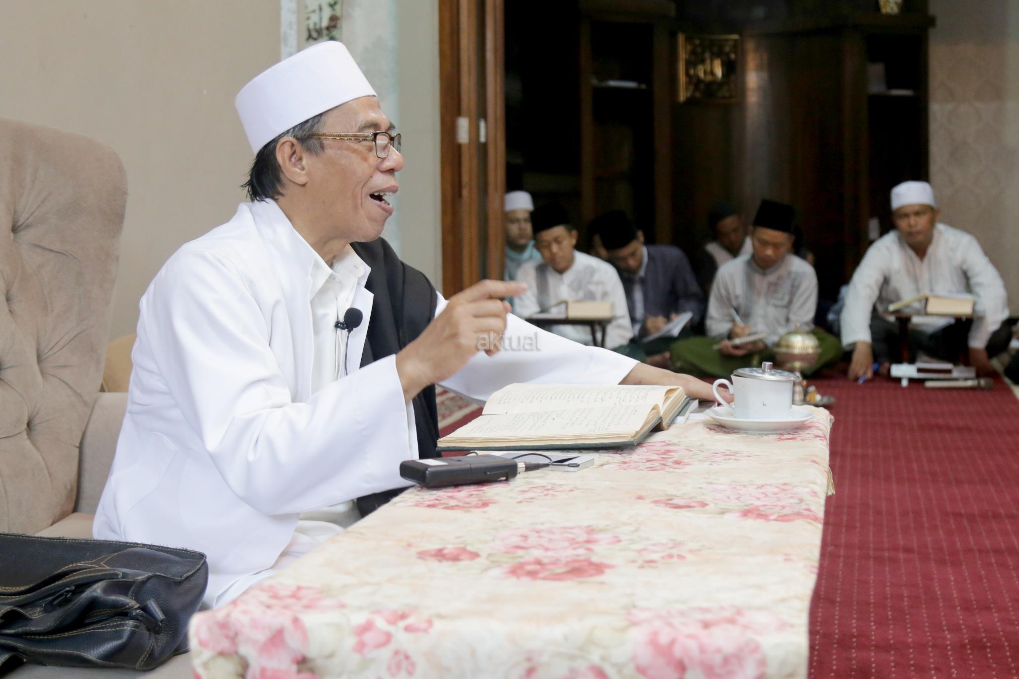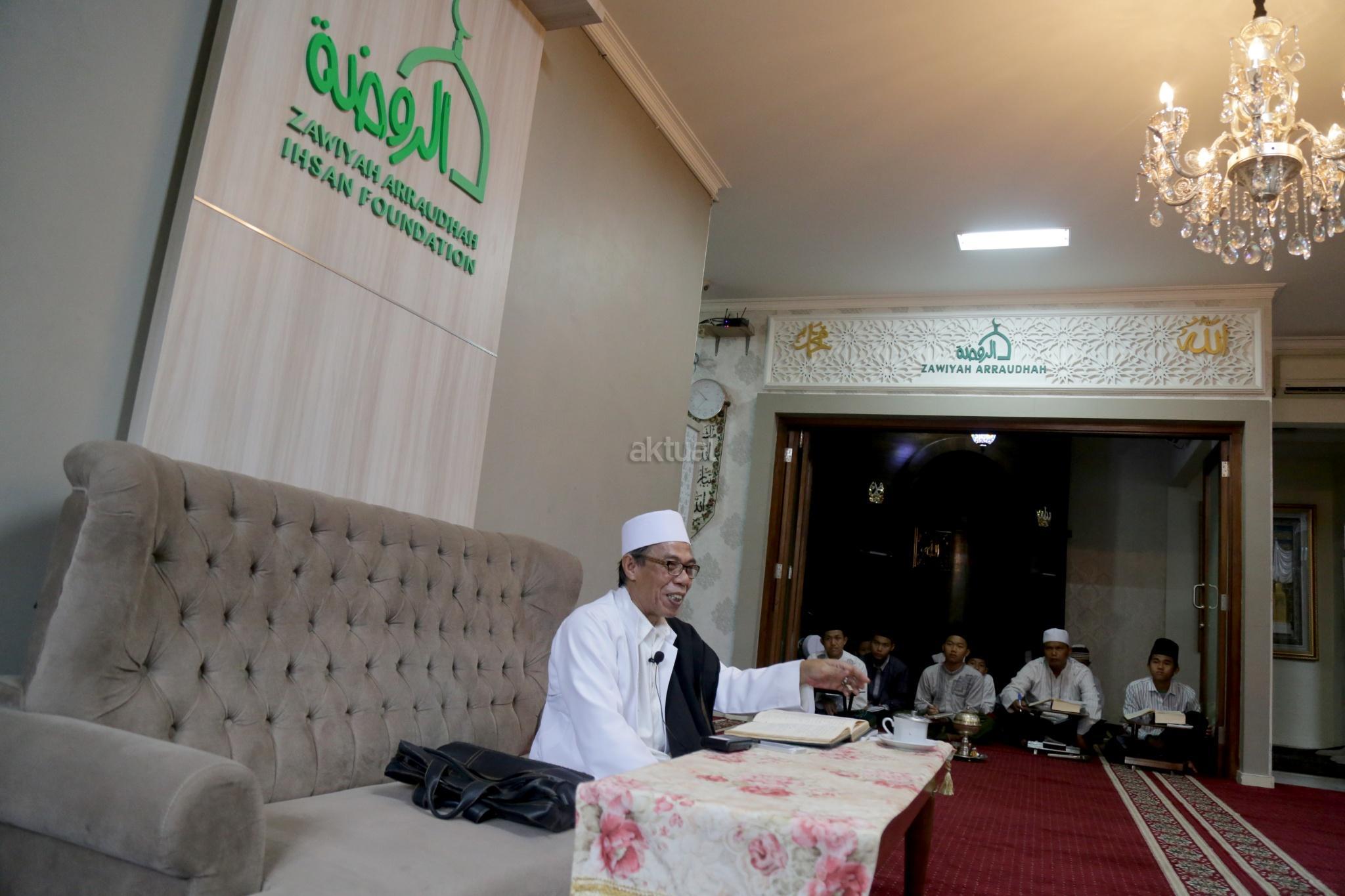 KH. Ahmad Marwazie menyampaikan kajian Karya besar imam ahlu sunnah _al-Imam al-Hafizh Muhammad bin Isa at-Tirmidzi_ dengan Ijazah Mutasil & Sanad Riwayah hingga Imam Tirmidzi saat Talaqi Kitab di Zawiyah Arraudhah, Jalan Tebet Barat, Jakarta Selatan, Minggu (4/2/2018). AKTUAL/Tino Oktaviano