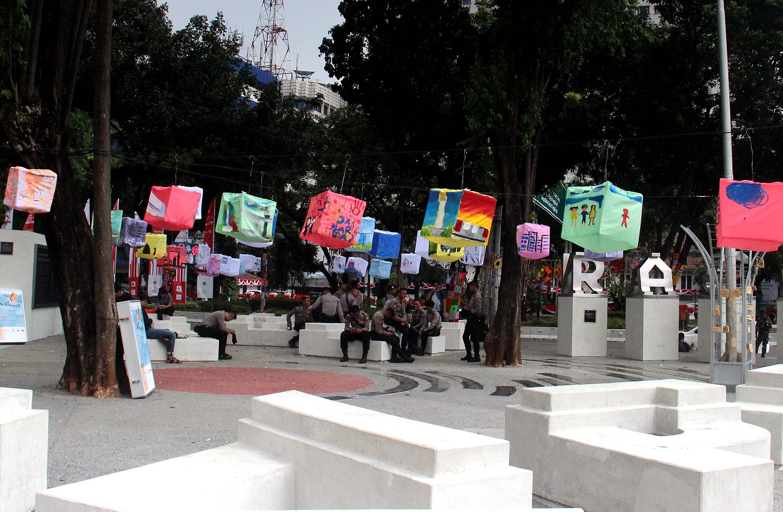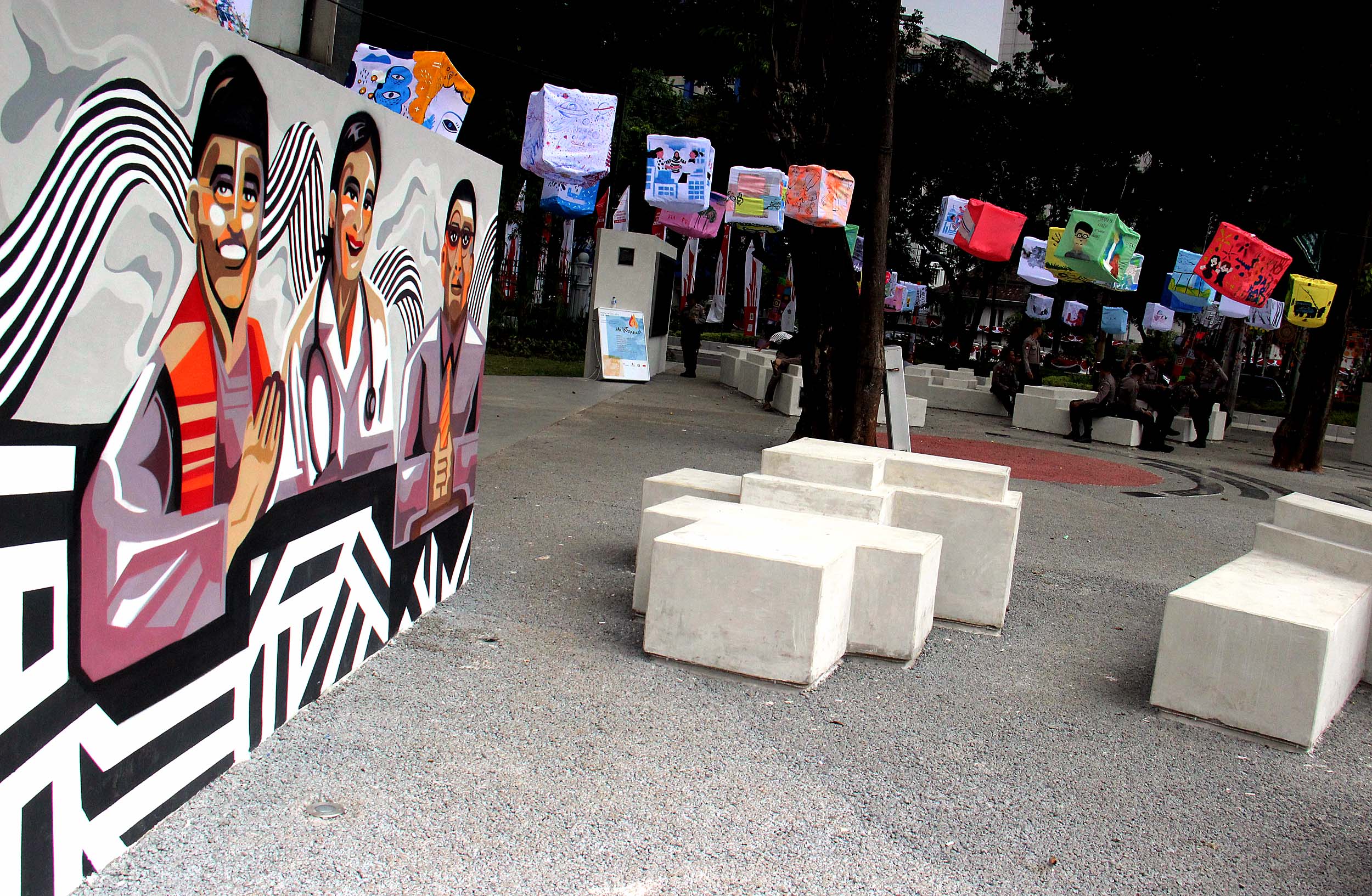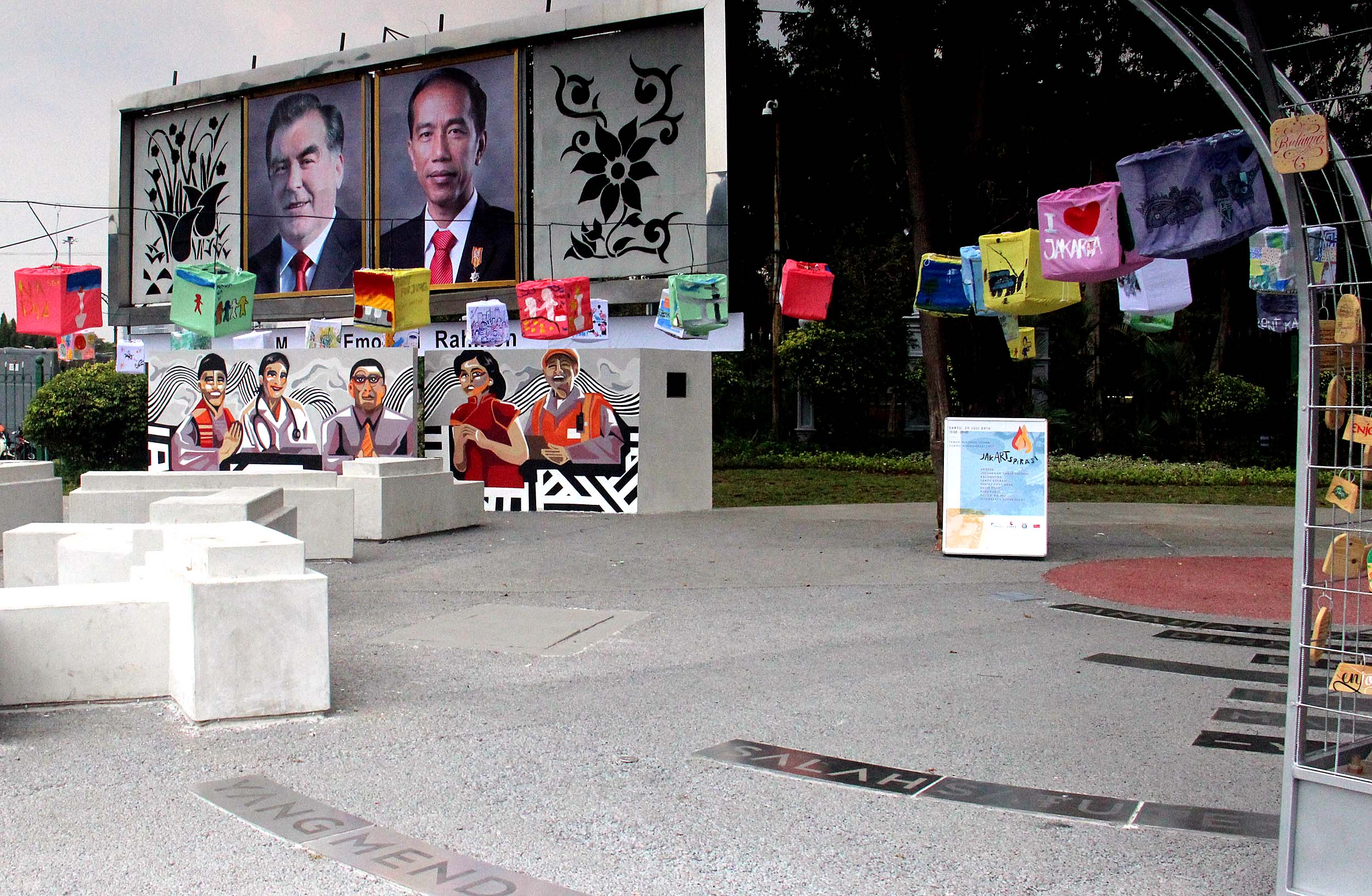 Konsep dan desain taman tersebut terdiri dari bangku taman yang berbentuk potongan huruf, instalasi tulisan Ragam Insan dan instalasi pada lantai yang berisi kutipan dari tokoh-tokoh ternama Indonesia seperti Muhammad Hatta, Abdurrahman Wahid, YB Mangunwijaya dan Buya Hamka.Taman yang diperuntukan bagi para pendemo ini diresmikan oleh Gubernur DKI Jakarta Basuki Tjahja Purnama pada 30 Juli 2016.