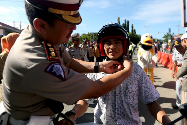 Bahkan, salah seorang polisi yang mengendarai sepeda motor diceburkan ke parit. Beruntung, polisi tersebut tidak mengalami luka serius dan diselamatkan oleh anggota lainnya.