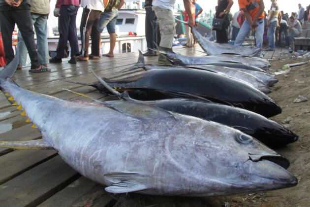 Nelayan menata ikan tuna untuk pangsa ekspor di Pelabuhan Perikanan Samudera, Lampulo, Banda Aceh, Sabtu (12/3). Sehubungan meningkatnya hasil tangkapan ikan tuna Indonesia, Menteri Kelautan dan Perikanan Susi Pudjiastuti meminta Regional Fisheries Management Organisations (RFMOs) menaikkan kuota tangkap ikan tuna Indonesia sebesar 500 ribu ton pertahun. ANTARA FOTO/Ampelsa/nz/16