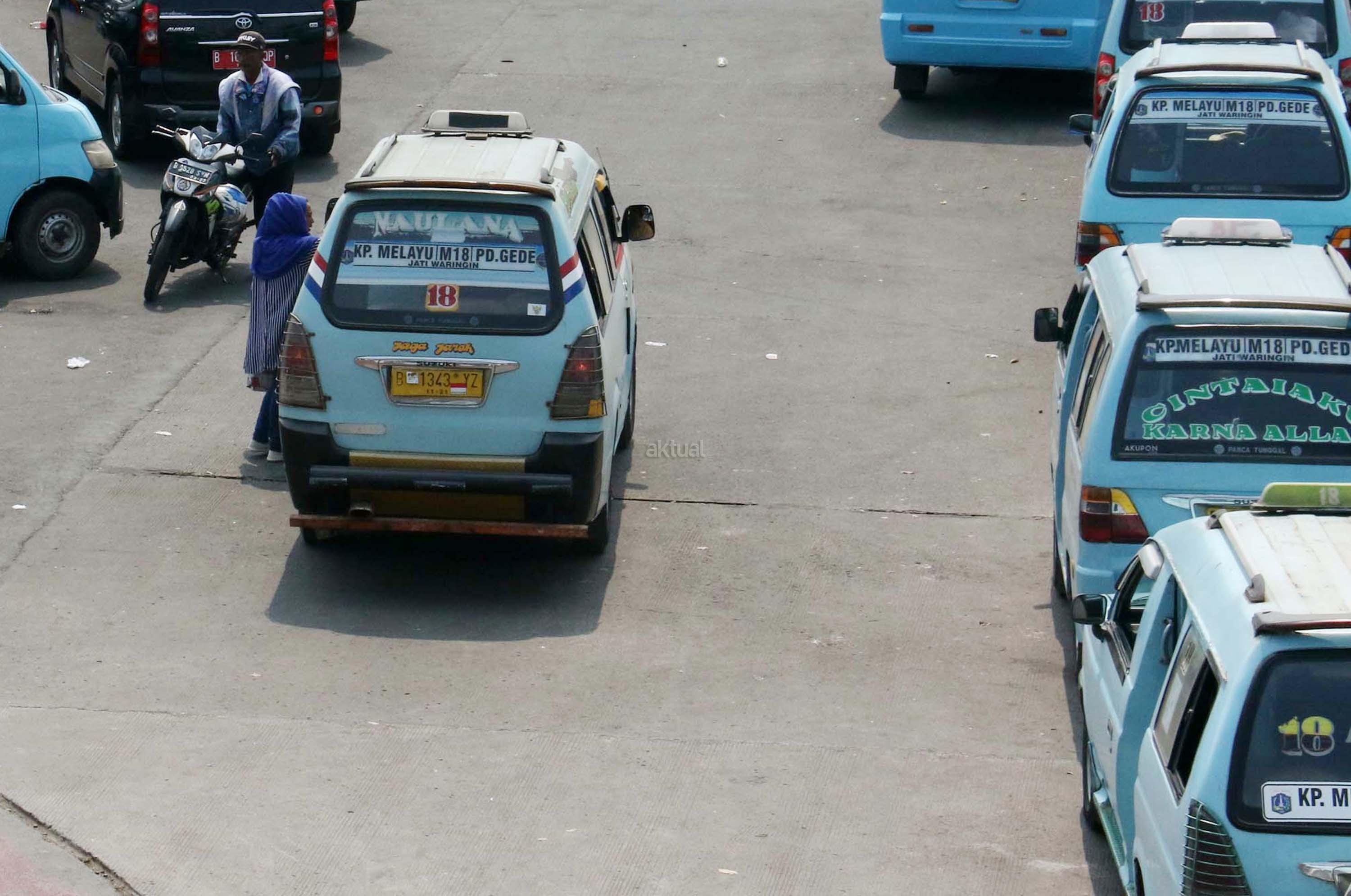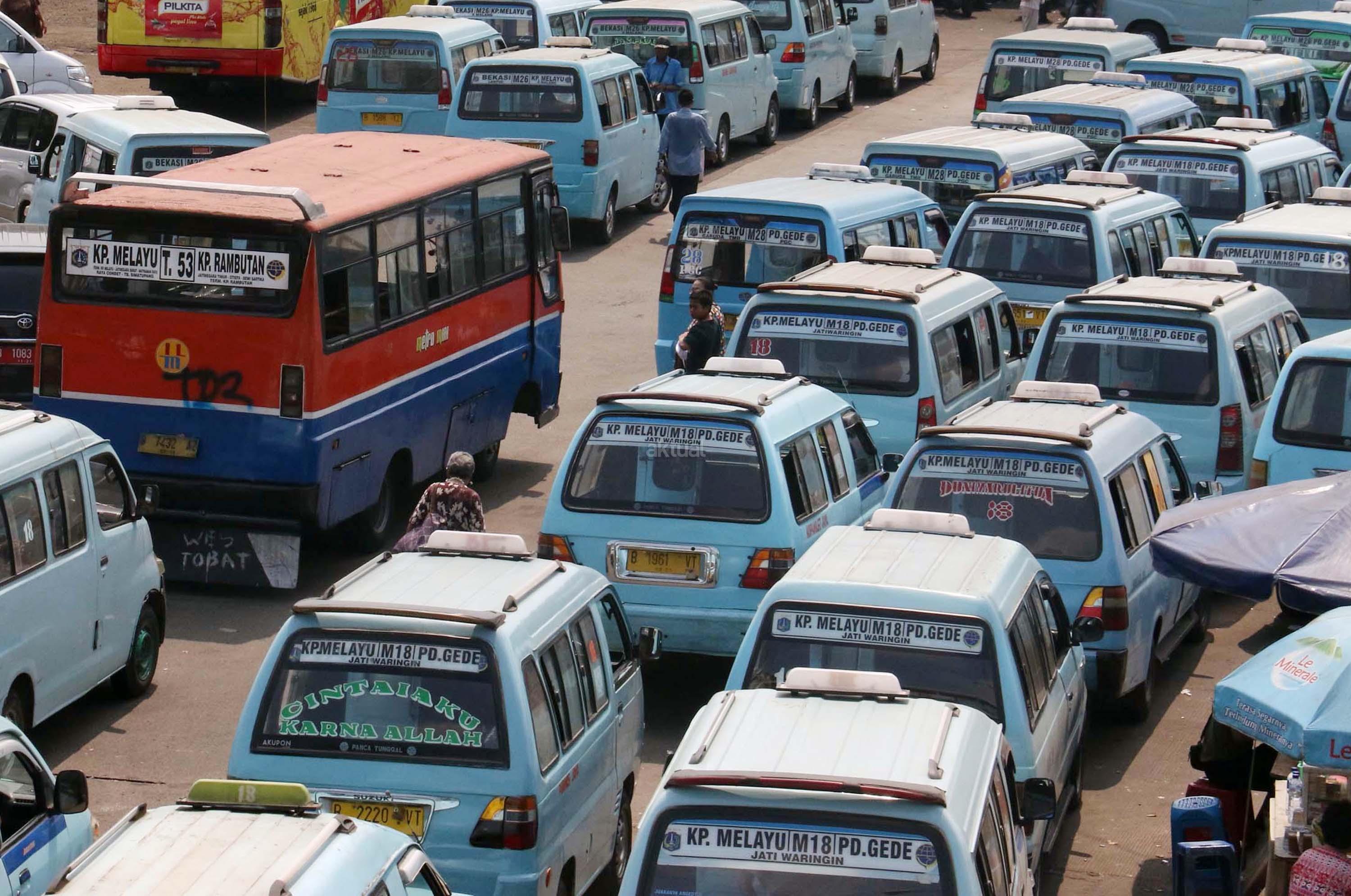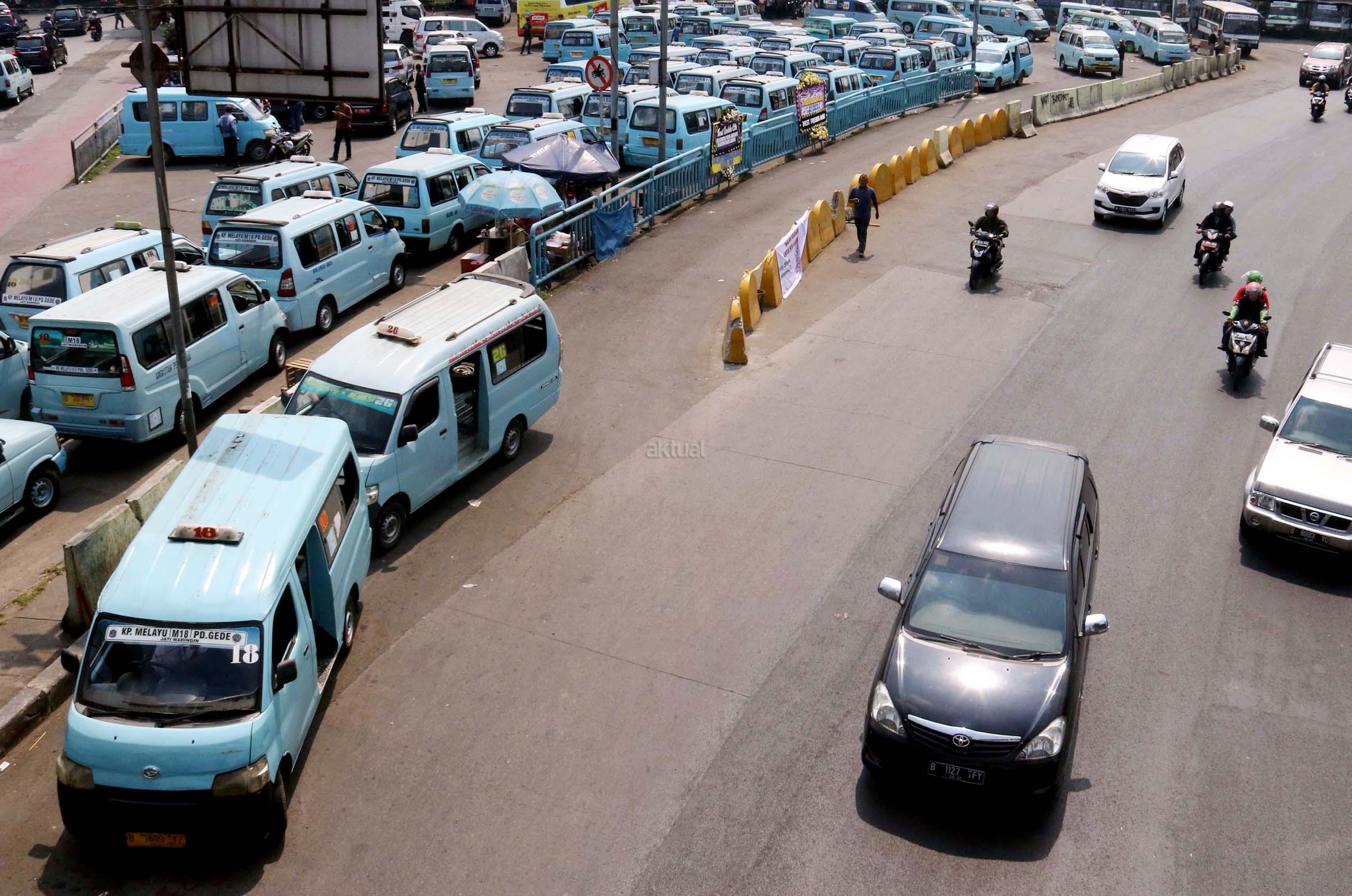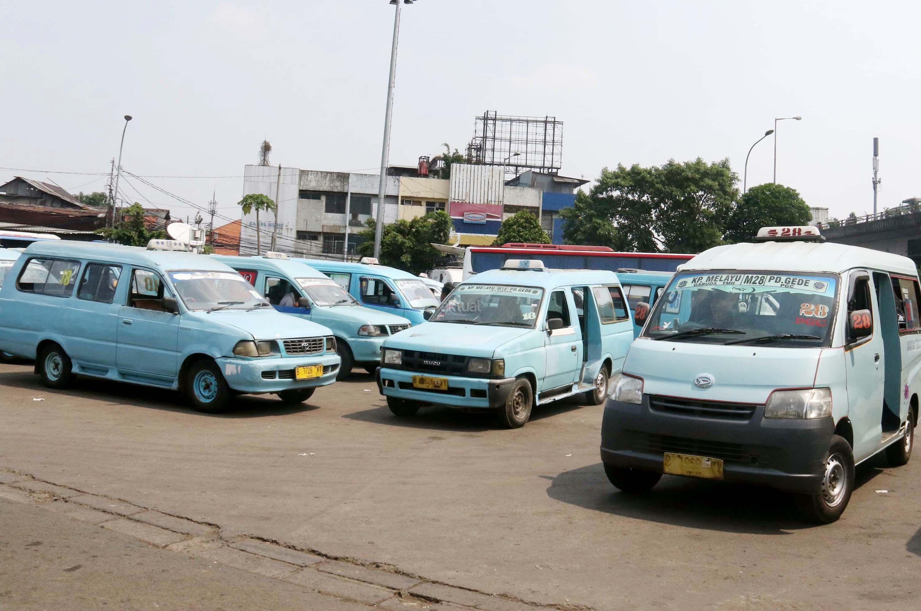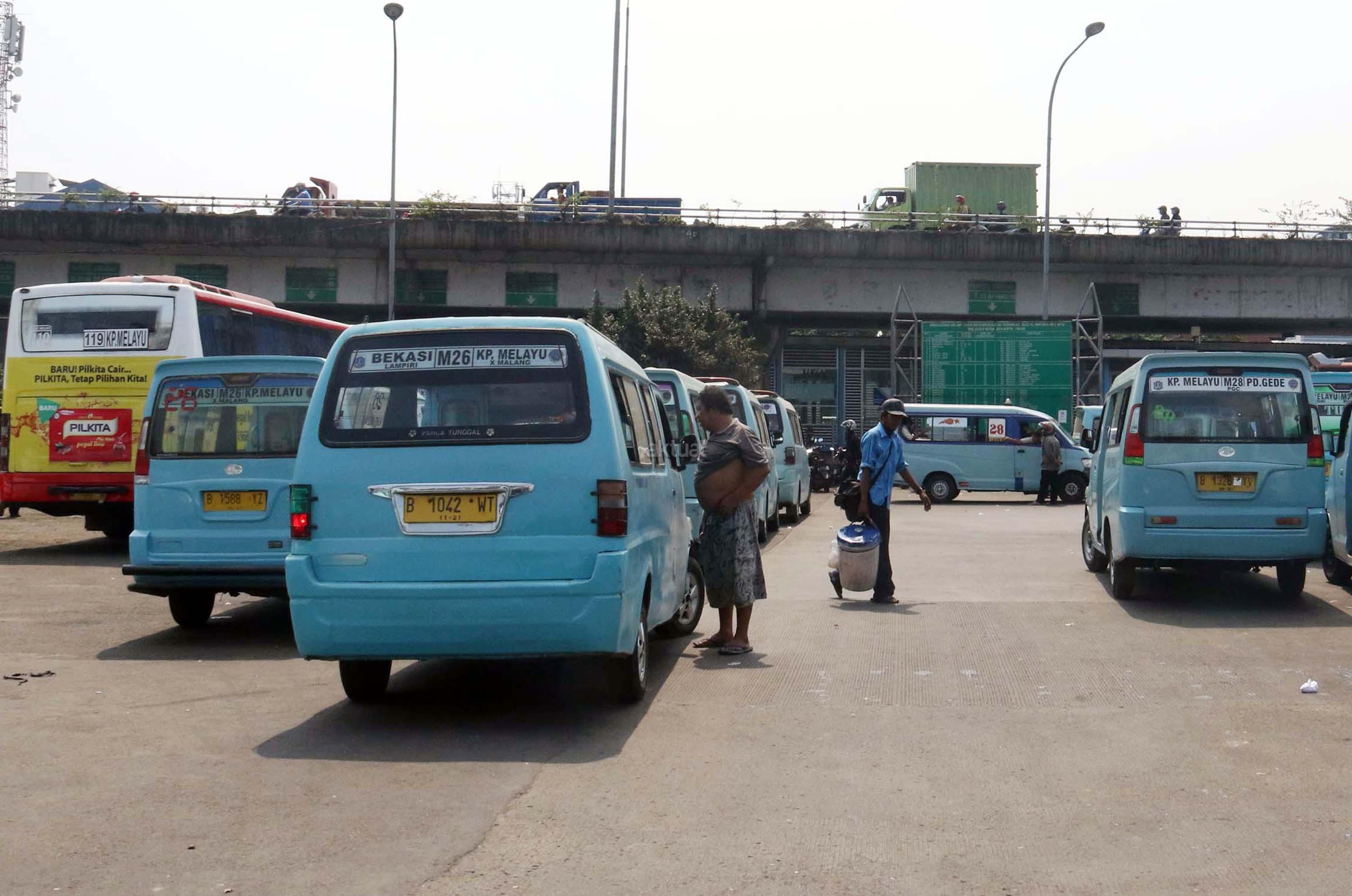 Sejumlah angkot menanti calon penumpang di Terminal Kampung Melayu, Jakarta, Kamis (13/7/2017). Menteri Perhubungan Budi Karya Sumadi menargetkan semua angkot harus ber-AC paling lambat Februari 2018. Hal tersebut merupakan upaya untuk meningkatkan pelayanan angkutan umum kepada masyarakat, sehingga masyarakat bisa meninggalkan angkutan pribadi. AKTUAL/Munzir