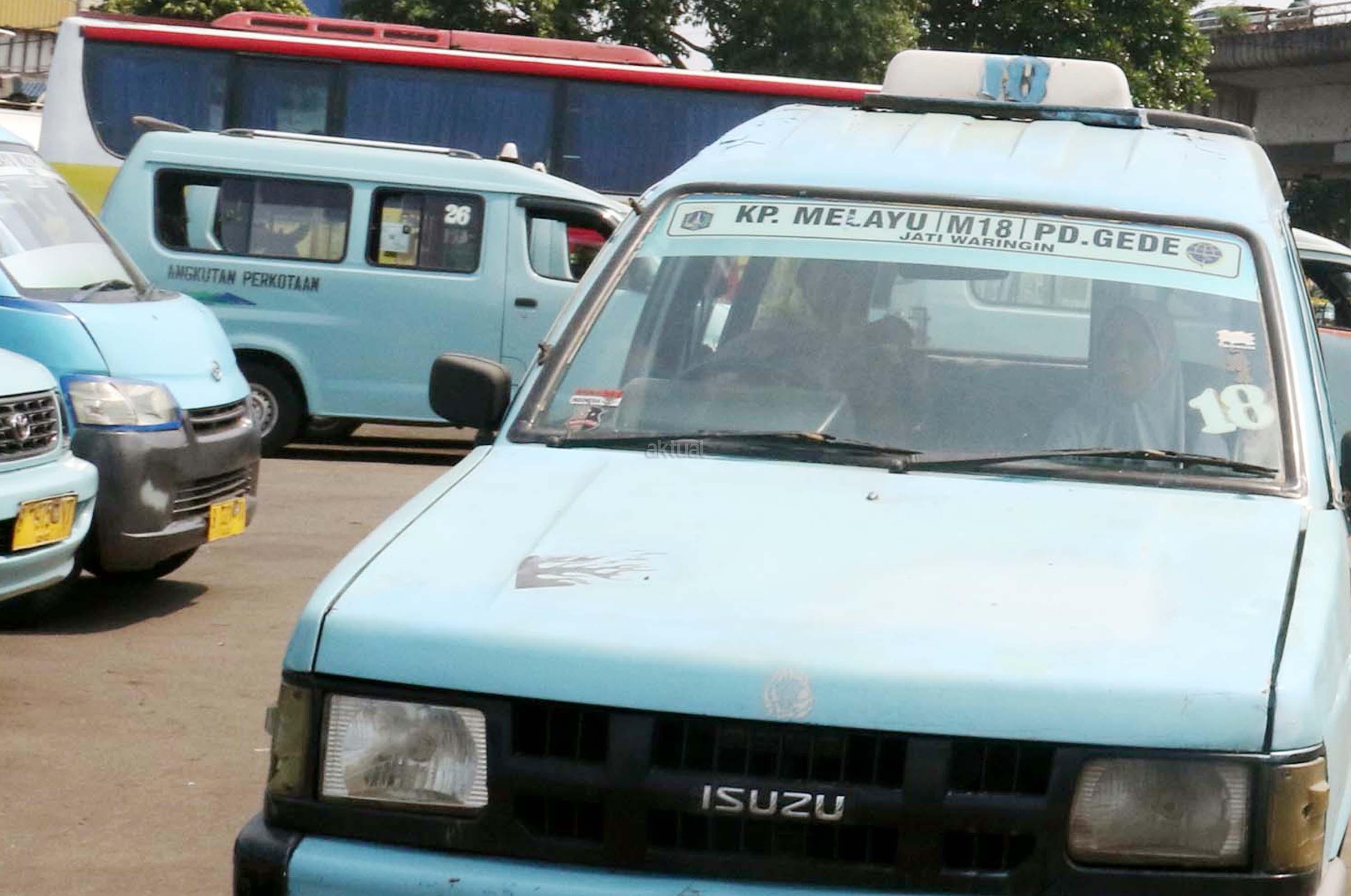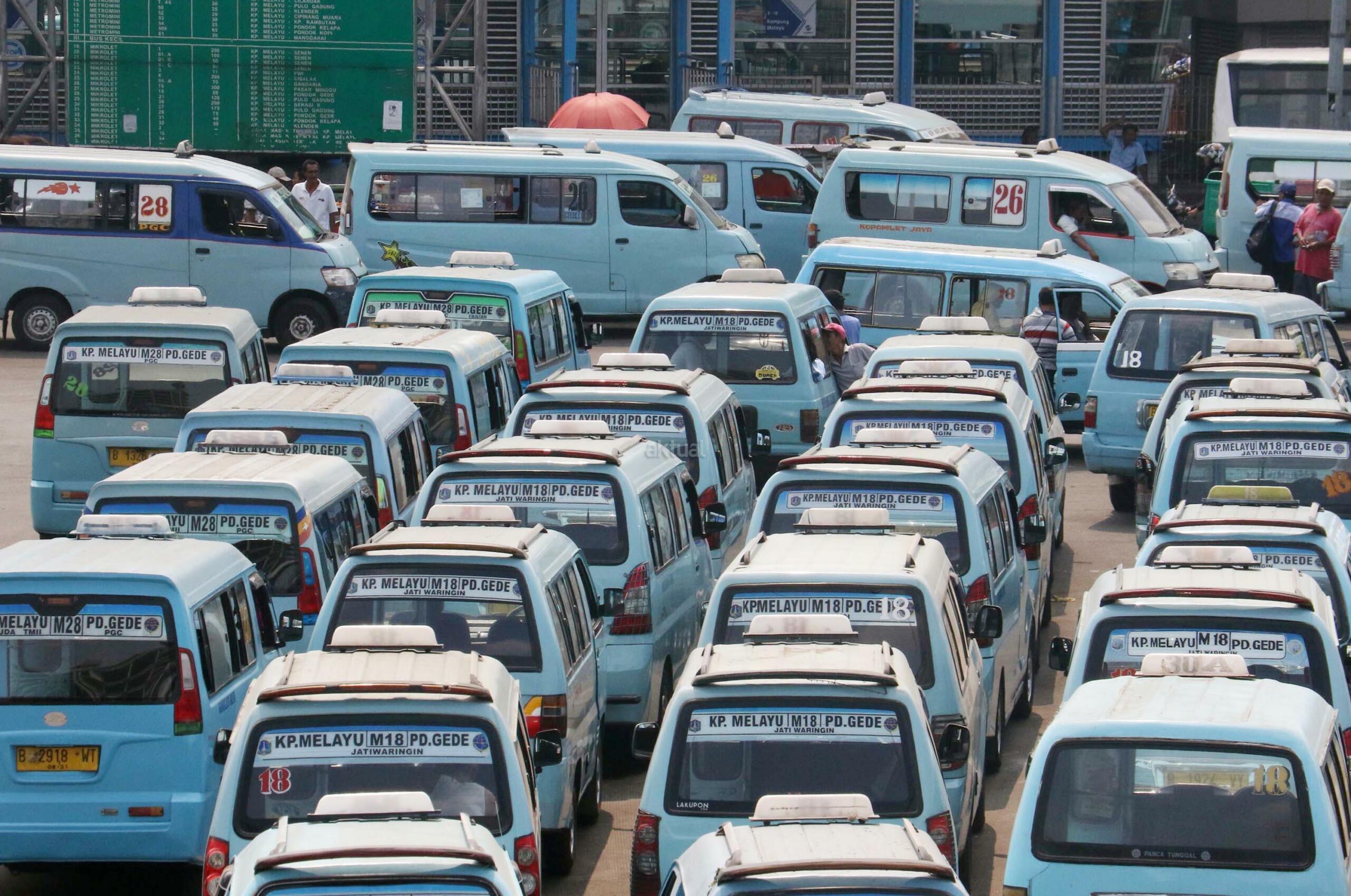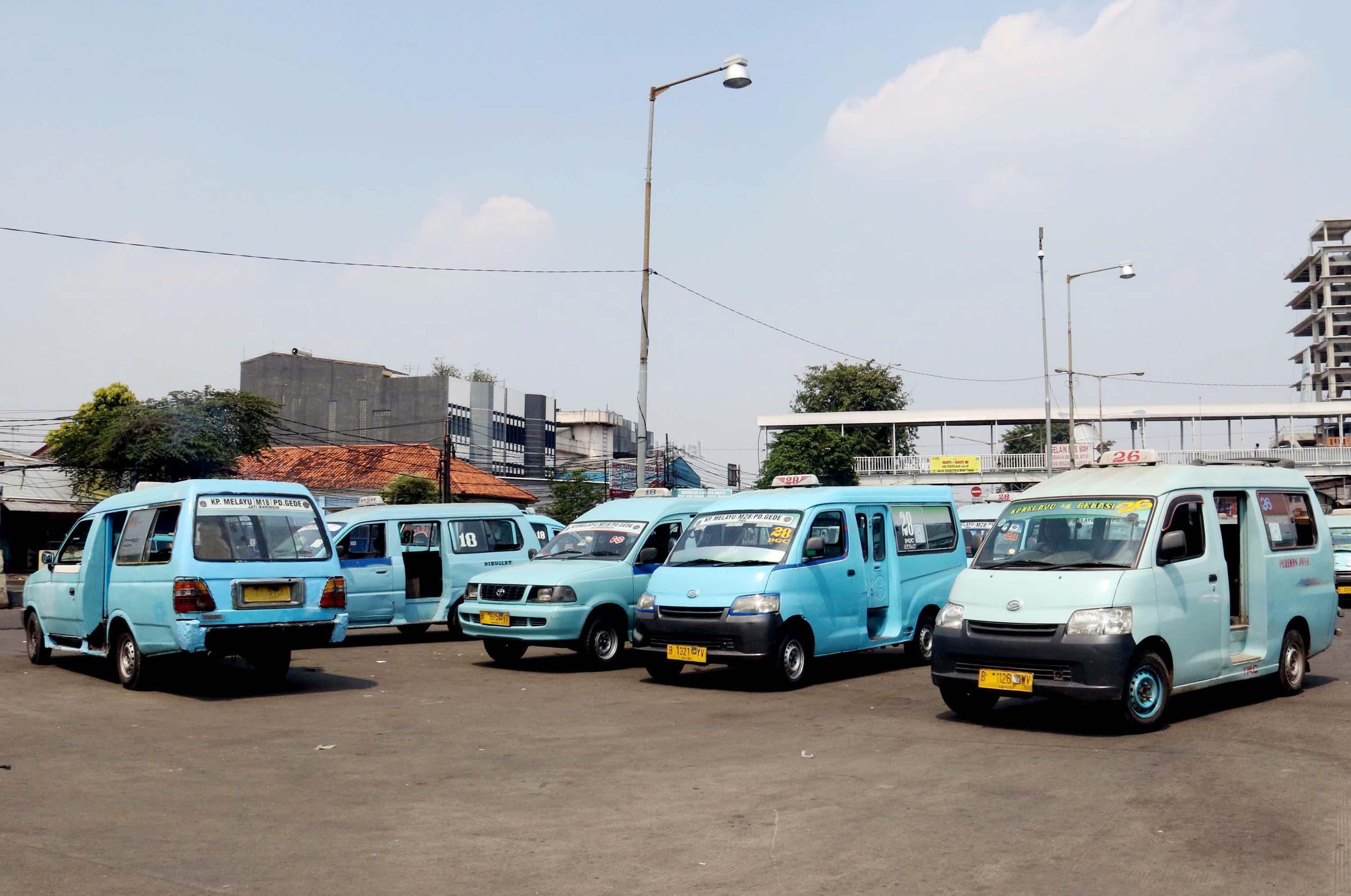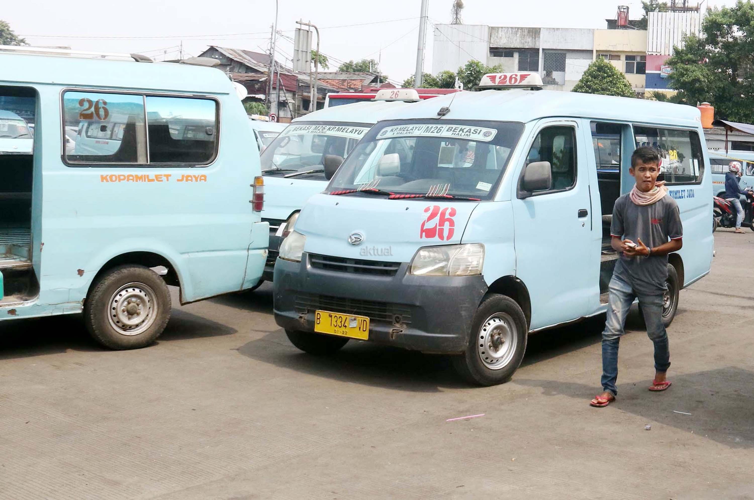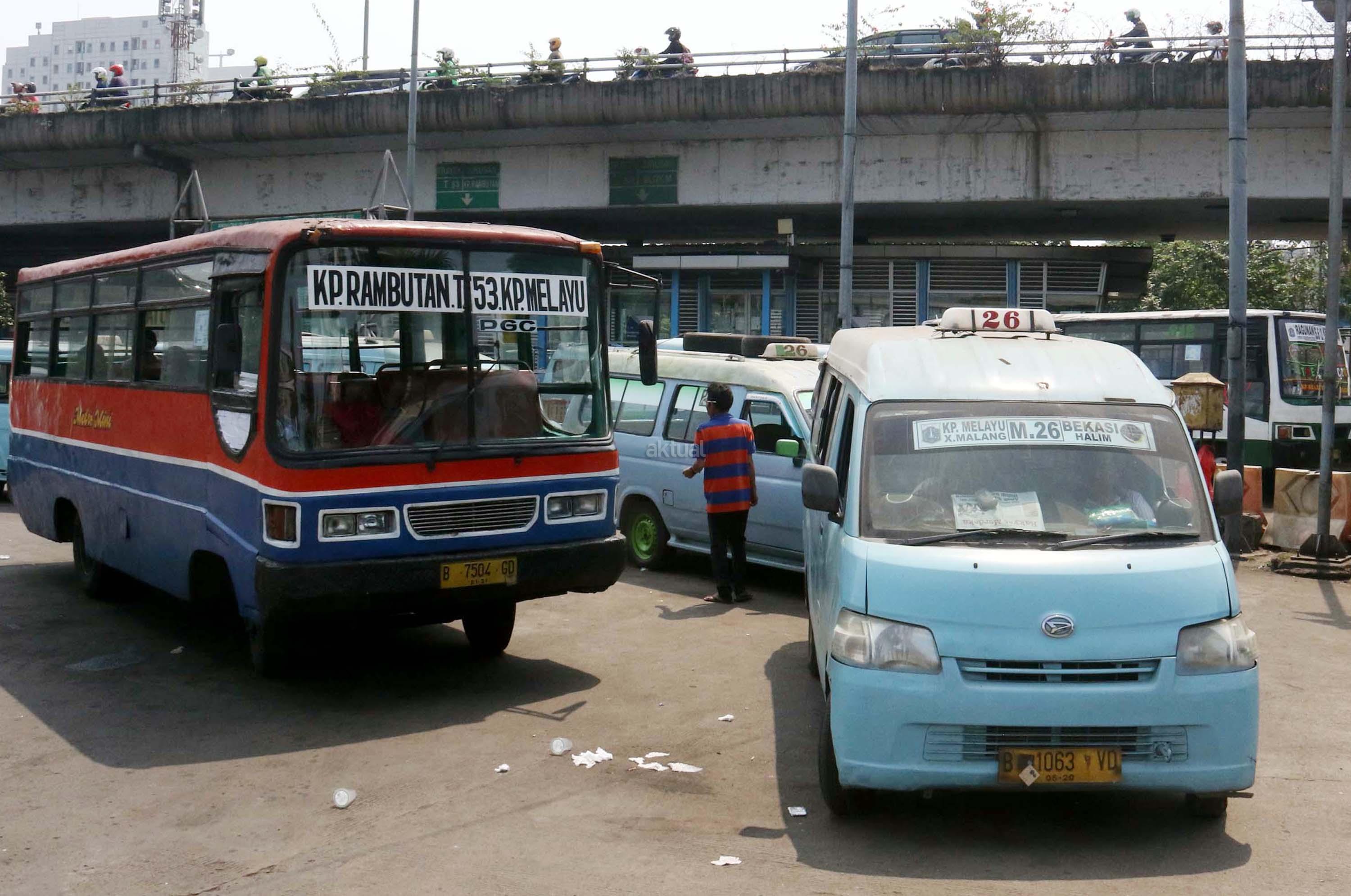 Sejumlah angkot menanti calon penumpang di Terminal Kampung Melayu, Jakarta, Kamis (13/7/2017). Menteri Perhubungan Budi Karya Sumadi menargetkan semua angkot harus ber-AC paling lambat Februari 2018. Hal tersebut merupakan upaya untuk meningkatkan pelayanan angkutan umum kepada masyarakat, sehingga masyarakat bisa meninggalkan angkutan pribadi. AKTUAL/Munzir