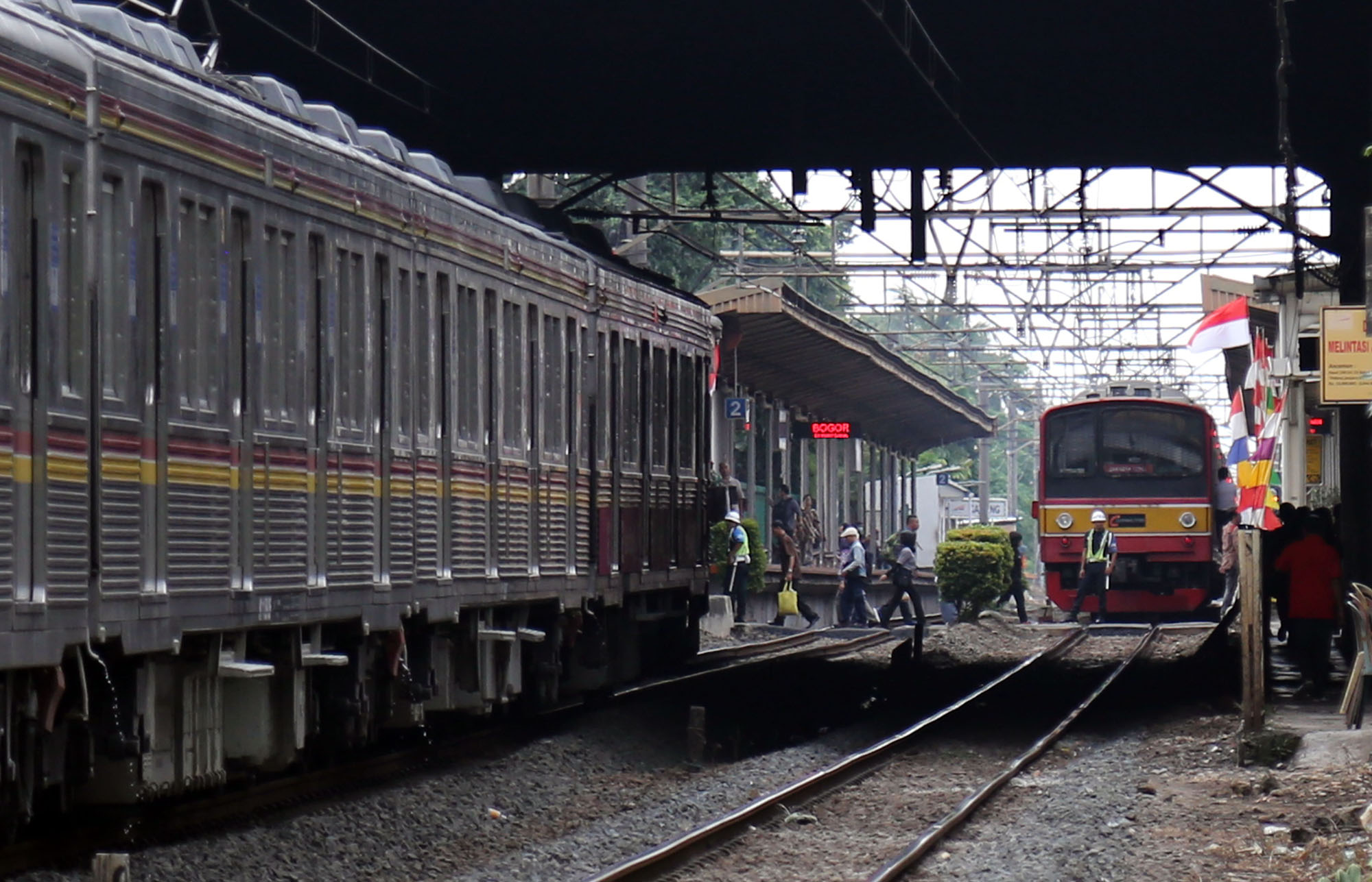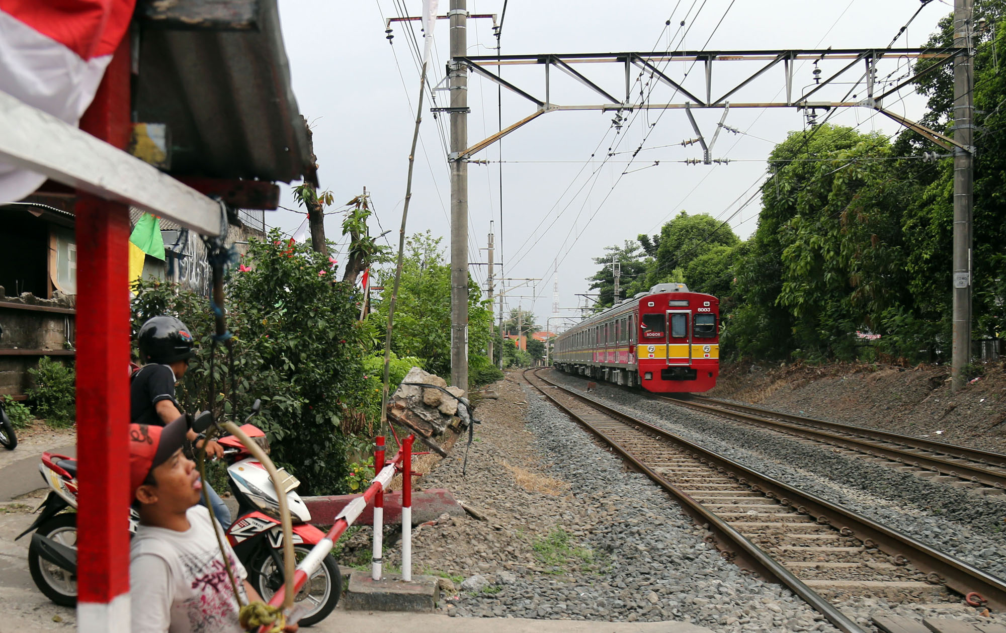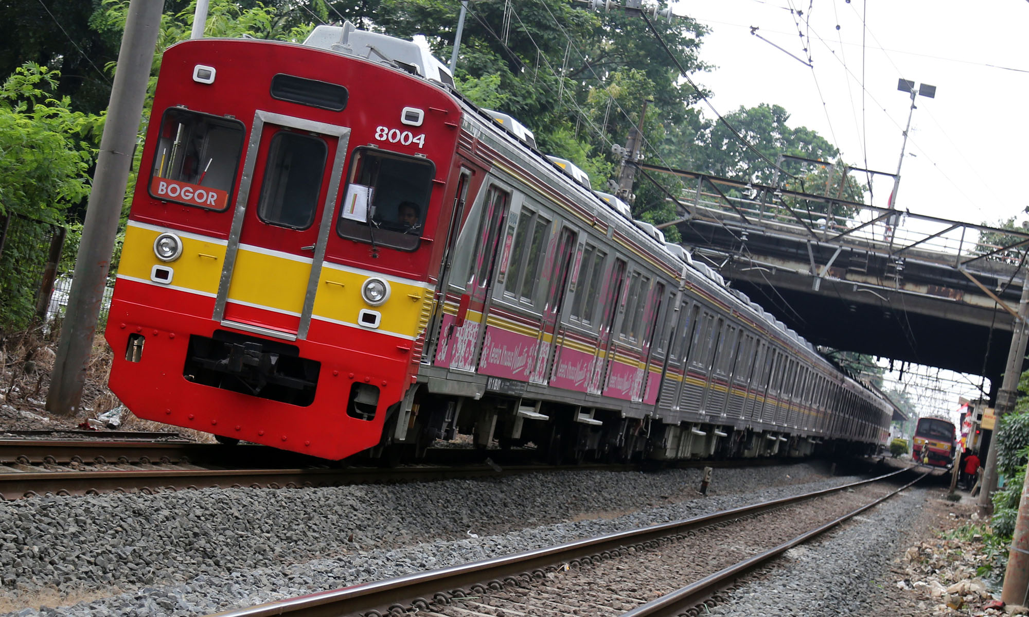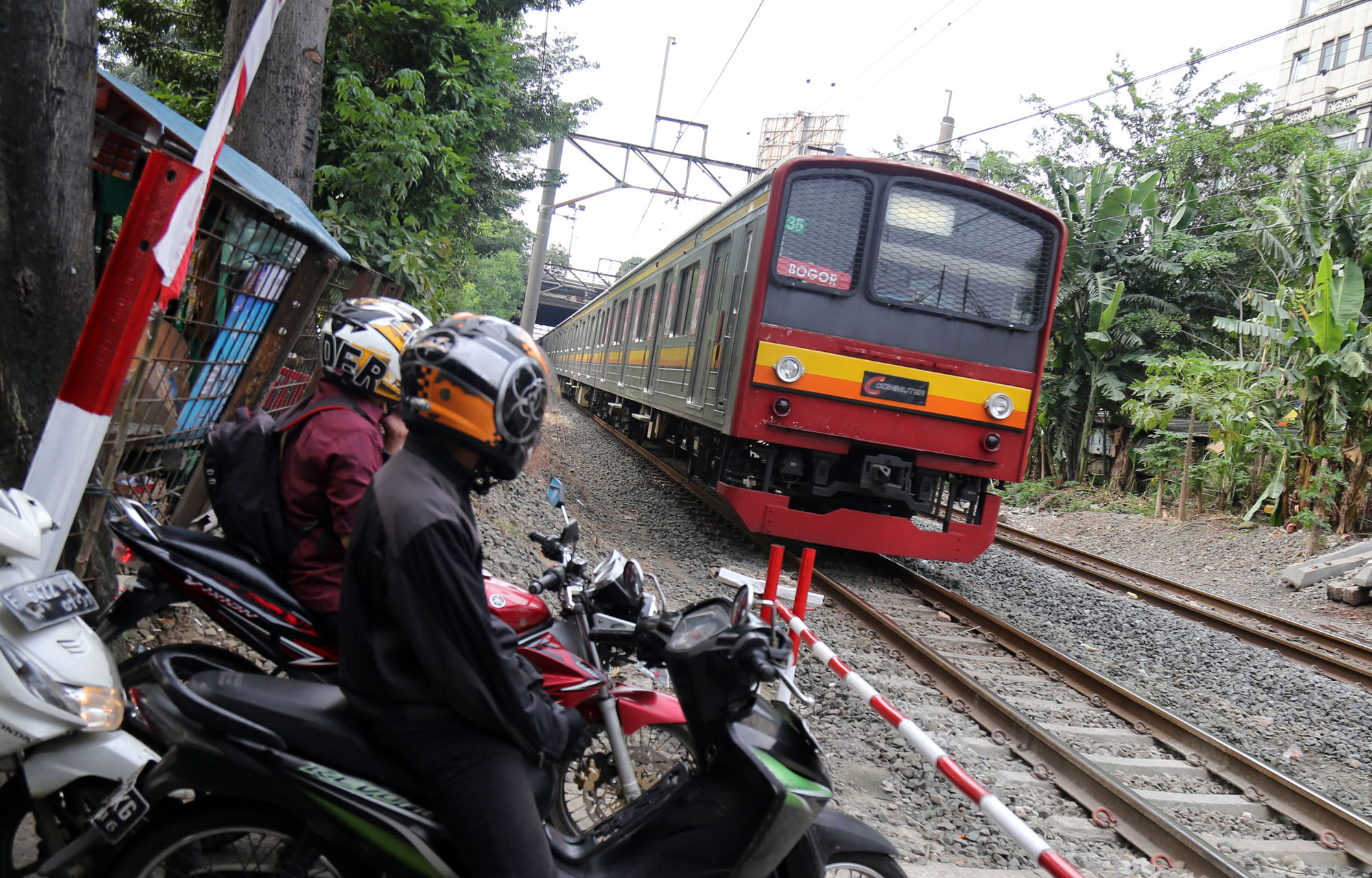 Kereta Commuter Line melintas di perlintasan kereta kawasan Cawang, Jakarta Timur, Jumat (19/8). PT KAI Commuter Jabodetabek (KCJ) menaikkan tarif seluruh relasi Commuter Line Rp1.000 yang akan berlaku mulai 1 Oktober 2016. AKTUAL/TINO OKTAVIANO