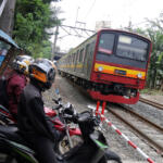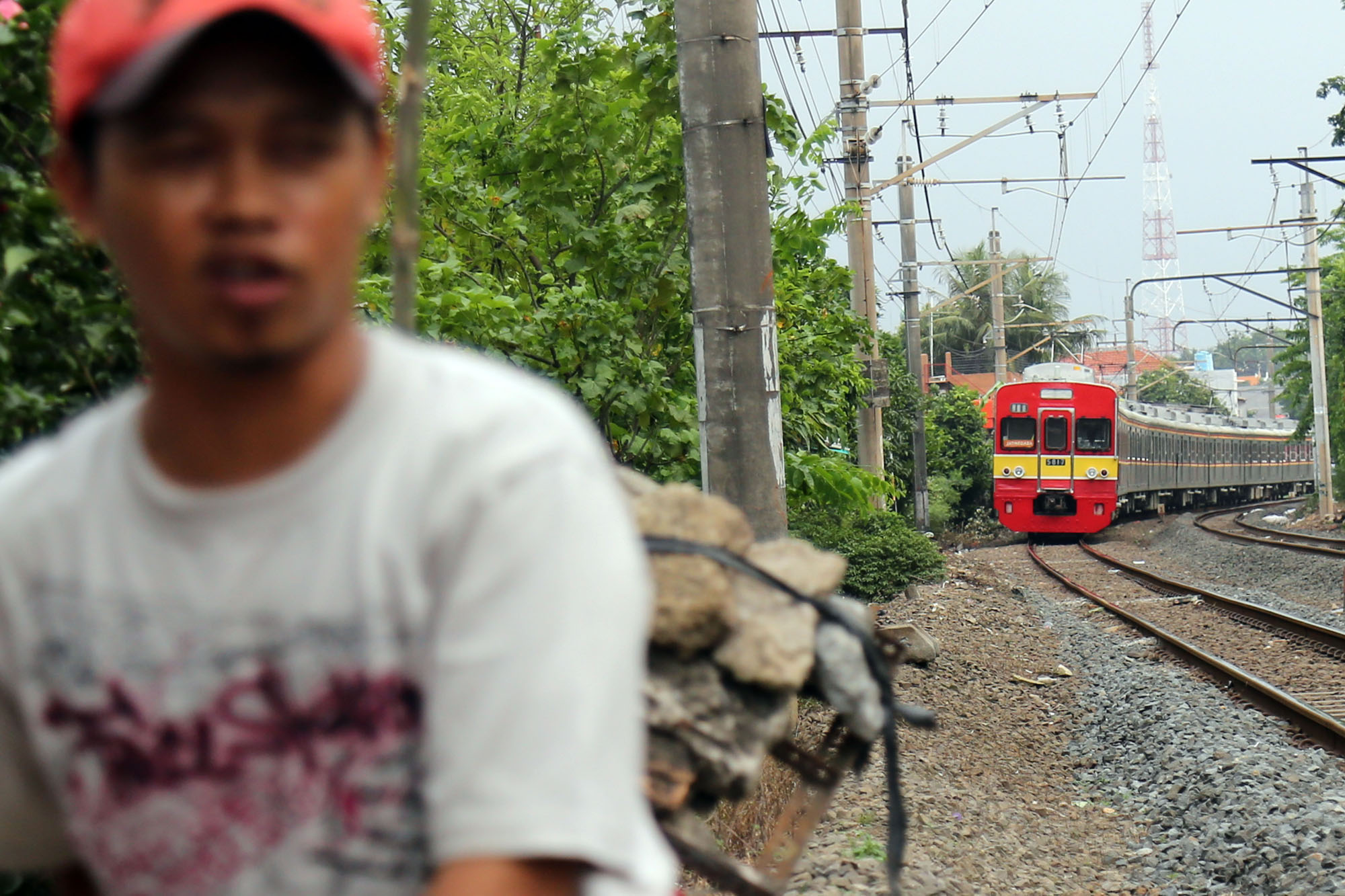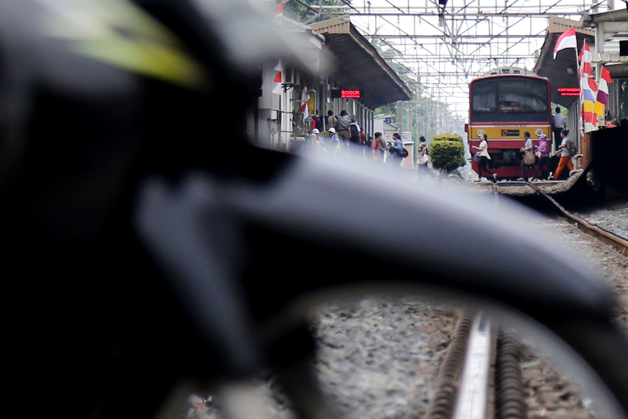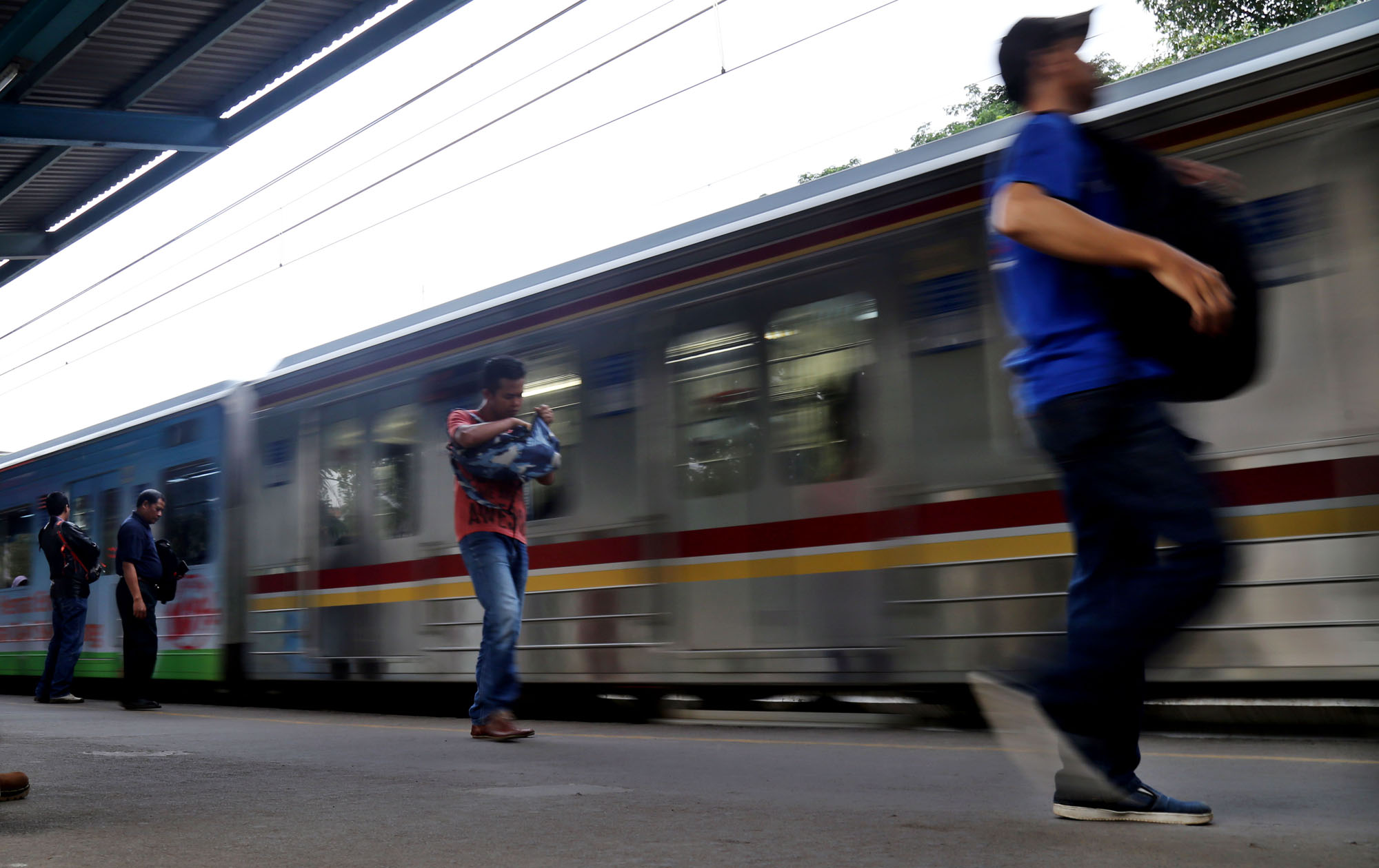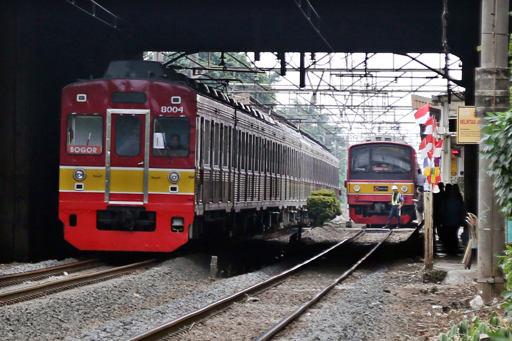Kereta Commuter Line melintas di perlintasan kereta kawasan Cawang, Jakarta Timur, Jumat (19/8). PT KAI Commuter Jabodetabek (KCJ) menaikkan tarif seluruh relasi Commuter Line Rp1.000 yang akan berlaku mulai 1 Oktober 2016. AKTUAL/TINO OKTAVIANO