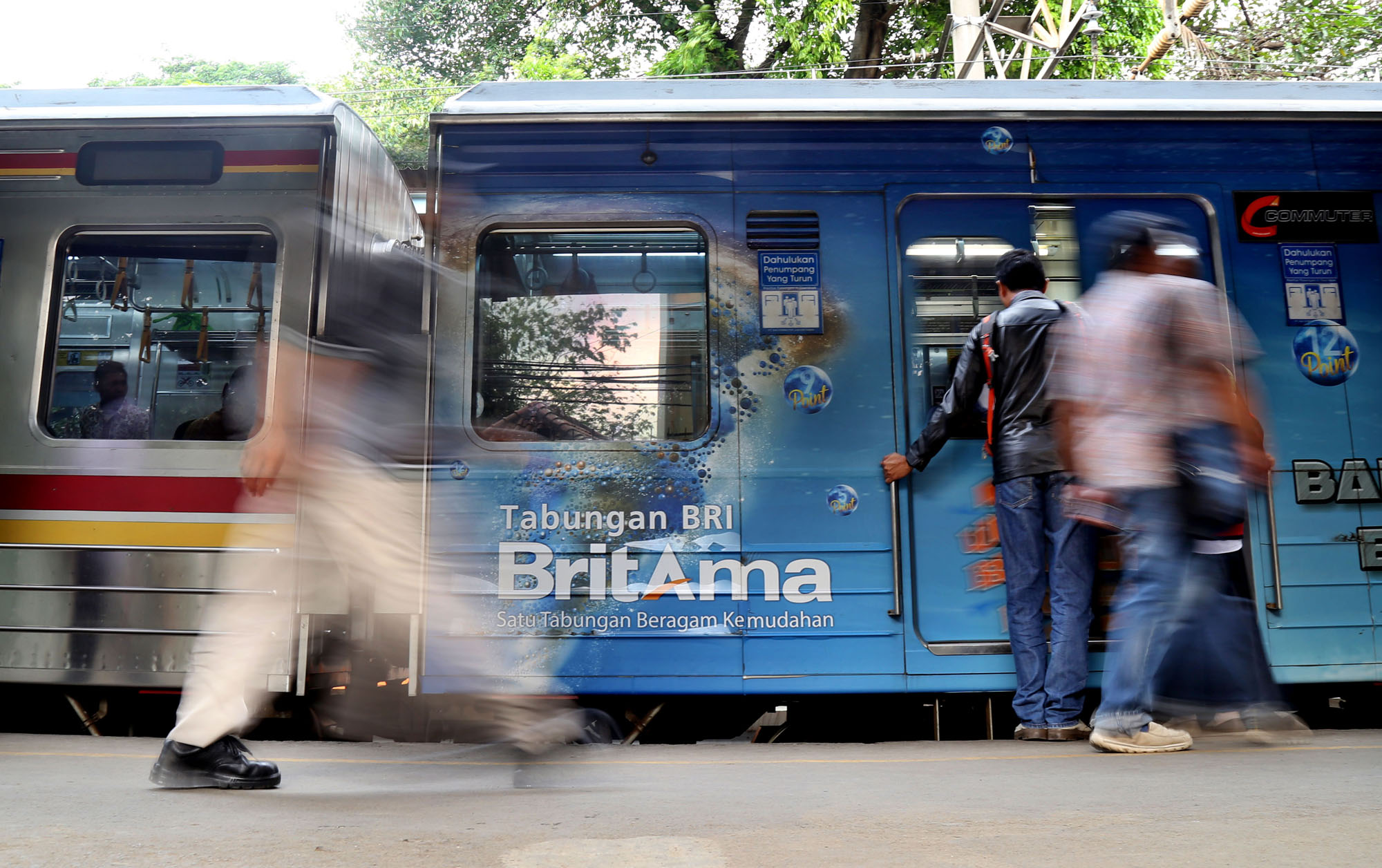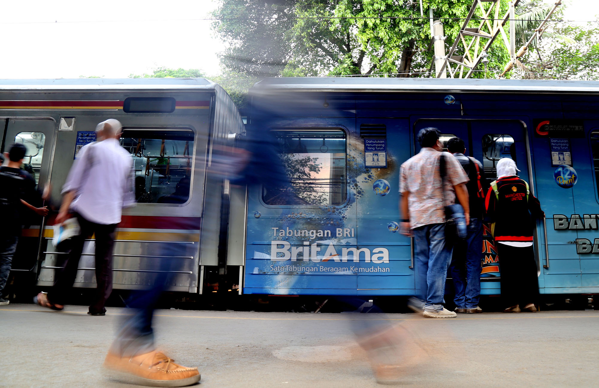 Penumpang saat akan menaiki Kereta Commuter Line di Stasiun Tebet, Jakarta Selatan, Jumat (19/8). PT KAI Commuter Jabodetabek (KCJ) menaikkan tarif seluruh relasi Commuter Line Rp1.000 yang akan berlaku mulai 1 Oktober 2016. AKTUAL/TINO OKTAVIANO