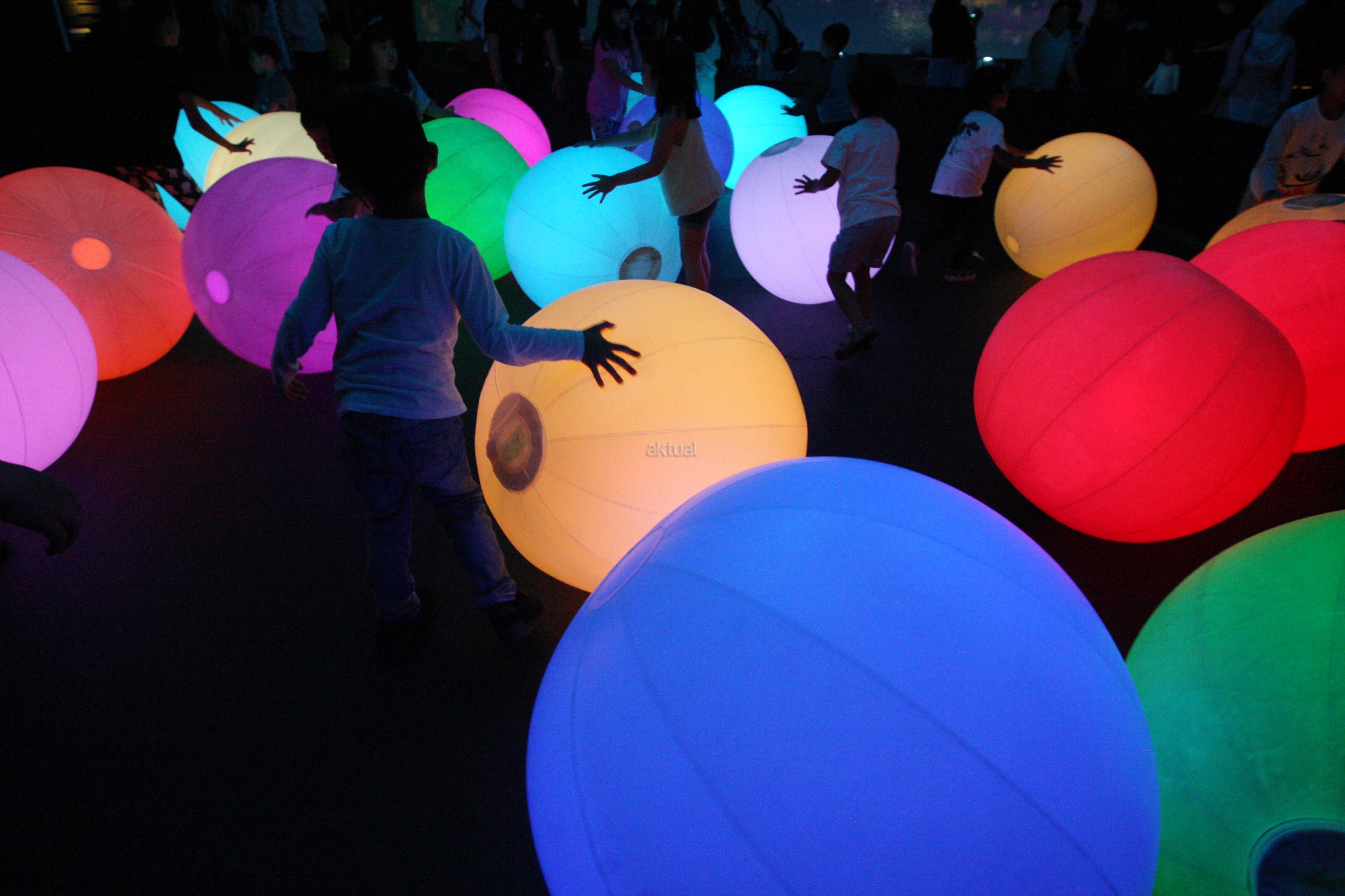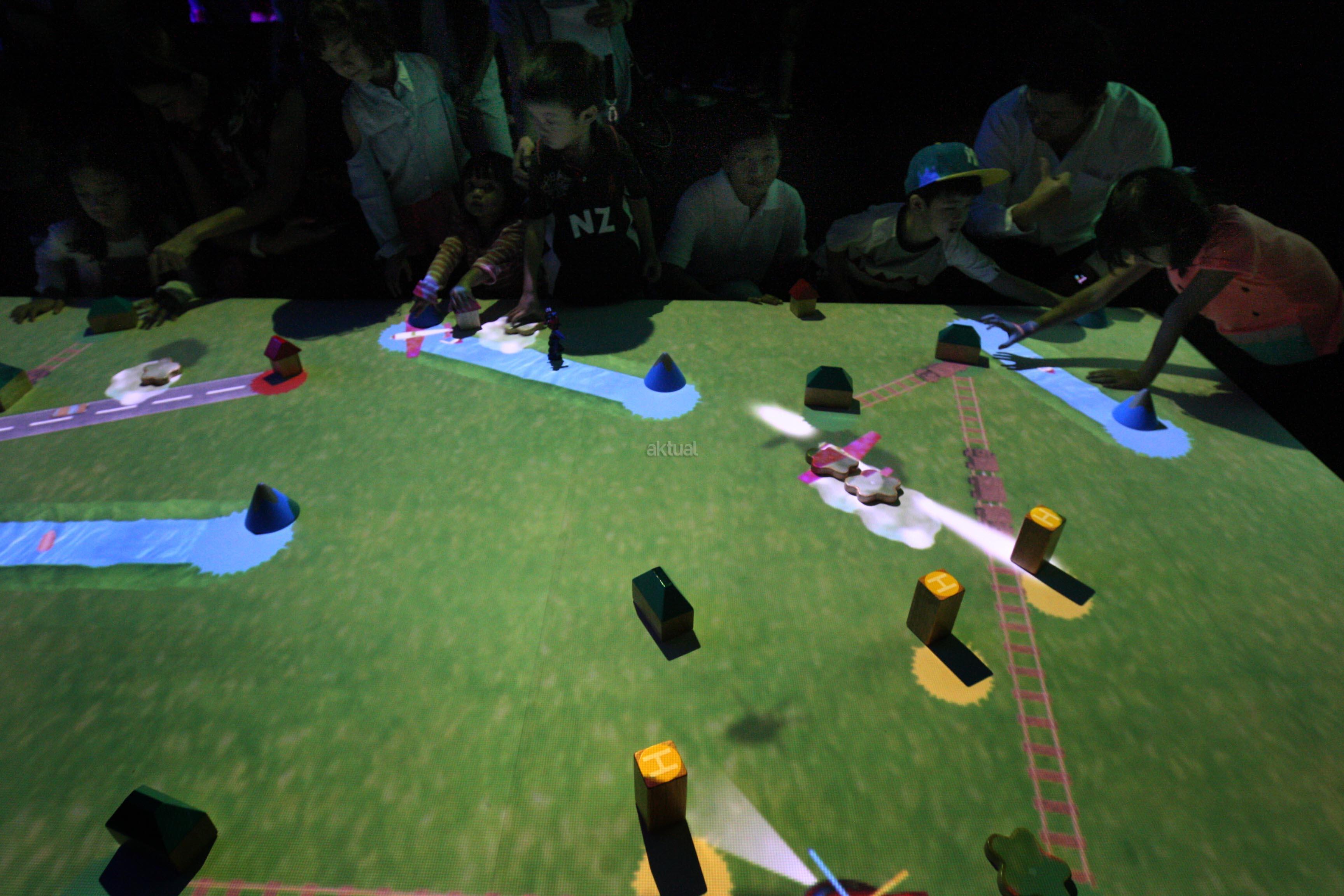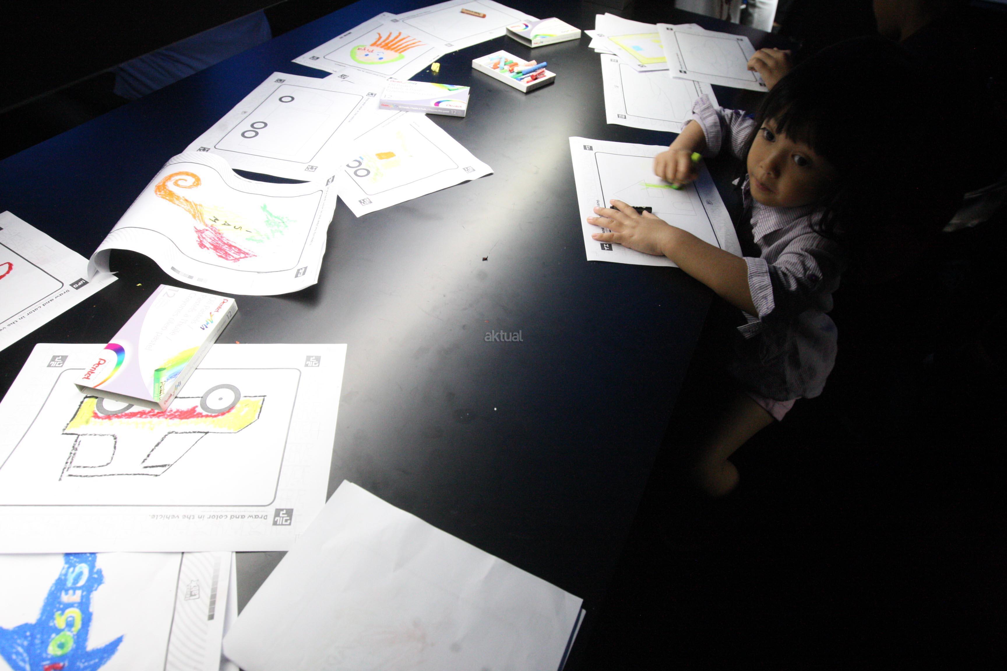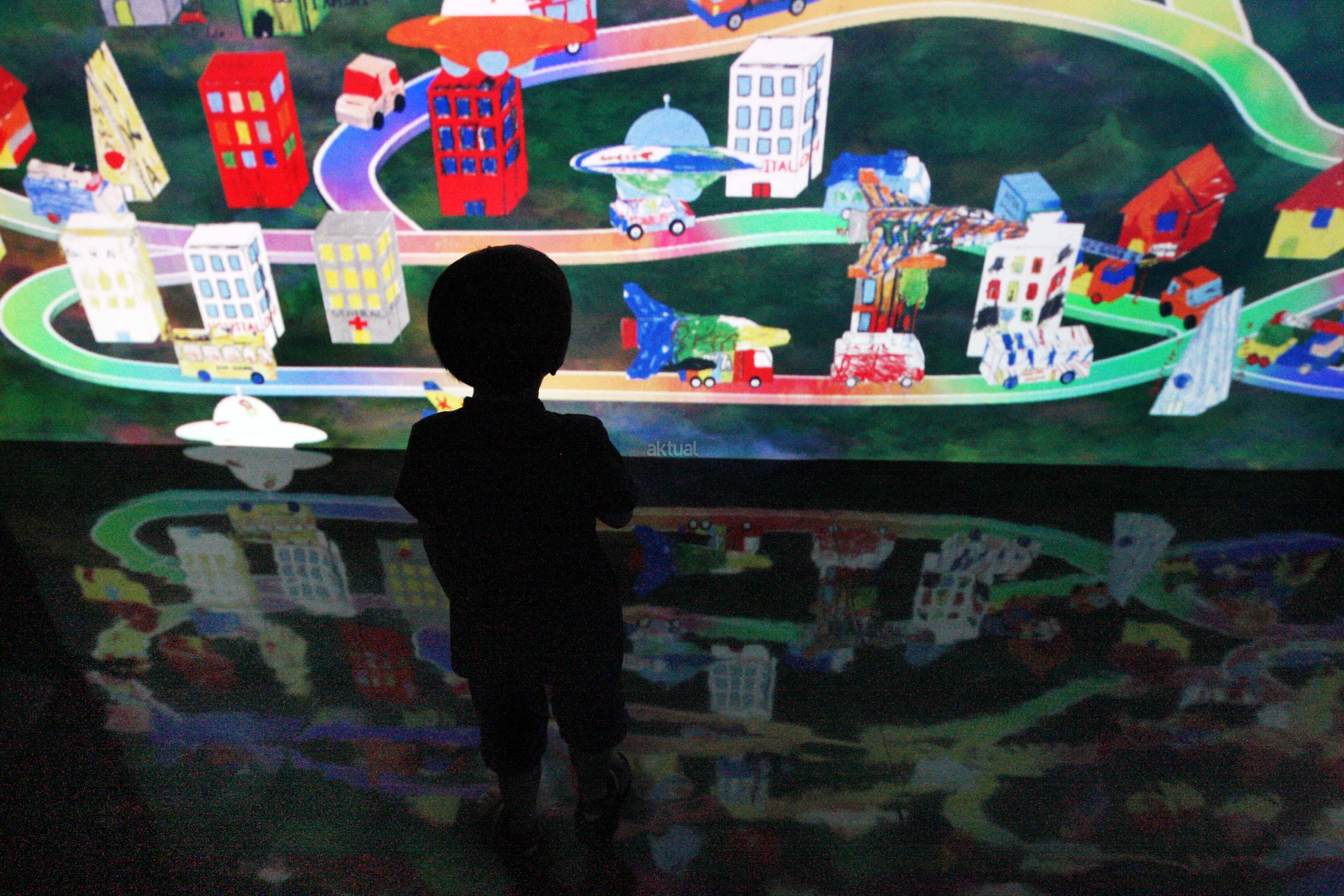 Anak anak bermain saat launching teamLab Future Park di di Plaza Indonesi, Jakarta, Minggu (4/6). Area edukasi bermain bagi keluarga dan anak-anak menggunakan area seluas 700 sqm yang bertempat di lantai 5 pusat belanja tersebut, merupakan kali pertama hadir di Indonesia. teamLab Future Park menampilkan area-area yang menggunakan aplikasi teknologi tinggi yang terdiri dari tujuh macam antara lain sketch aquarium, sketch town, sketch town papercraft, ligth ball orchestra, dan lain sebagainya. teamLab Future Park dibuka untuk umum mulai Senin (5/6/2017) hingga 8 Oktober 2017 mendatang. AKTUAL/Eko S Hilman