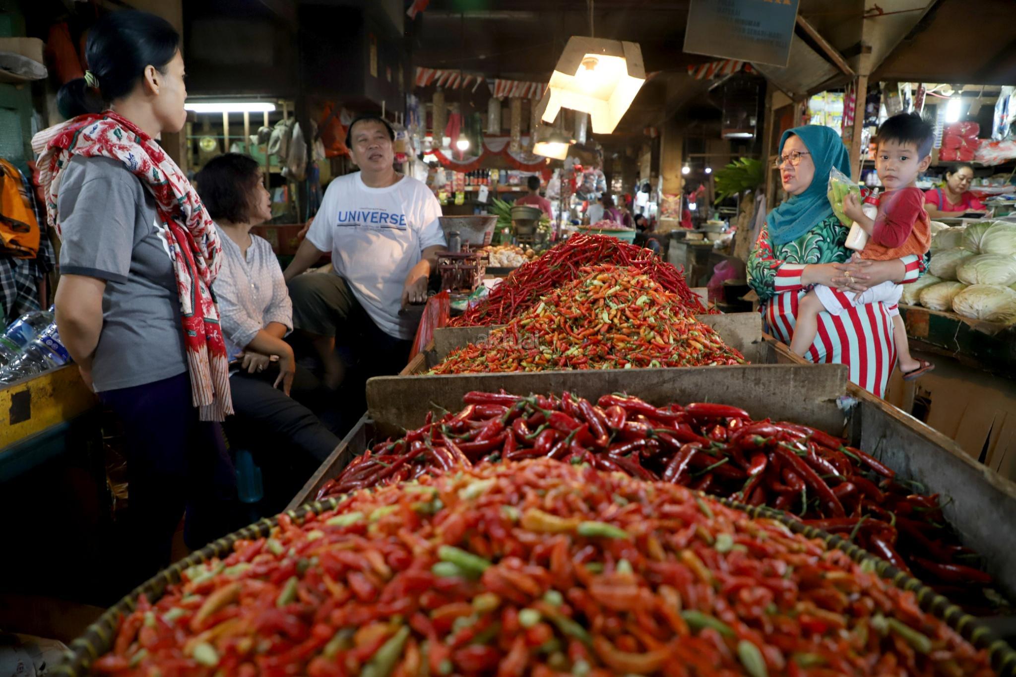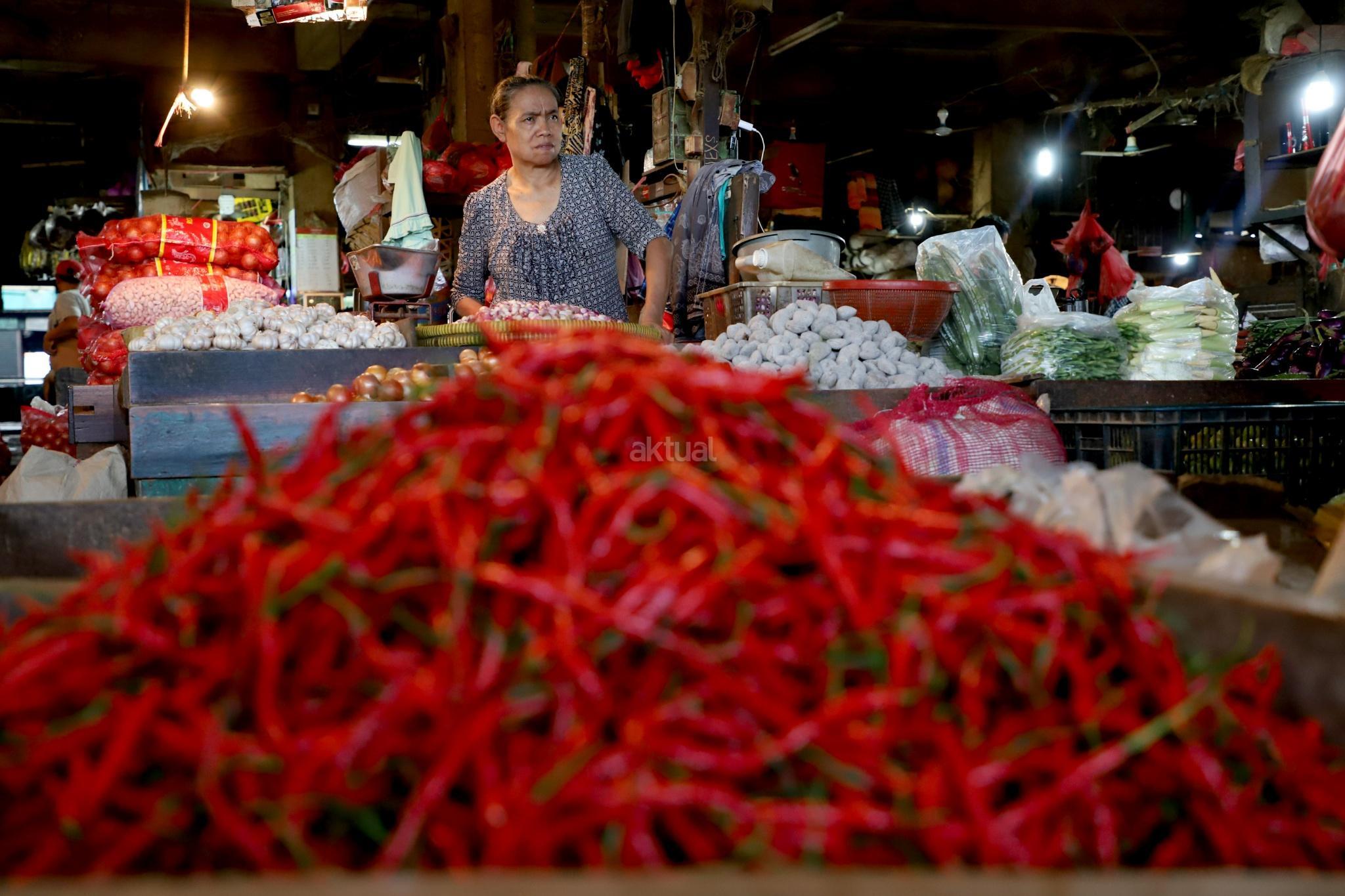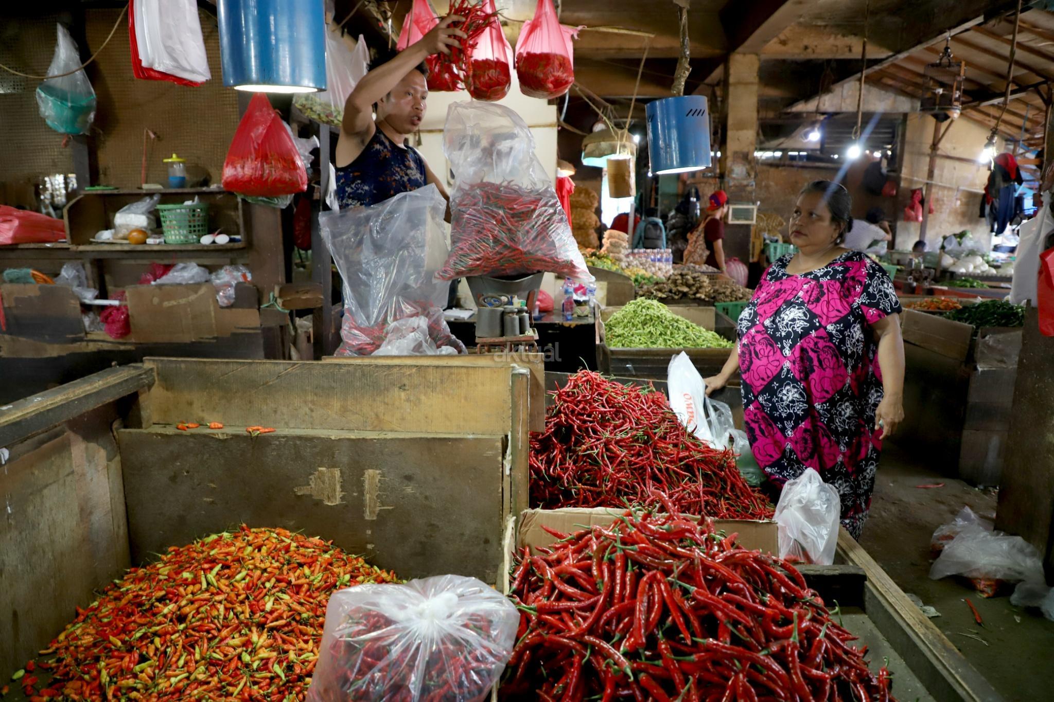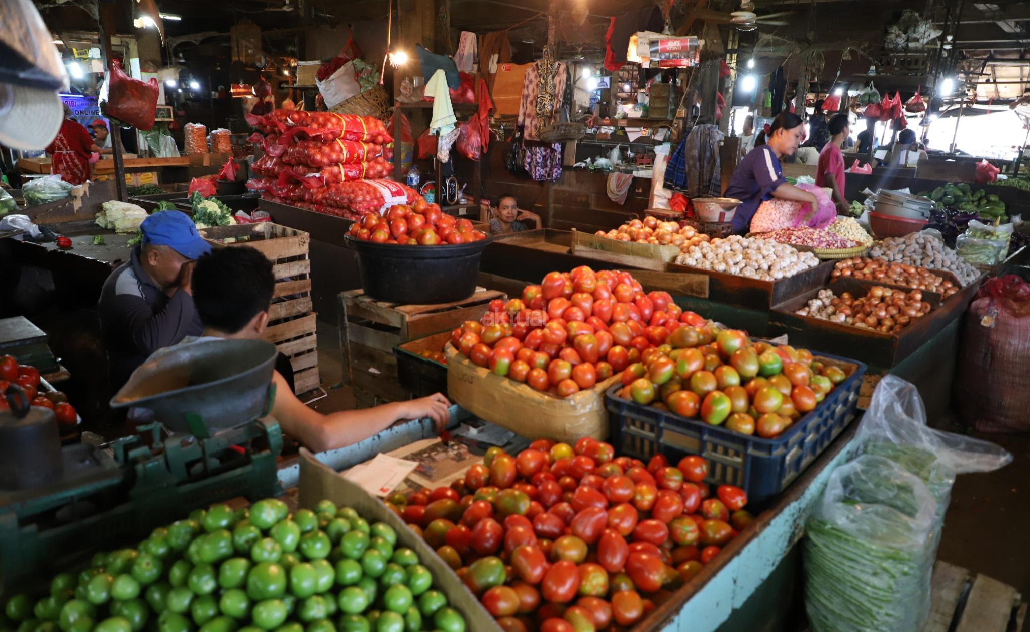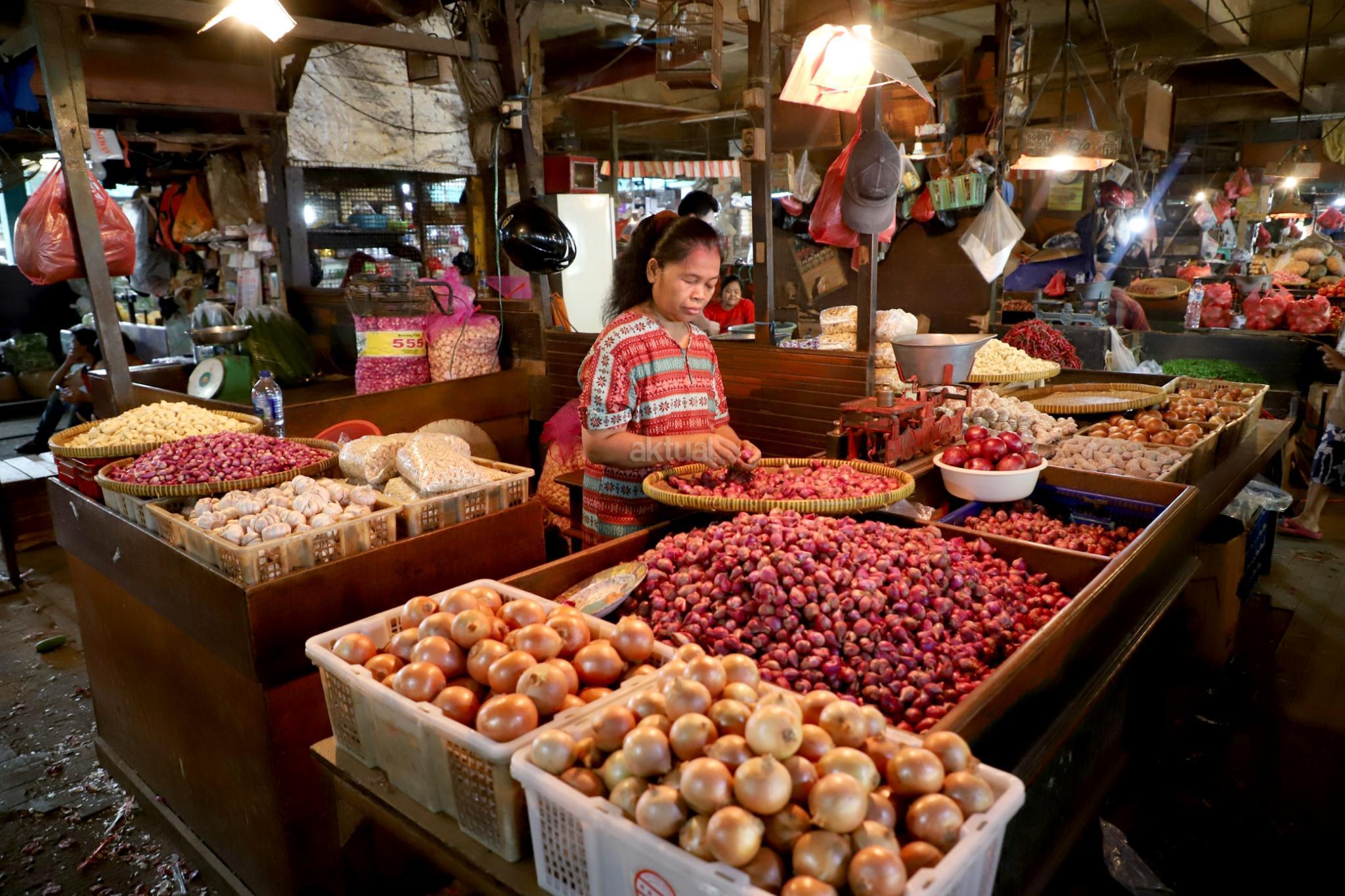 Aktivitas perdagangan bahan pangan di Pasar Senen, Jakarta, Selasa (20/3). Tekanan inflasi diperkirakan membebani pertumbuhan ekonomi pada tahun 2018 ini. Kenaikan inflasi yang diperkirakan mencapai 4,2% pada tahun ini akan menekan daya beli rumah tangga, sehingga target pertumbuhan ekonomi pemerintah sebesar 5,4% di 2018 sulit tercapai. AKTUAL/Tino Oktaviano