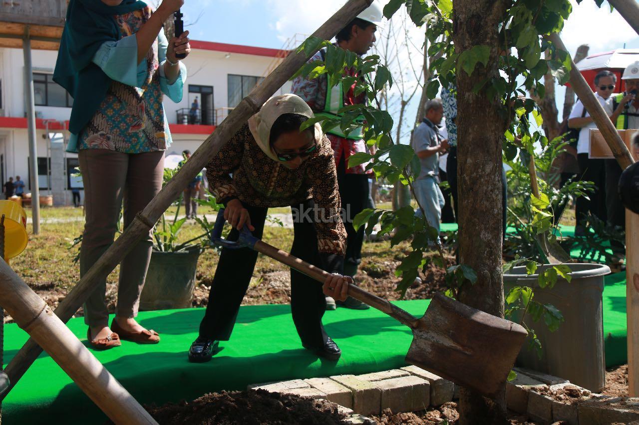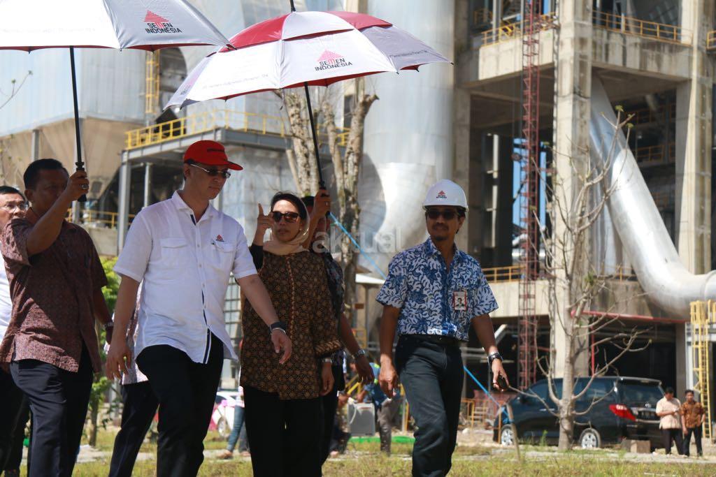 Menteri BUMN Rini M Soemarno meninjau proses pembangunan pabrik semen Indonesia di Kabupaten Rembang, Jumat (17/3). Rini didampingi Direktur Utama PT Semen Indonesia Rizkan Chandra, Direktur Utama BNI Ahmad Baiquni dan Direktur Utama Bank Mandiri Kartika Wirjoatmadjo. Dalam Kunjungannya, Rini sempat melihat beberapa bangunan pabrik dan berdialog dengan warga dari Ring 1 sekitar pabrik dan menjelaskan kepada warga bahwa saat ini pabrik masih dalam proses uji coba. Pabrik yang dioperasikan nantinya membawa kemakmuran bagi warga sekitar. April Tahun ini pabrik PT Semen Indonesia di Kecamatan Gunem, Kabupaten Rembang, Jawa Tengah yang menelan investasi hingga Rp 4,9 triliun ini berkapasitas produksi 3 juta ton semen per tahun. Selain mengunjungi pabrik, Rini bertolak ke kediaman tokoh kharismatik asal Rembang, KH. Maimun Zubair. AKTUAL/HO