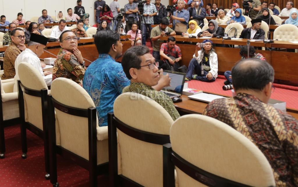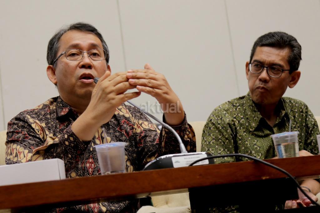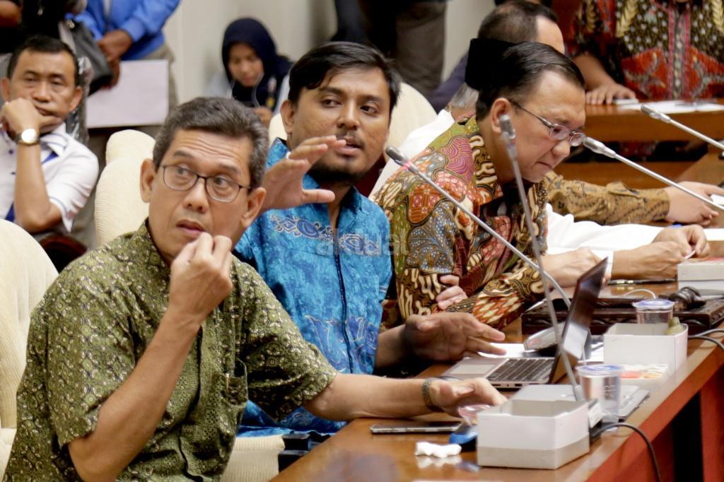 Pakar Teknik Kelautan ITB Muslim Muin, Indonesia Resources Marwan Batubara, saat seminar Stop Proyek Reklamasi Teluk Jakarta, di gedung Parlemen, Senayan, Jakarta, Kamis (2/11). Bahwa proyek Reklamasi 17 Pulau Teluk Jakarta tidak akan pernah dilanjutkan! Mengapa? Karena proyek tersebut justru akan menenggelamkan sebagian wilayah Jakarta, menghilangkan hak hidup dan mata pencaharian puluhan ribu nelayan, melanggar berbagai aturan, merusak lingkungan dan sarat dengan dugaan tindak pidana korupsi. AKTUAL/Tino Oktaviano