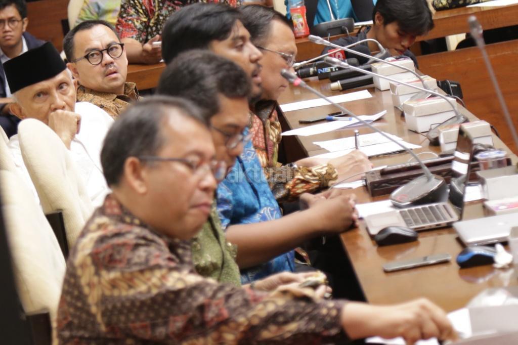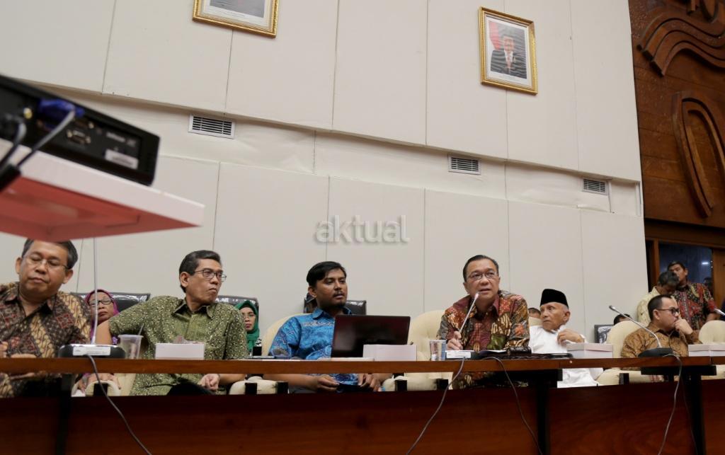 Dari kiri ke kanan, Pakar Teknik Kelautan ITB Muslim Muin, Indonesia Resources Marwan Batubara, Kesatuan Nelayan Tradisional Indonesia Martin Hadiwinata, Anggota DPR FPAN Chandra Tirta Wijaya, Ketua MPR 1999-2004 Amien Rais, Ketua Tim Sinkronisasi Anies-Sandi Sudirman Said dan Pakar Hukum Tata Negara Margarito Kamis, saat seminar Stop Proyek Reklamasi Teluk Jakarta, di gedung Parlemen, Senayan, Jakarta, Kamis (2/11). Bahwa proyek Reklamasi 17 Pulau Teluk Jakarta tidak akan pernah dilanjutkan! Mengapa? Karena proyek tersebut justru akan menenggelamkan sebagian wilayah Jakarta, menghilangkan hak hidup dan mata pencaharian puluhan ribu nelayan, melanggar berbagai aturan, merusak lingkungan dan sarat dengan dugaan tindak pidana korupsi. AKTUAL/Tino Oktaviano