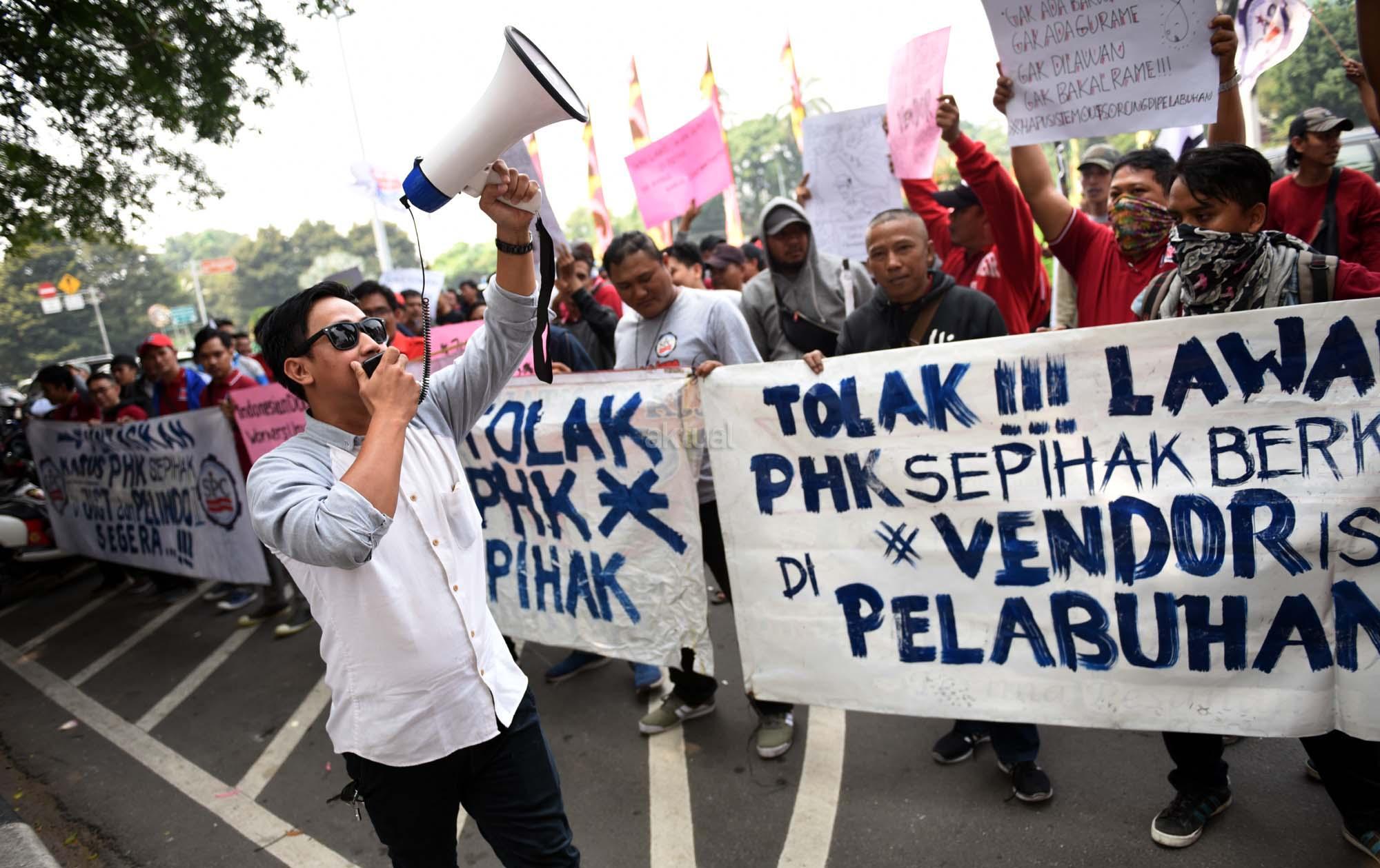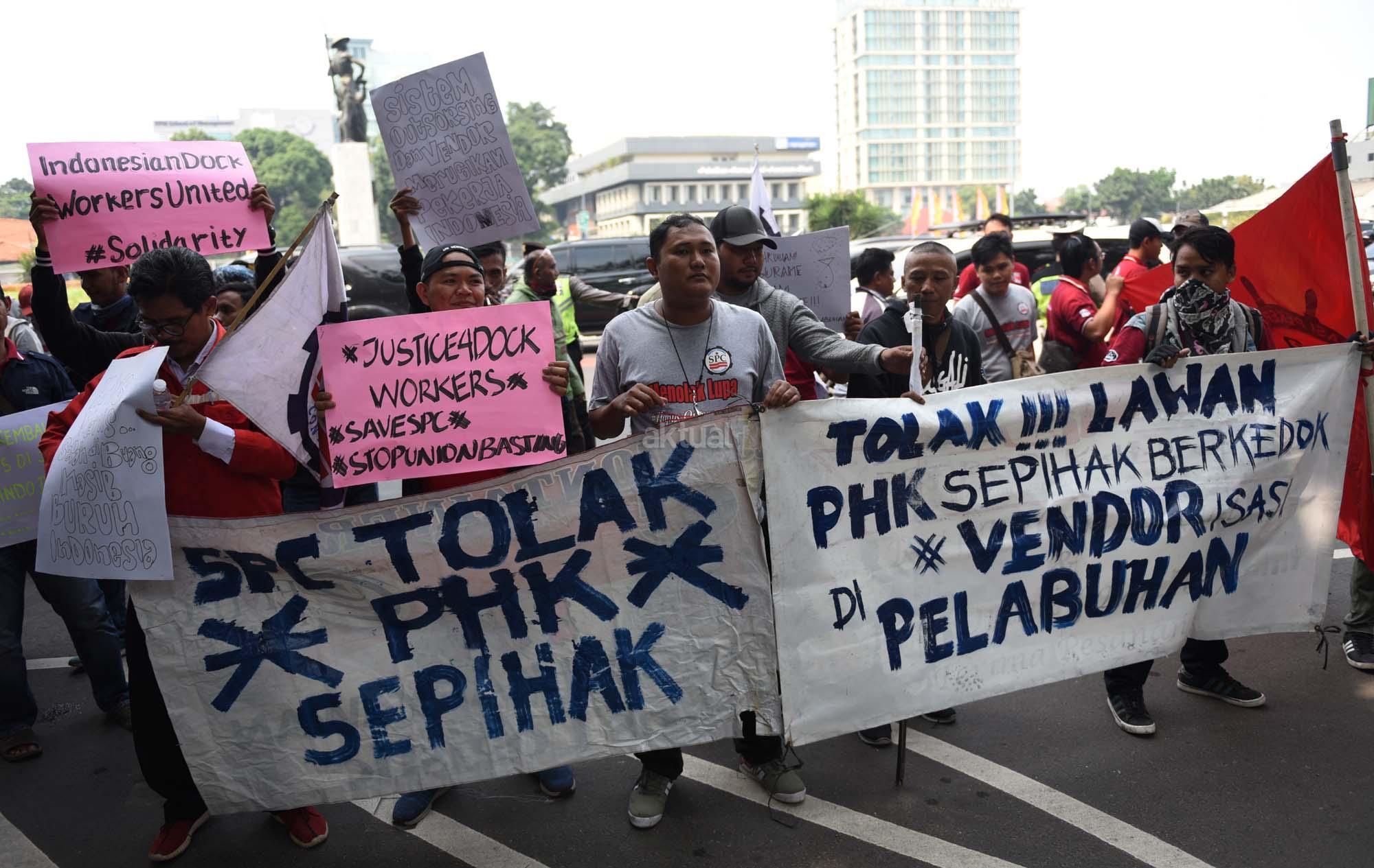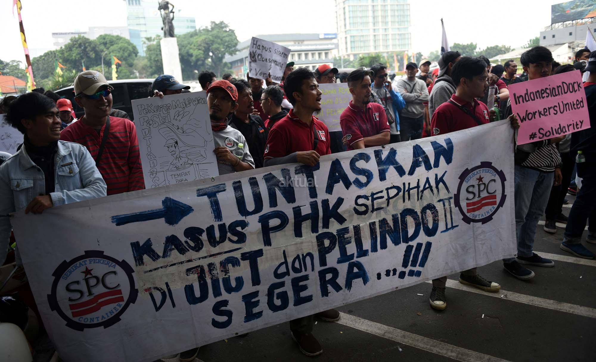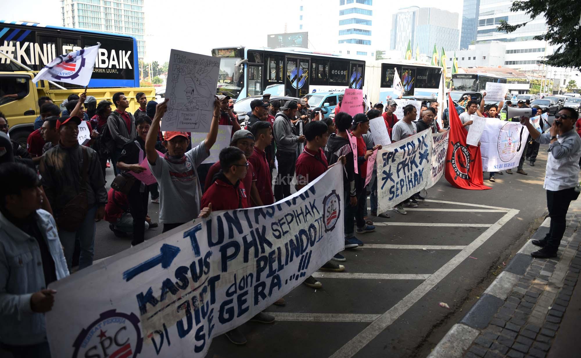 Terkena PHK, Ratusan Pekerja Pelabuhan Demo ke Disnaker DKI
