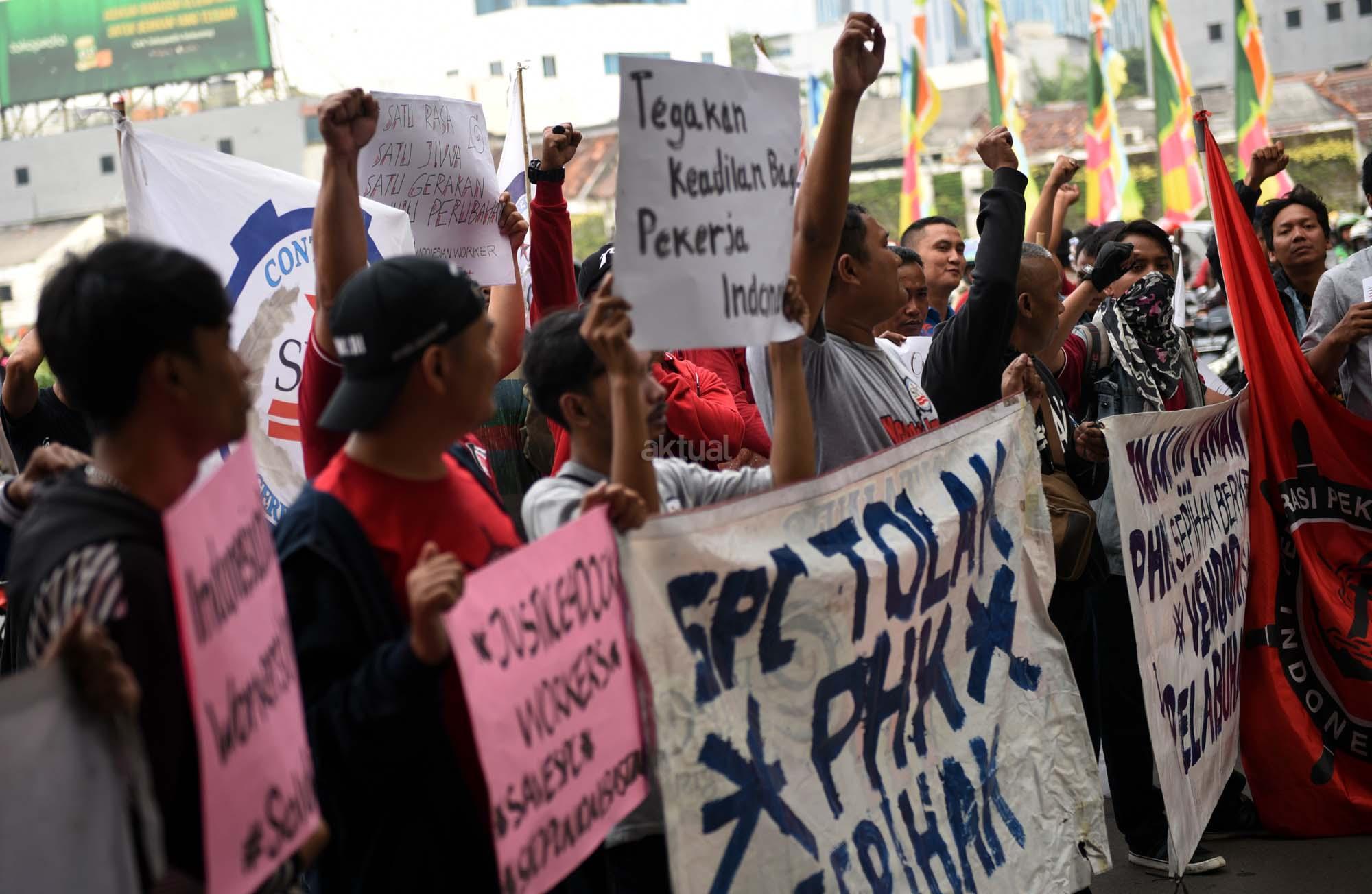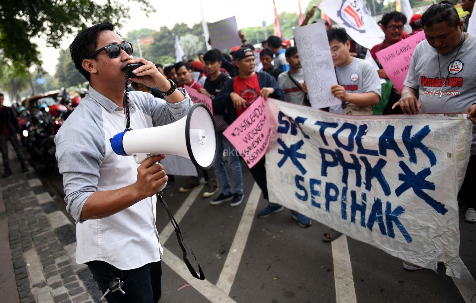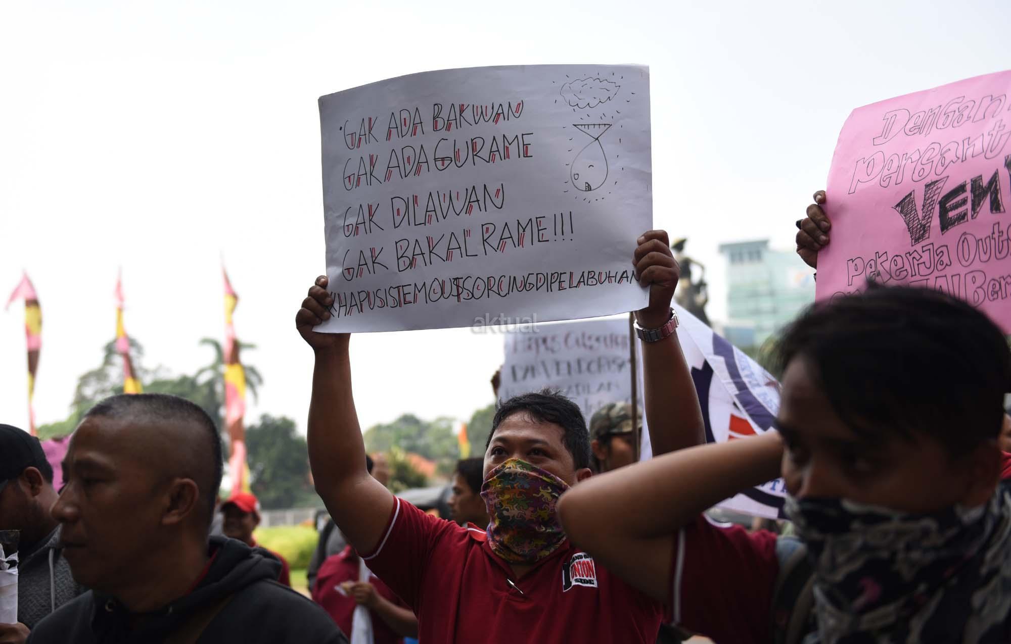 Ratusan buruh outsourcing yang tergabung dalam Federasi Pekerja