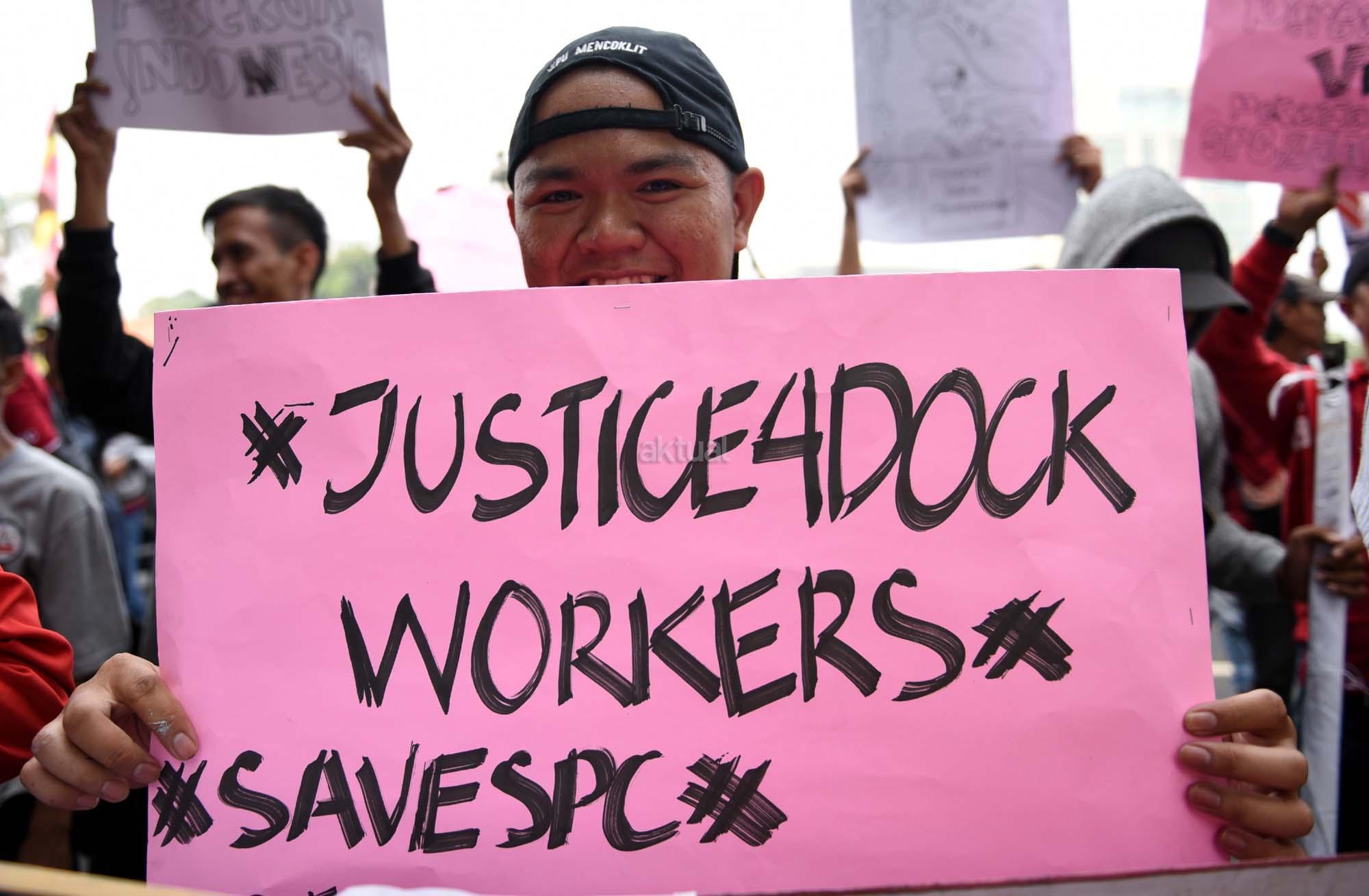 Pelabuhan Indonesia (FPPI) melakukan aksi di depan kantor Suku Dinas Tenaga Kerja dan Transmigrasi DKI Jakarta, Rabu (4/7/2018). Mereka meminta SudinakerTrans Provinsi DKI Jakarta segera memeriksa