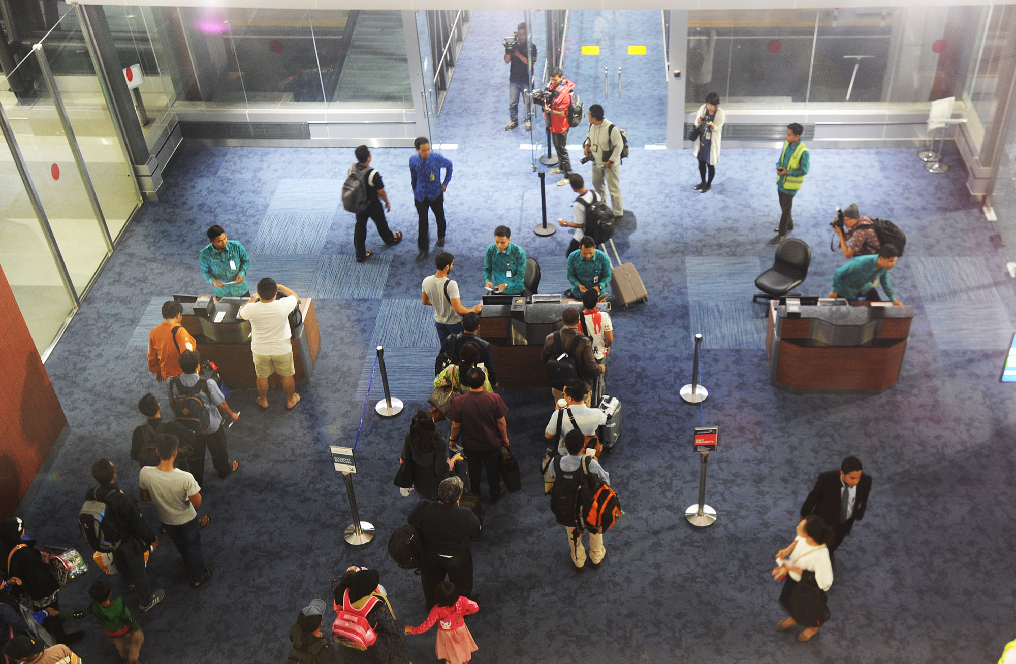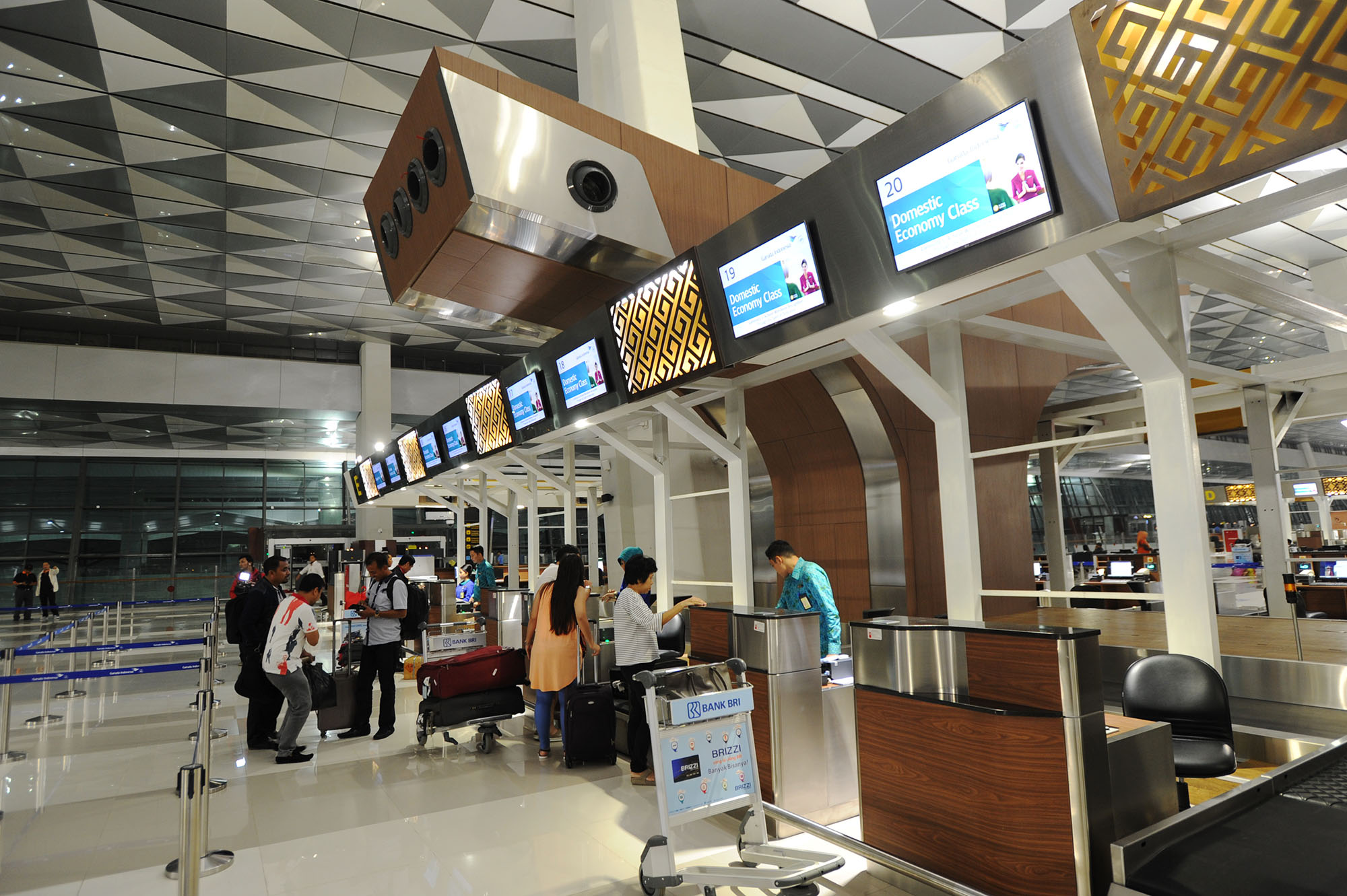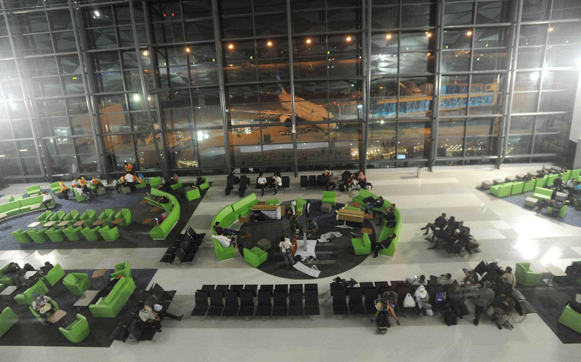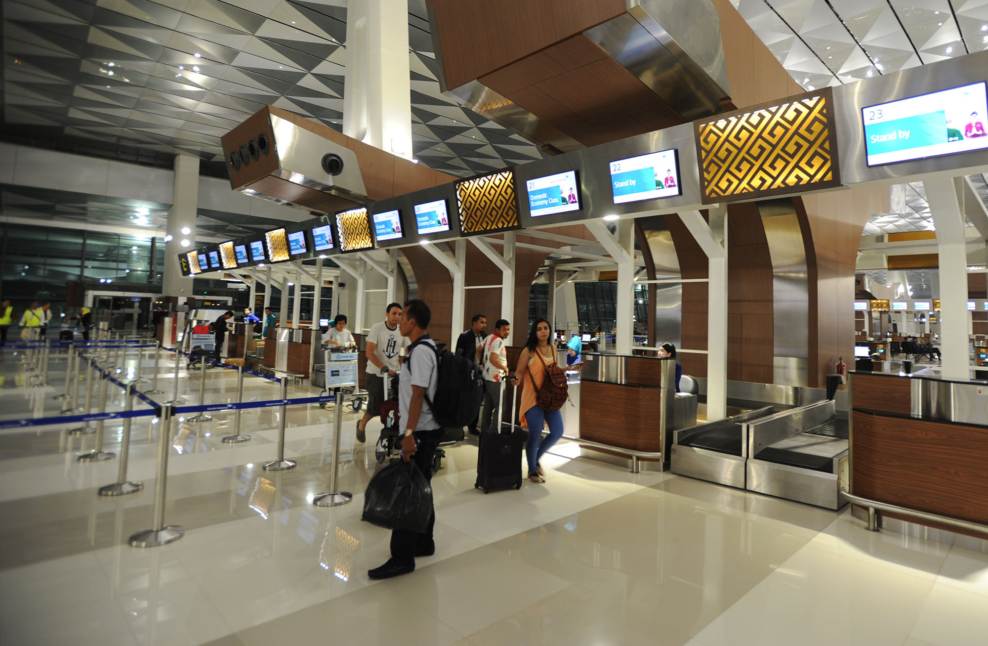 Aktivitas penumpang menunggu keberangkatan pesawat Garuda Indonesia menuju Jayapura di Terminal 3 Ultimate, Bandara Soekarno-Hatta, Banten, Selasa (9/8) dini hari. Mulai hari ini Terminal 3 Ultimate beroperasi melayani penumpang maskapai Garuda Indonesia dengan penerbangan pertama menuju Jayapura. AKTUAL/TINO OKTAVIANO