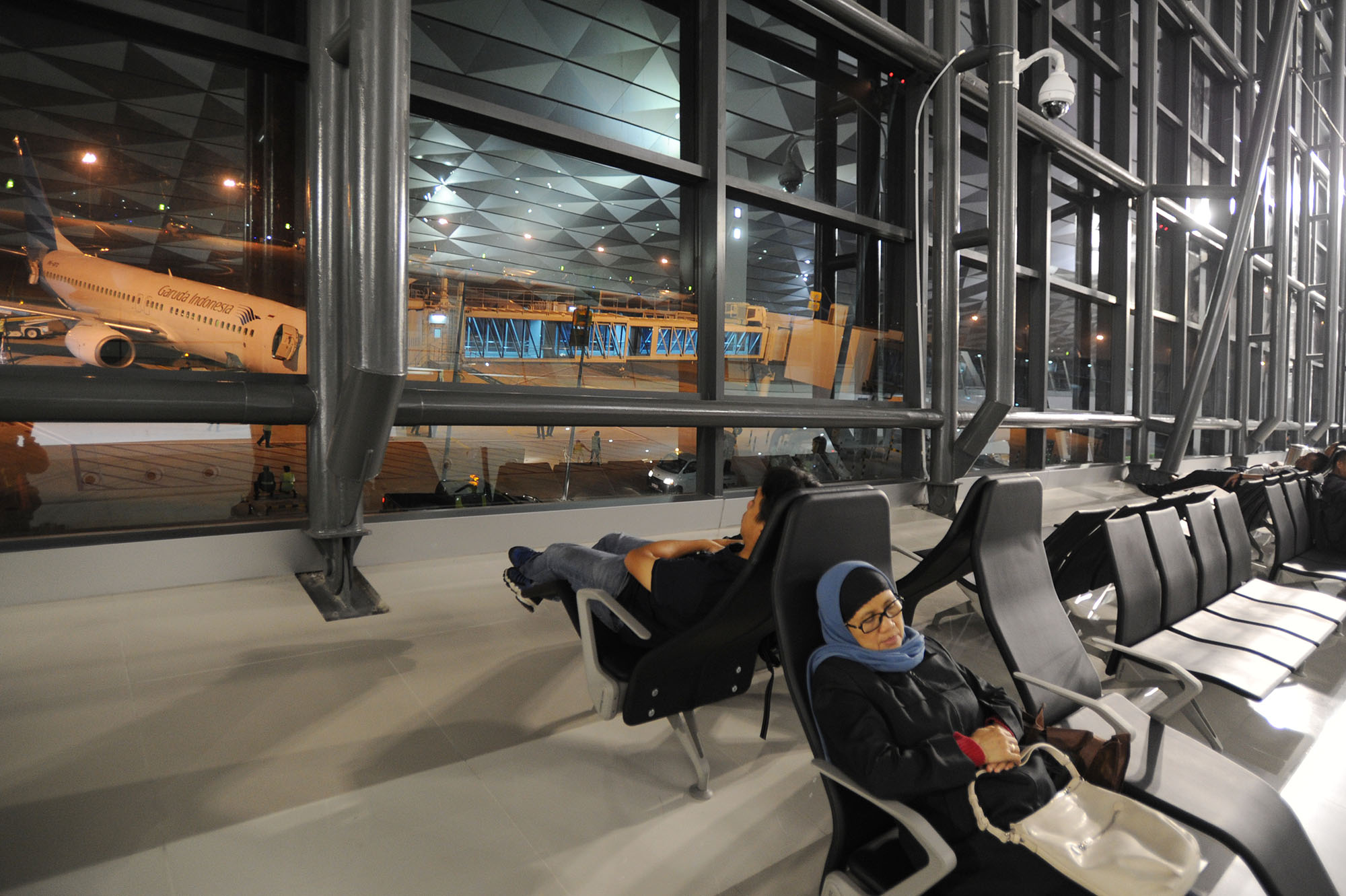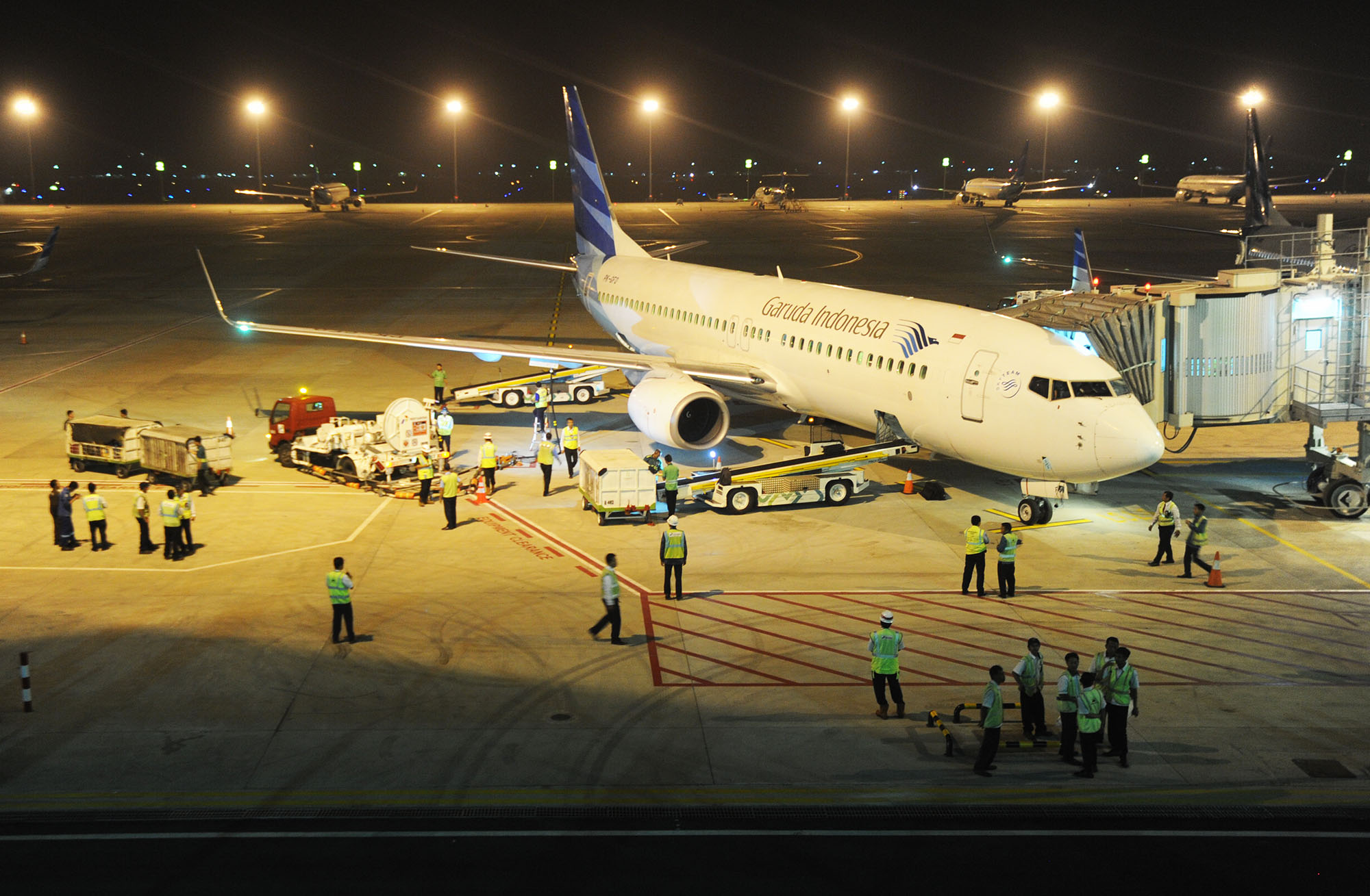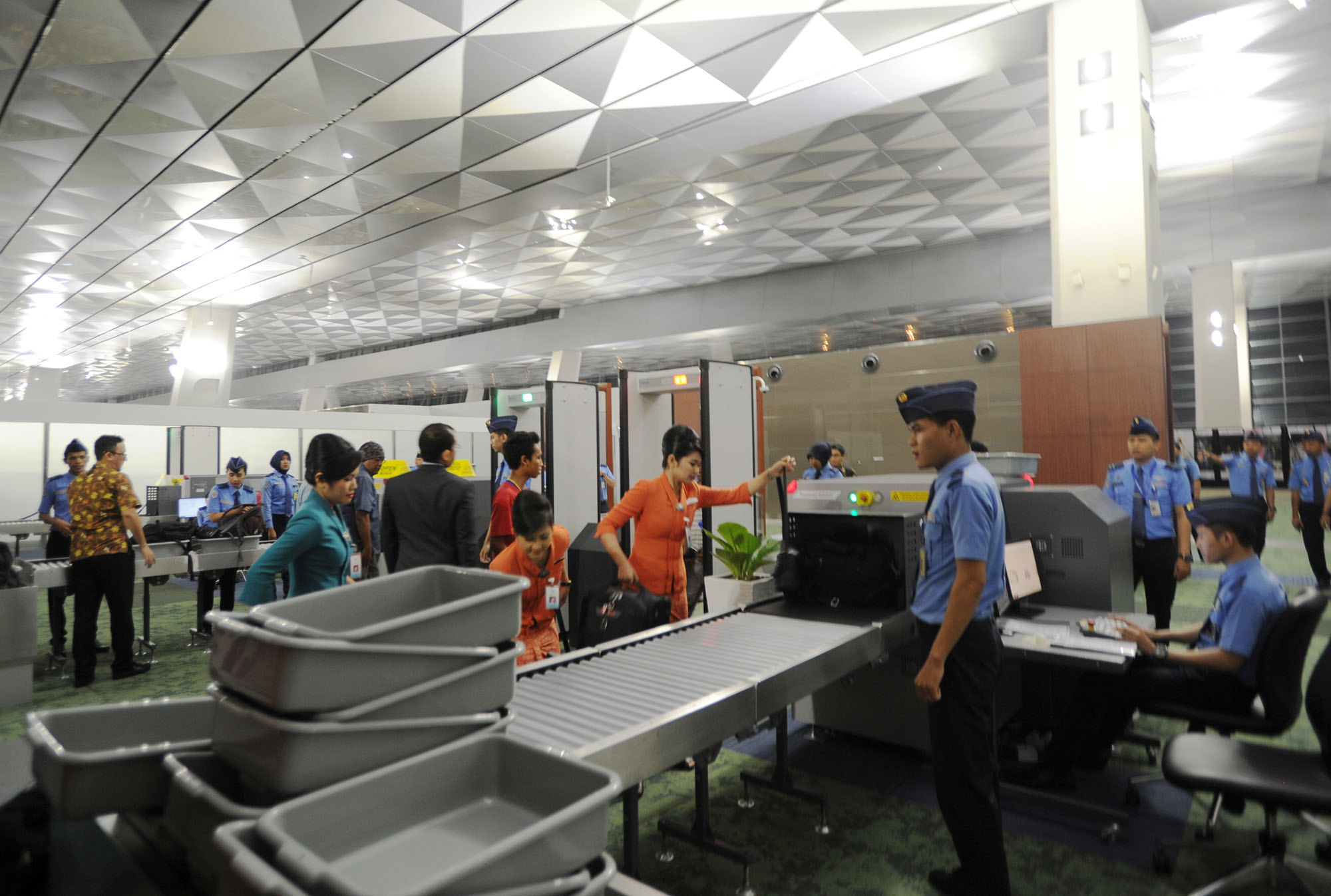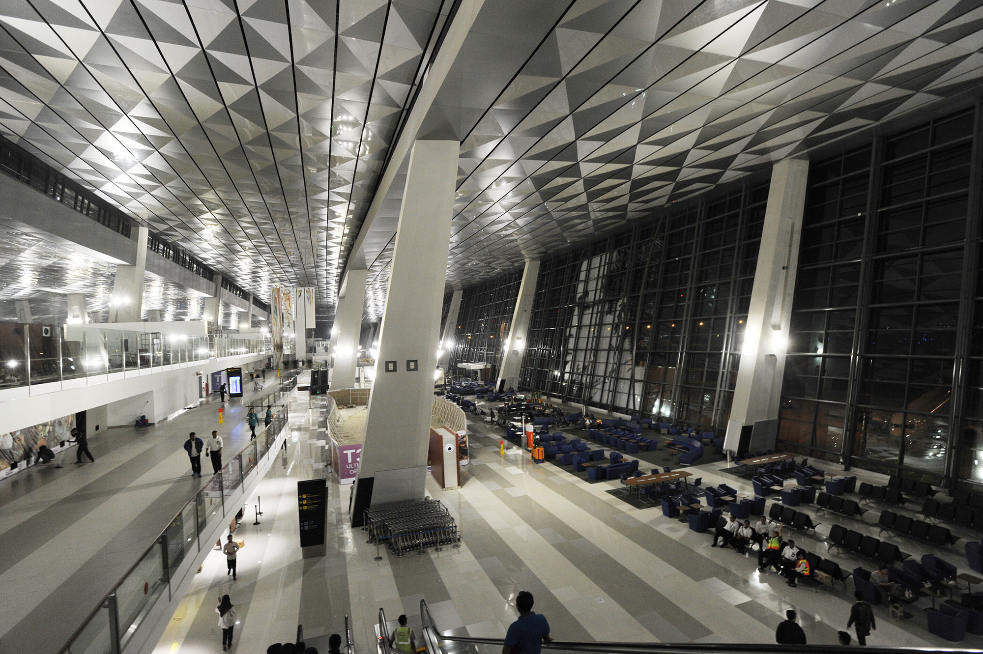 Aktivitas penumpang menunggu keberangkatan pesawat Garuda Indonesia menuju Jayapura di Terminal 3 Ultimate, Bandara Soekarno-Hatta, Banten, Selasa (9/8) dini hari. Mulai hari ini Terminal 3 Ultimate beroperasi melayani penumpang maskapai Garuda Indonesia dengan penerbangan pertama menuju Jayapura. AKTUAL/TINO OKTAVIANO