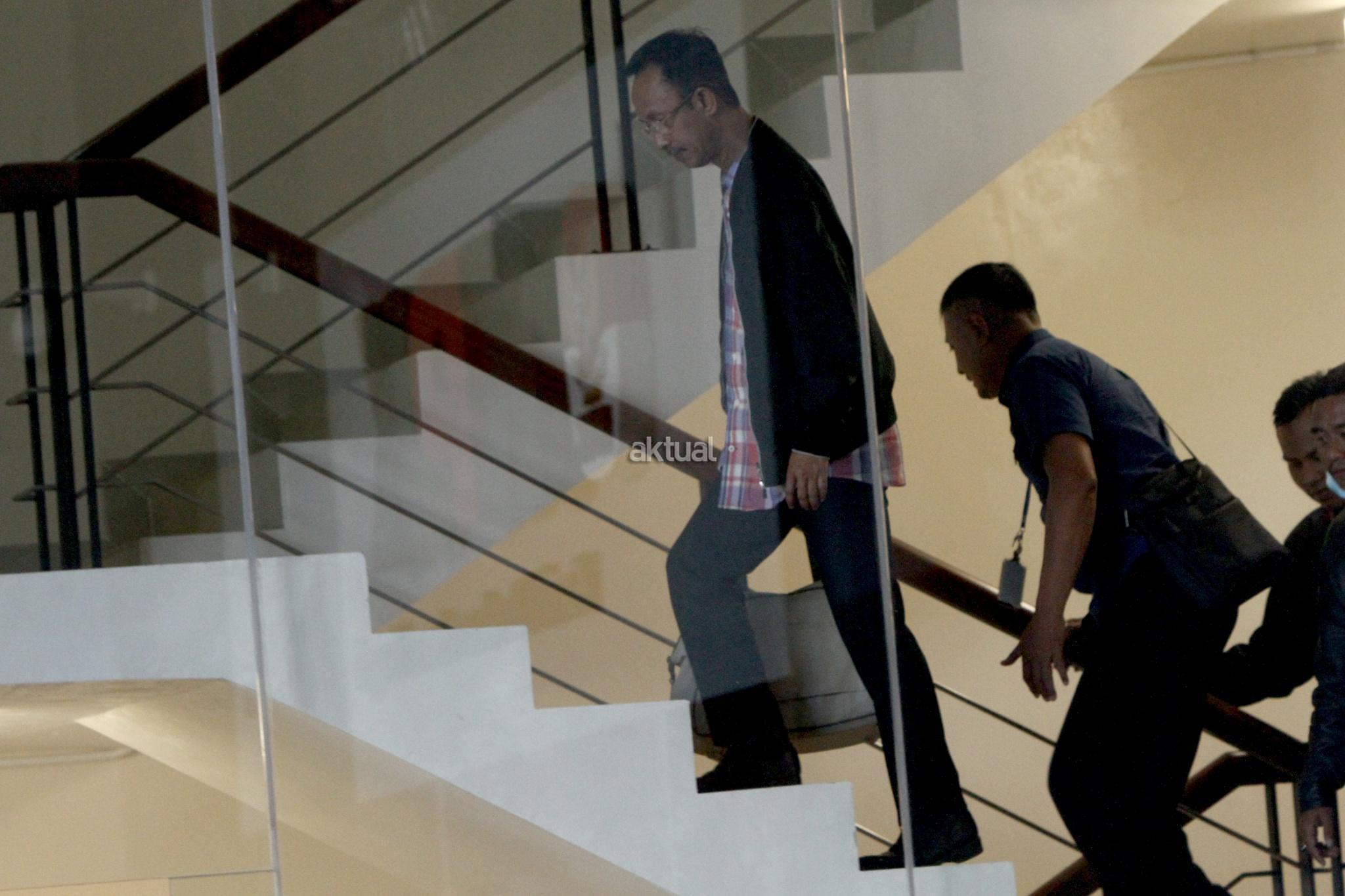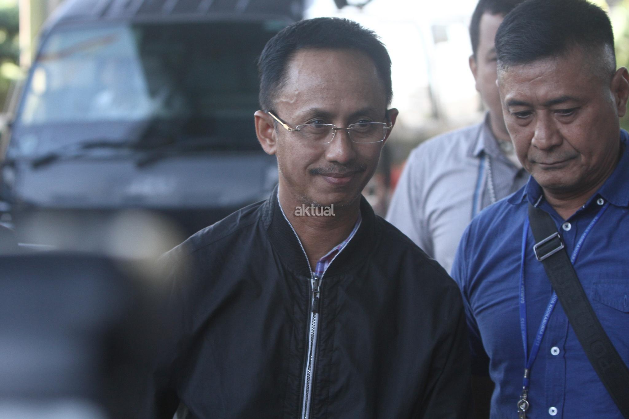 Bupati Pamekasan Achmad Syafii dikawal petugas KPK saat diamankan ke gedung KPK, Jakarta, Kamis (3/8). KPK mengamankan lima tersangka terkait suap dalam penanganan kasus dana desa yang sedang ditangani Kejari Pamekasan ke Gedung KPK, Jakarta diantaranya Bupati Pamekasan Achmad Syafii, Kajari Pamekasan Rudi Indra Prasetya, Kepala Inspektorat Kabupaten Pamekasan Sucipto Utomo, Kabag Inspektorat Noer Solehhoddin dan Kepala Desa Dassok, Kecamatan Pademawu, Kabupaten Pamekasan Agus Mulyadi pada operasi tangkap tangan (OTT) di Pamekasan, Jawa Timur untuk pemeriksaan lebih lanjut. AKTUAL/Tino Oktaviano
