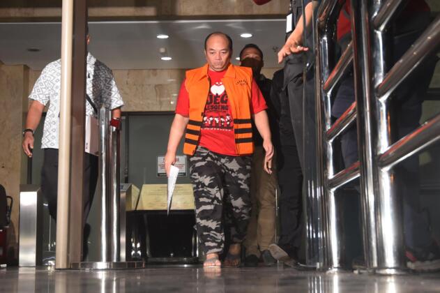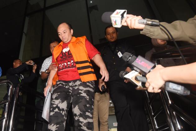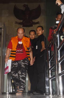 Tersangka suap di Mahkamah Agung Andri Tristianto Sutrisna meninggalkan Gedung KPK usai menjalani pemeriksaan di Jakarta, Minggu (14/2). Kasubdit Kasasi dan Peninjauan Kembali Perdata Khusus Mahkamah Agung itu diamankan dalam operasi tangkap tangan KPK seusai menerima suap sebesar Rp400 Juta dari pengusaha Ichsan Suadi melalui pengacara Awan Lazuardi Embat guna menunda pengiriman salinan putusan kasasi. ANTARA FOTO/Akbar Nugroho Gumay/pras/16