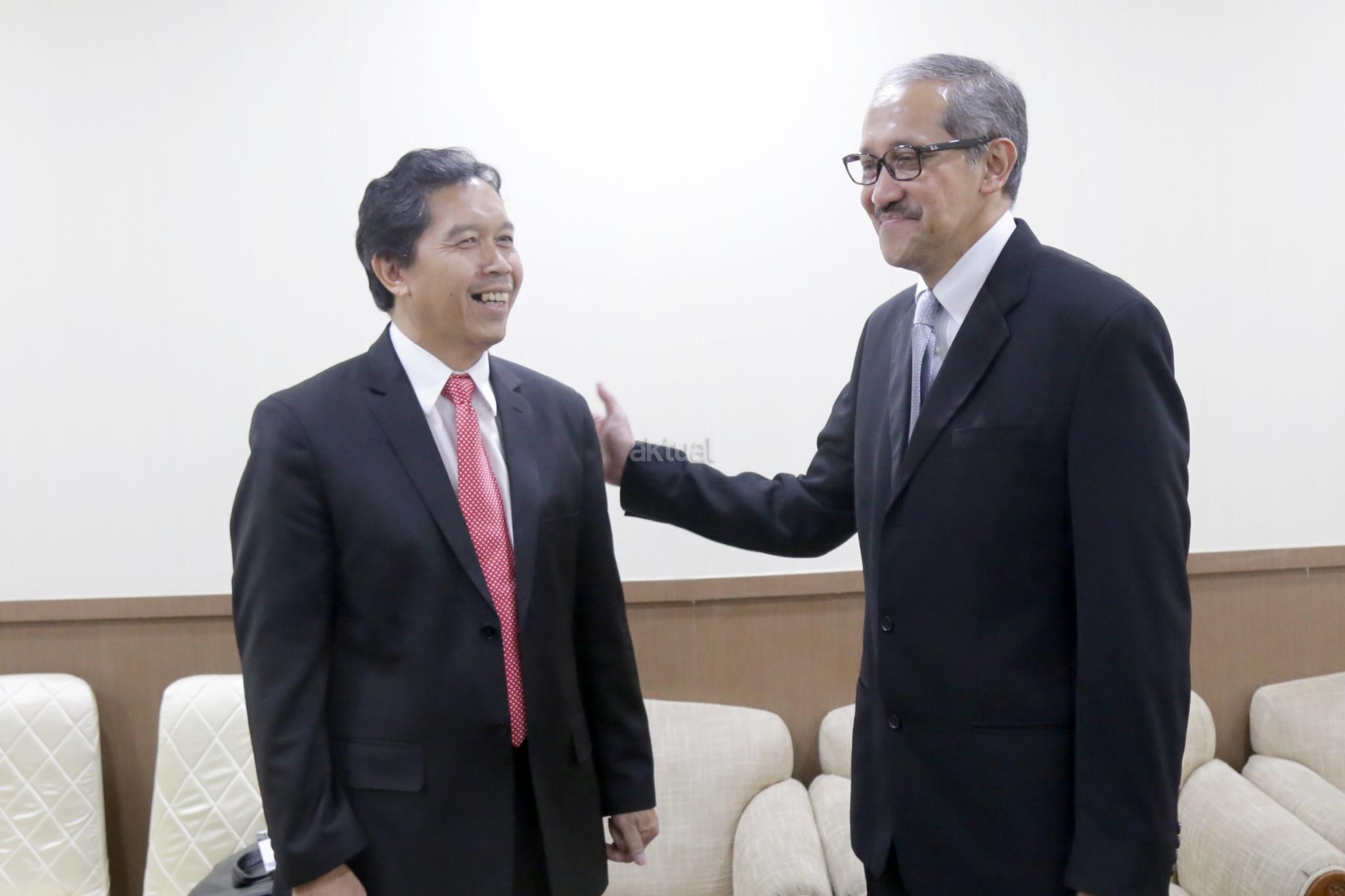 Dua Calon Deputi Gubernur Bank Indonesia (BI) Doddy Zulverdi (kanan) dan Wiwiek Sisto Widayat berbincang sebwlum menjalani uji kepatutan dan kelayakan (fit and proper test) dengan Komisi XI DPR, di Kompleks Parlemen, Senayan, Jakarta, Selasa (27/3/2018). Dalam tes tersebut ketiga calon memaparkan visi misi dan pandangan terkait perekonomian Indonesia. AKTUAL/Tino Oktaviano