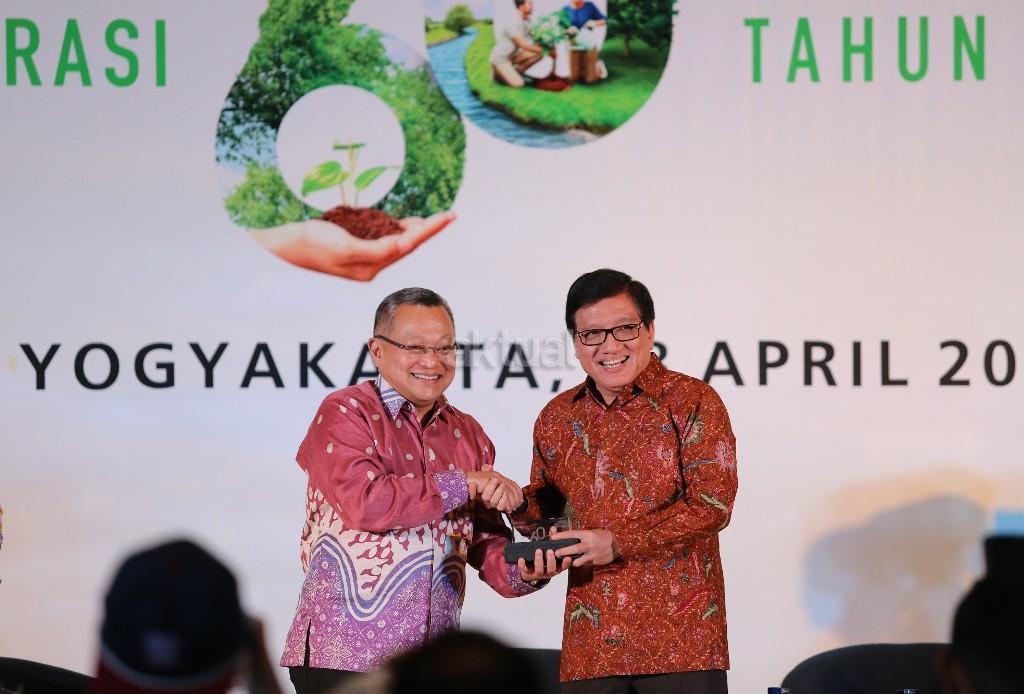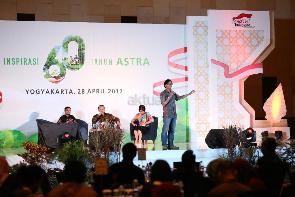 Kepala Pusat Studi Ekonomi & Kebijakan Publik Universitas Gadjah Mada A. Tony Prasetiantono (tengah) dan Penulis Buku Astra on Becoming Pride of the Nation Yakub Liman (kiri) berbagi wawasan dan pengalaman kepada 700 peserta dalam bincang inspiratif Buku Astra pada acara Inspirasi 60 Tahun Astra di Yogyakarta, Jumat (28/4). AKTUAL/Eko S Hilman