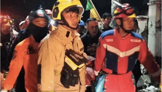Tim evakuasi gabungan dari BPBD, Damkarmat, Dinas Kesehatan Kota Makassar, Dinas Kesehatan Provinsi serta dibantu tim relawan potensi SAR.