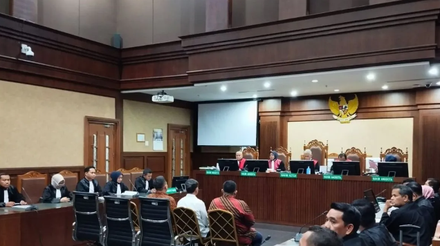Sidang pembacaan dakwaan kasus dugaan korupsi proyek pembangunan Jalur Kereta Api Besitang-Langsa pada Balai Teknik Perkeretaapian Medan tahun 2017-2023 di Pengadilan Tipikor, Jakarta, Senin (15/7/2024). (ANTARA/Agatha Olivia Victoria)