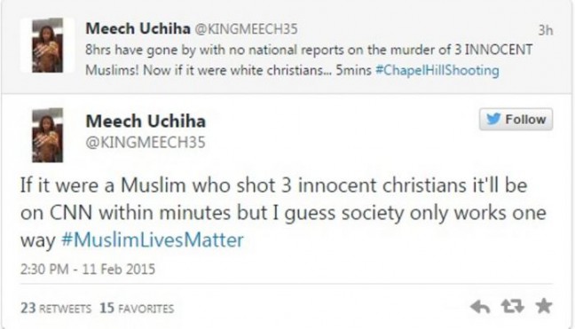 Jakarta, Aktual.co —Penembakan yang menewaskan tiga warga Muslim di North Carolina, Amerika Serikat (AS) tidak diekspos besar-besaran. Media besar di AS cenderung bungkam. Seperti dilansir, Independent, Rabu (11/2), sebagai bentuk kekesalan terhadap media besar di Negeri Paman Sam, hashtag #Muslimlivesmatter pun mulai beredar di Twitter.