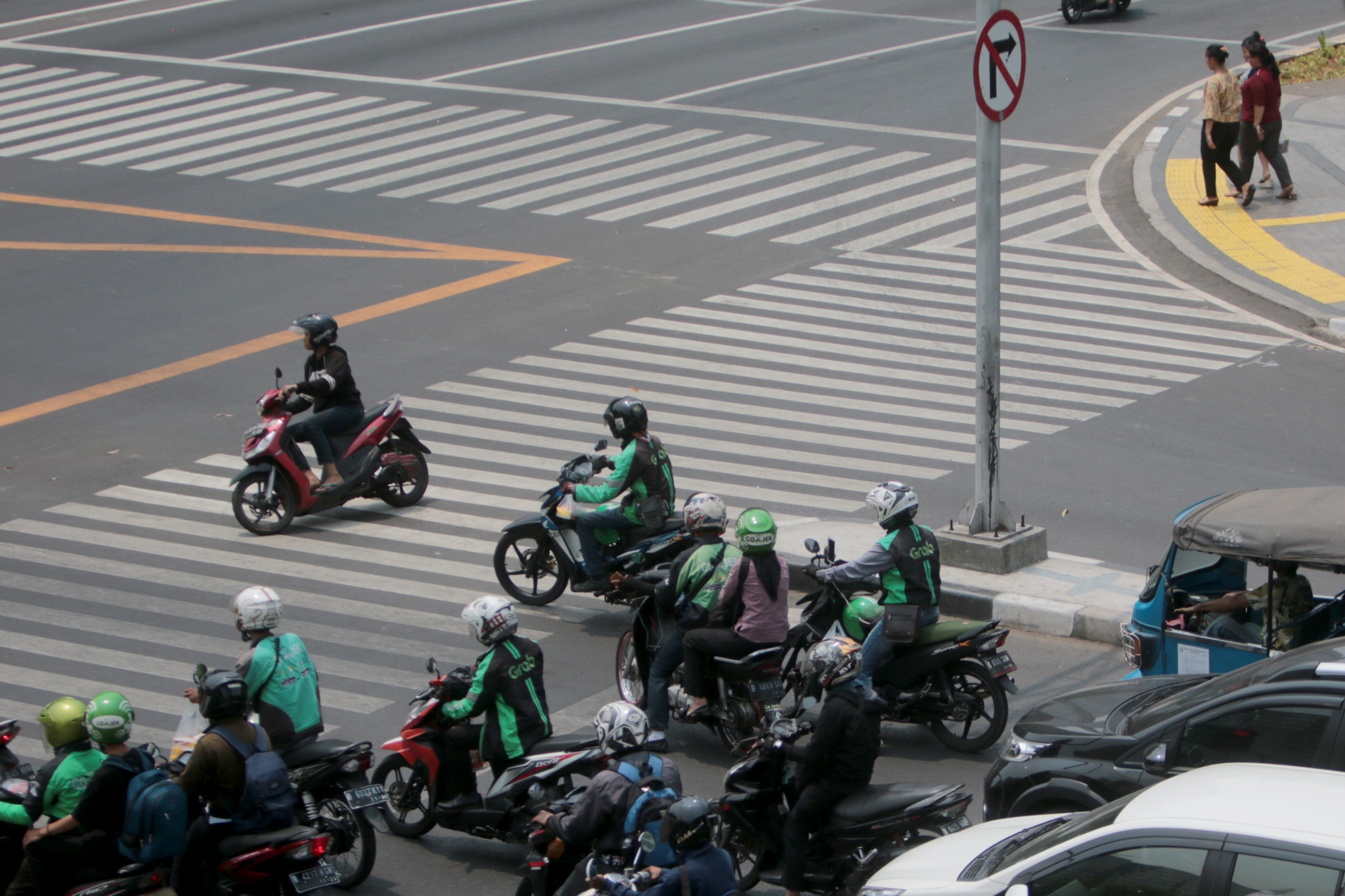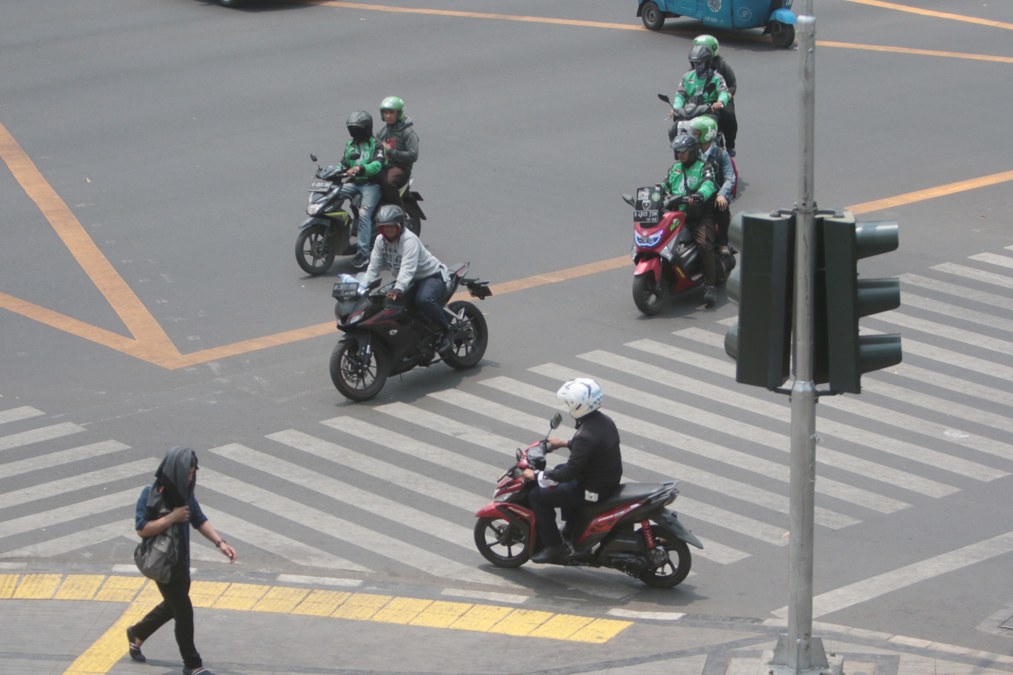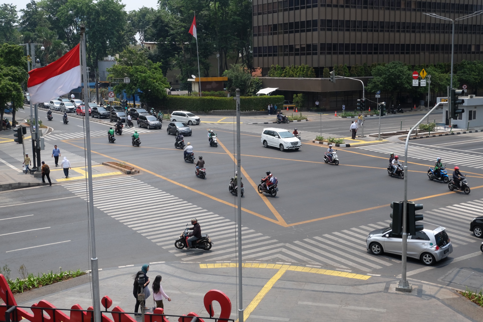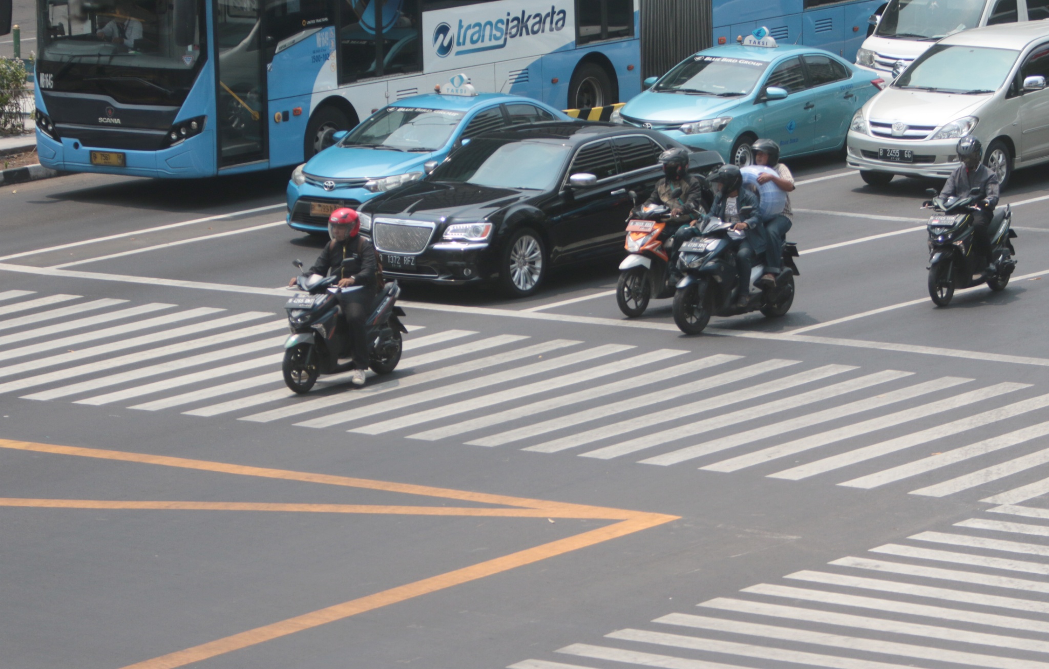 Sejumlah kendaraan bermotor terlihat melanggar lalu lintas di kawasan Jalan HM Thanmrin, Jakarra Pusat, Senin (1/10). Uji coba sistem tilang elektronik atau electronic traffic law enforcement (ETLE) mulai dilakukan pada Senin (1/10) ini di ruas Jalan Jenderal Sudirman dan MH Thamrin, Jakarta. Namun, Direktur Lalu Lintas Polda Metro Jaya Kombes Yusuf mengatakan, uji akurasi CCTV ETLE telah dilakukan sejak 24 September 2018. AKTUAL/Tino Oktaviano