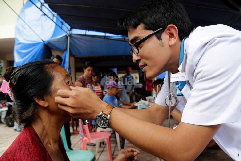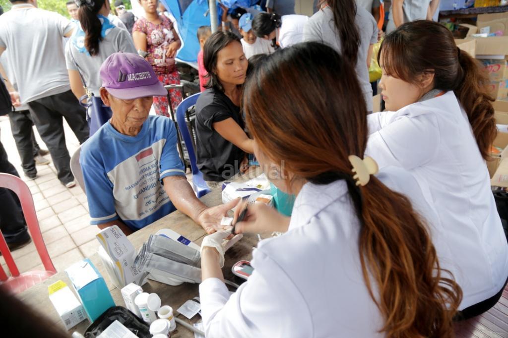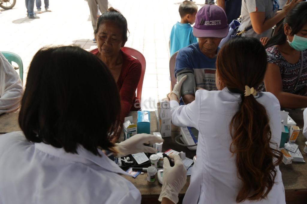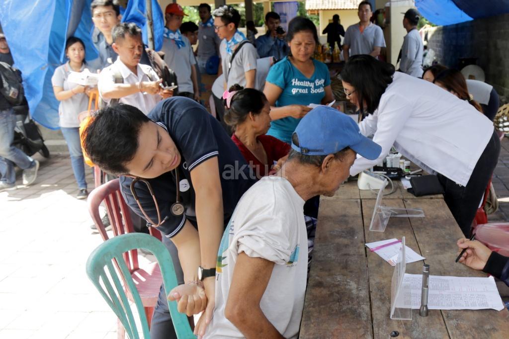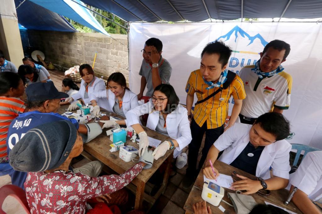 Tim medis dari Guardian, Giant dan IKEA melakukan pengecekan kesehatan kepada pengungsi di Posko pengungsian Sidemen, Karangasem, Bali, Rabu (4/10/2017). Guardian, Giant dan IKEA memberikan bantuan kepada pengungsi Gunung Agung di Desa Sinduwati berupa kesehatan, sembako dan alat sekolah. Meskipun frekuensi gempa sudah menurun tetapi Gunung Agung sampai saat ini masih berstatus awas. AKTUAL/Tino Oktaviano