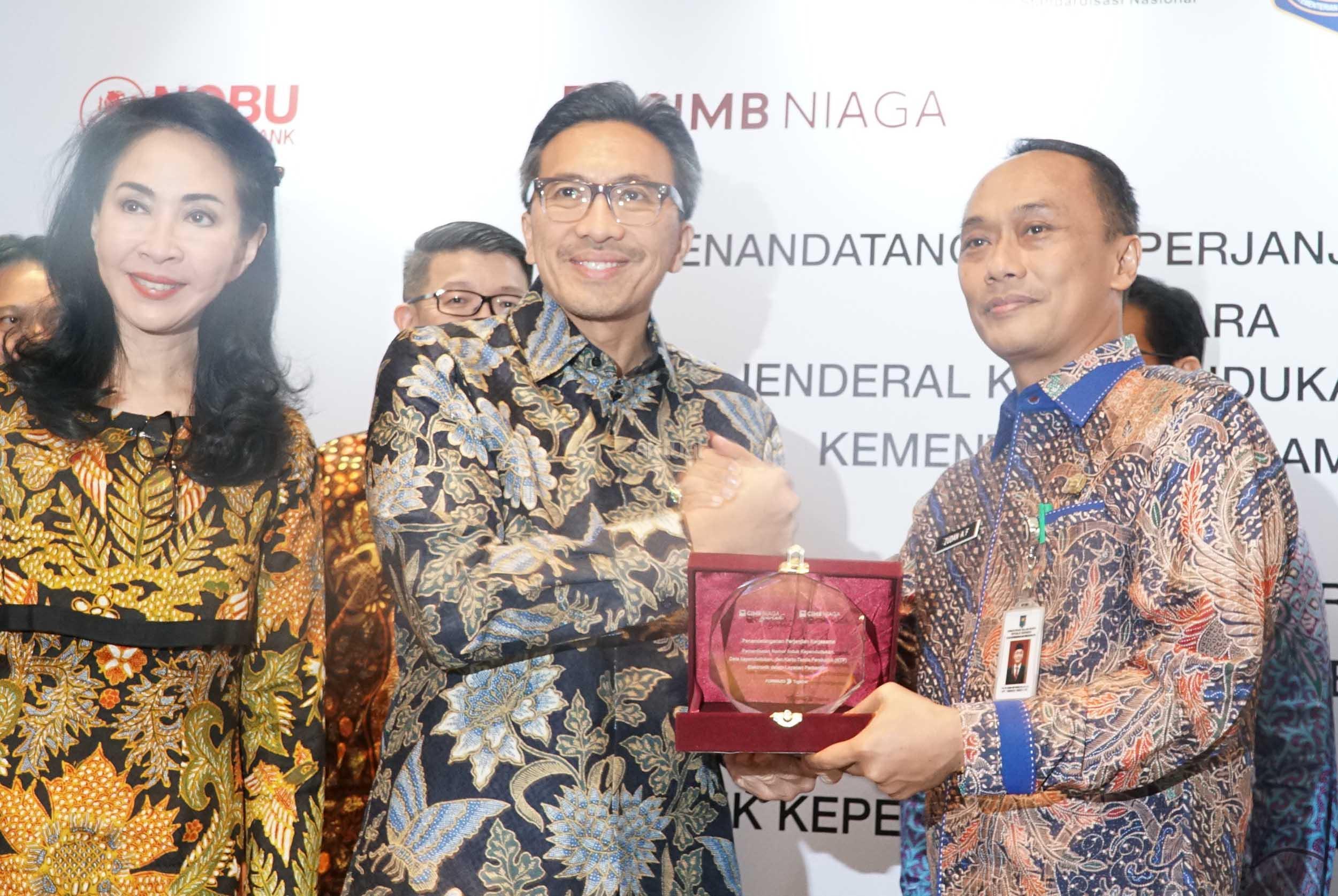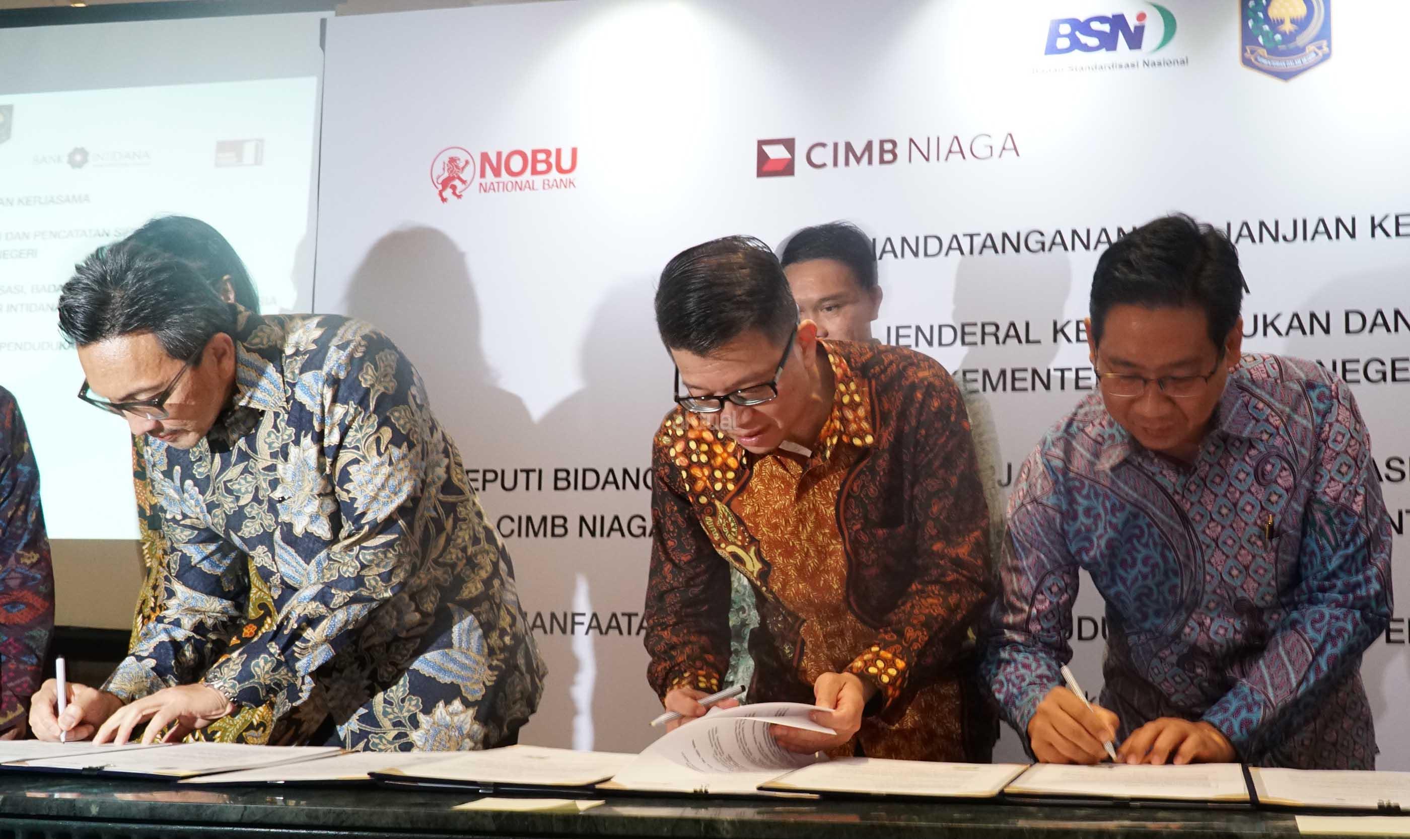 CIMB Niaga bekerja sama dengan Dukcapil Kementrian Dalam Negeri terkait pemanfaatan data kependudukan dalam layanan perbankan. Melalui kerja sama ini, CIMB Niaga dapat menanfaatkan Nomor Induk Kependudukan (NIK), Data Kpendudukan, serta data Kartu Tanda Penduduk (KTP) Elektronik yang tercatat di Dukcapil untuk berbagai kebutuhan, seperti registrasi berbagai produk secara online serta meningkatkan efektivitas, akurasi, keamanan layanan, serta effesiensi transaksi perbankan.Kerja sama ini juga mendorong upaya CIMB Niaga untuk meningkatkan beragam layanan perbankan berbasis digital. AKTUAL/Eko S Hilman