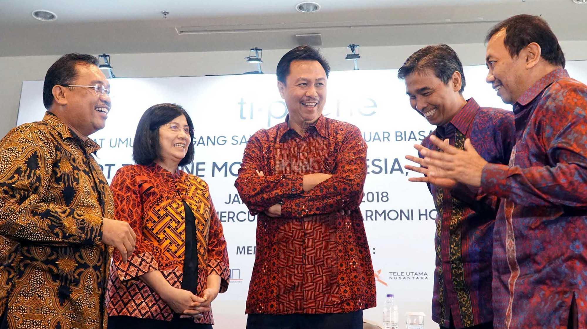 (dari kiri ke kanan) Komisaris PT Tiphone Mobile Indonesia Tbk (TELE), Mohammad Firdaus, Presiden Direktur, Tan Lie Pin, Presiden Komisaris, Hengky Setiawan berbincang seusai melaksanakan RUPS Tahunan dan RUPS Luar Biasa di Jakarta, Kamis,5 April 2018. Perseroan yang bergerak di bidang distribusi produk dan layanan seluler di Indonesia dan menjadi distributor terbesar di Indonesia untuk produk Telkom Group tersebut menargetkan akan mengandeng 100.000 Usaha Mikro Kecil menengah (UMKM) di seluruh Indonesia untuk bergabung dalam layanan teknologi keuangan digital (fintech). Dan Tahun 2018 ini juga, TELE menargetkan pertumbuhan jumlah reseller menjadi 300.000 reseller, Sementara RUPS tahunan dan RUPSLB perseroan yang memiliki 200 cabang, 400 outlet, 96 layanan service center itu akan memberikan deviden sebesar Rp 5 per saham serta menyetujui menerbitkan Obligasi sukuk dan surat utang lainnya dengan nilai Rp 2 Triliun. AKTUAL/Eko S Hilman