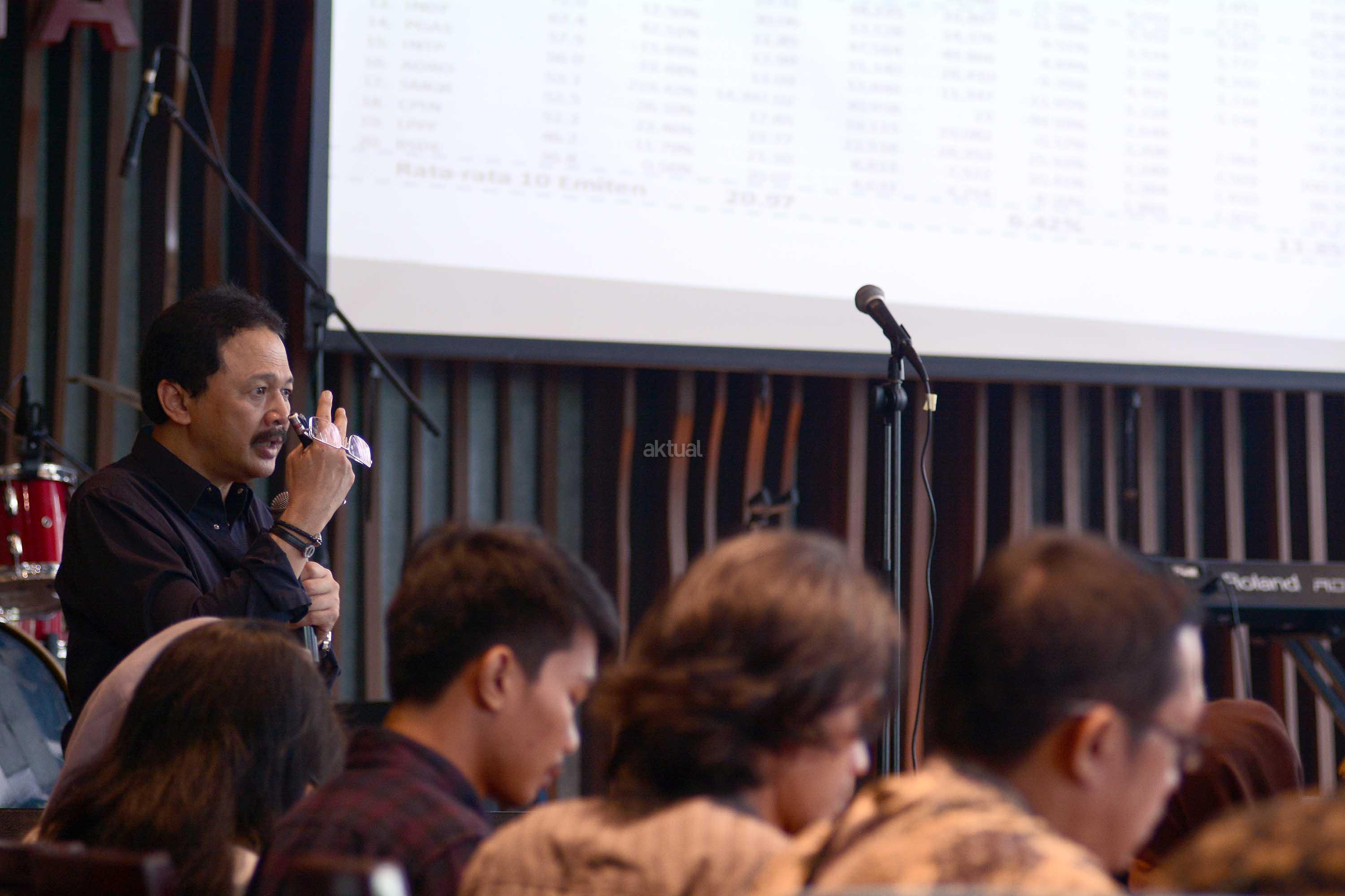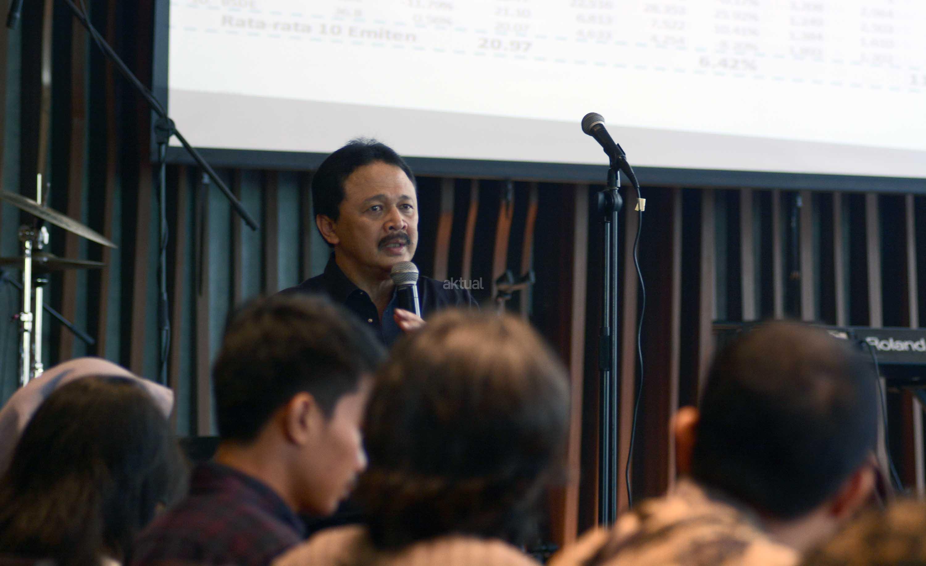 Direktur Utama Bursa Efek Indonesia, Tito Sulistio, menyampaikan laporan perkembangan IHSG dan pasar modal saat jumpa pers di Hard Rock Cafe Pacific Place, SCBD, Jakarta Selatan, Senin (14/11/2016). Pasca menangnya Donald Trump dalam Pemilu Presiden Amerika Serikat (AS) terjadi gejolak di pasar keuangan dunia, termasuk di Indonesia. Indeks Harga Saham Gabungan (IHSG) dalam dua hari belakangan ini mengalami penurunan yang cukup signifikan. Sejumlah saham perbankan di BEI mengalami penurunan saat perdagangan sesi I. Beberapa di antaranya adalah harga saham BRI yang turun 5,8%, Bank Mandiri turun 5%, dan BCA 3,4%. AKTUAL/Eko S Hilman