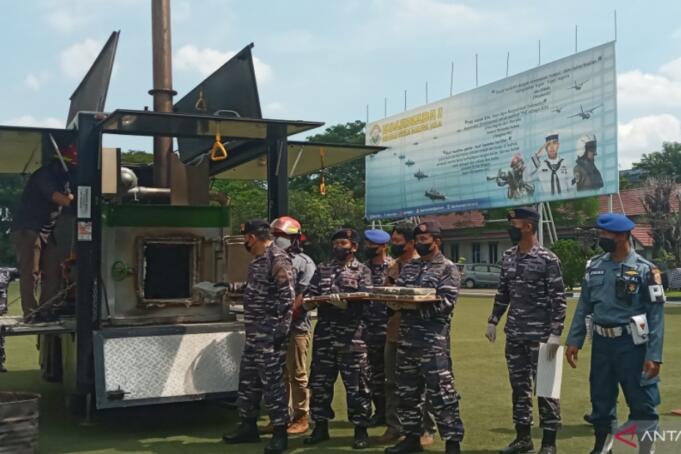 Jakarta, Aktual.com – TNI Angkatan Laut (AL) melaksanakan pemusnahan barang temuan narkotika jenis kokain seberat 179 kilogram yang diperkirakan senilai Rp1,25 triliun menggunakan mesin incinerator di Lapangan Komando Armada (Koarmada) I, Jakarta, Kamis.