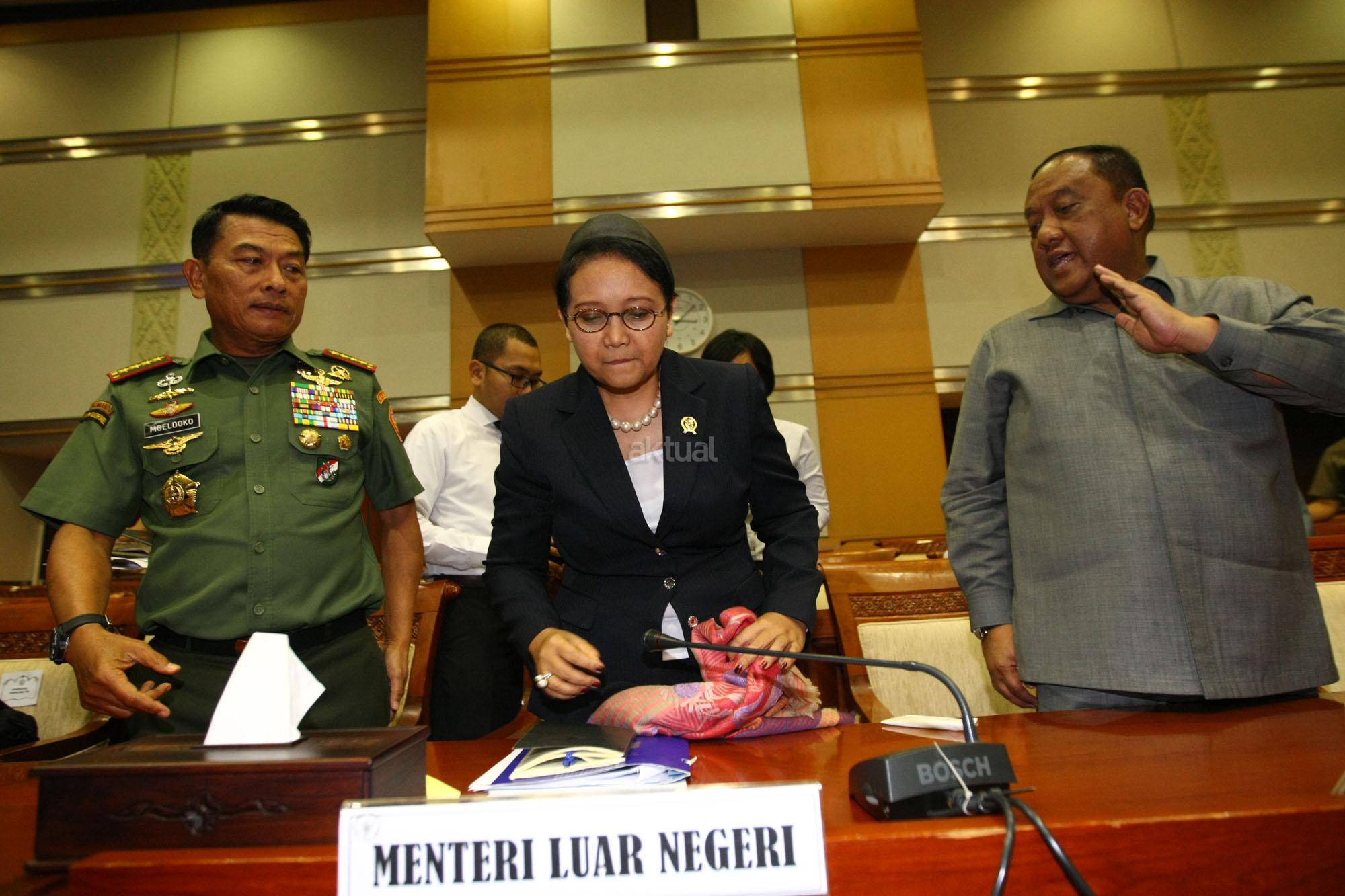 Panglima TNI Jenderal Moeldoko, Menteri Luar Negeri Retno Marsudi, Kepala Badan Intelijen Negara Marciano Norman usai mengikuti rapat dengan Komisi I di Komplek Parlemen, Senayan, Jakarta, Senin (22/6/2015). Rapat kerja membahas rencana pemberian Amnesti dan Abolisi untuk narapidana atau tahanan politik Papua. AKTUAL/JUNAIDI MAHBUBPanglima TNI Jenderal Moeldoko, Menteri Luar Negeri Retno Marsudi, Kepala Badan Intelijen Negara Marciano Norman usai mengikuti rapat dengan Komisi I di Komplek Parlemen, Senayan, Jakarta, Senin (22/6/2015). Rapat kerja membahas rencana pemberian Amnesti dan Abolisi untuk narapidana atau tahanan politik Papua.Panglima TNI Jenderal Moeldoko, saat mengikuti rapat dengan Komisi I di Komplek Parlemen, Senayan, Jakarta, Senin (22/6/2015). Rapat kerja membahas rencana pemberian Amnesti dan Abolisi untuk narapidana atau tahanan politik Papua. AKTUAL/JUNAIDI MAHBUB