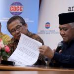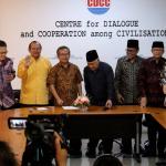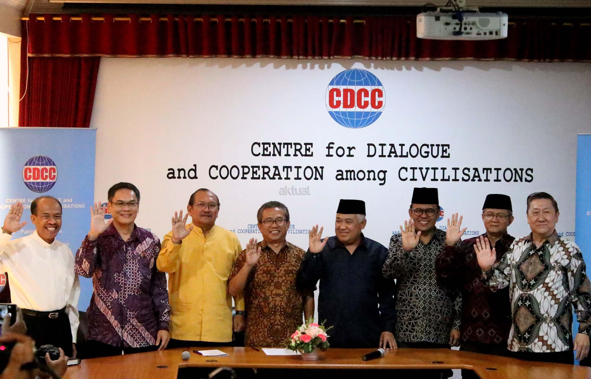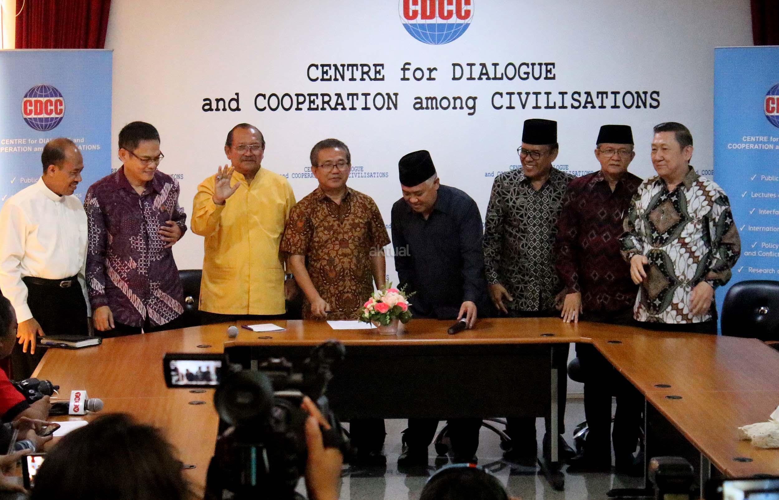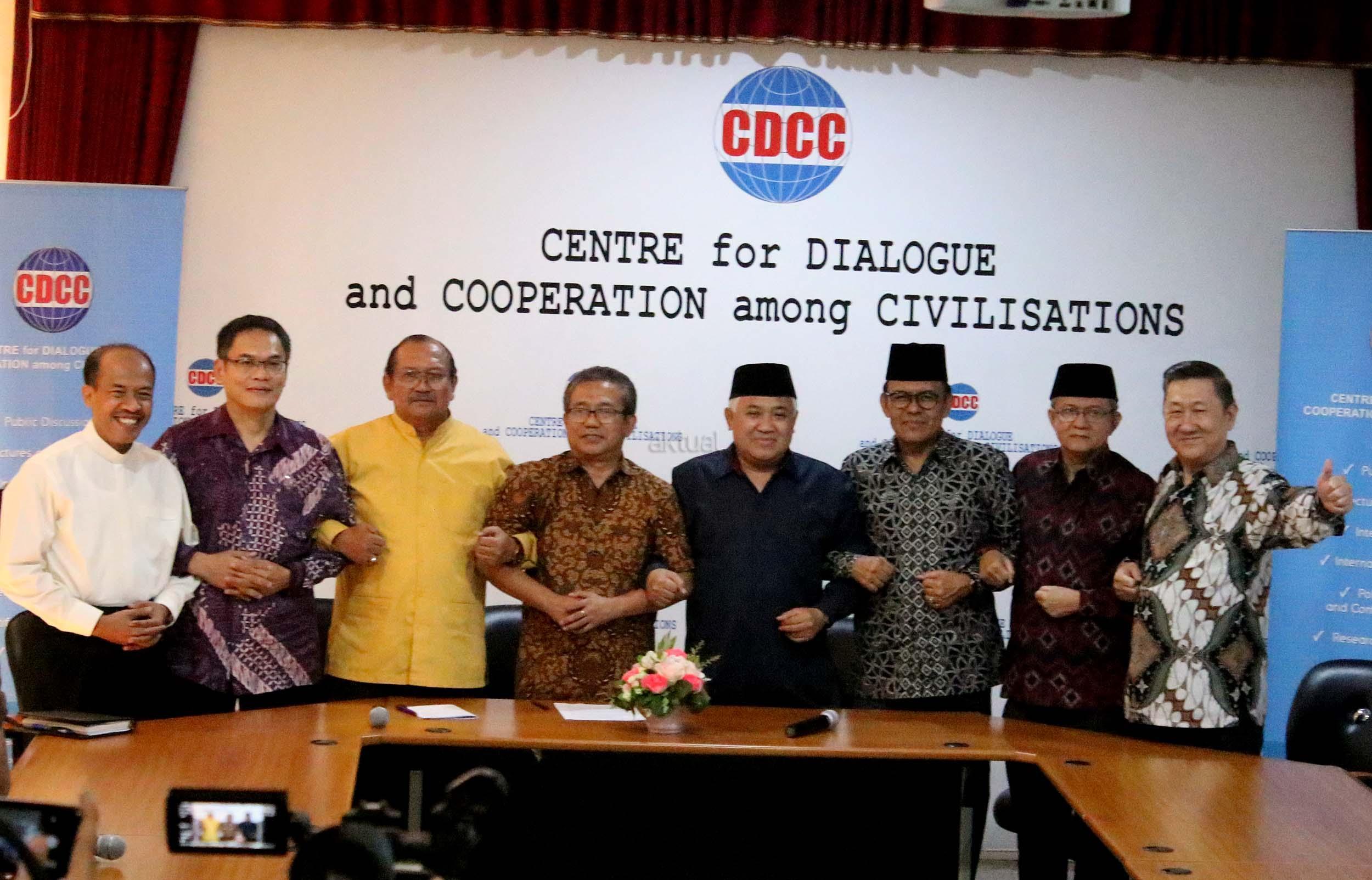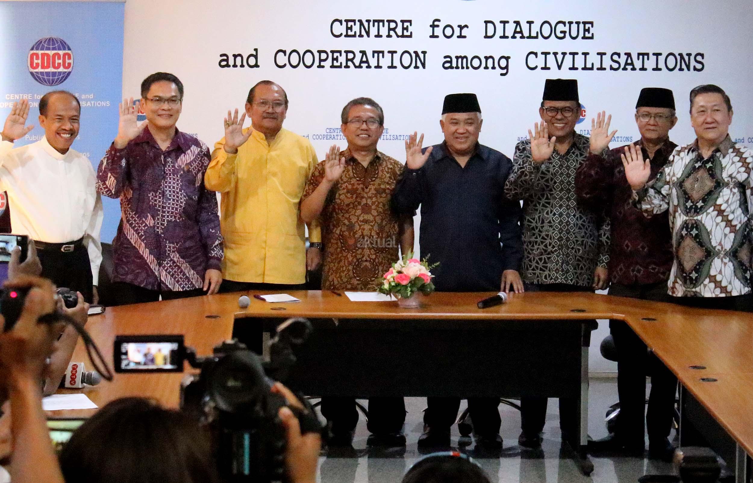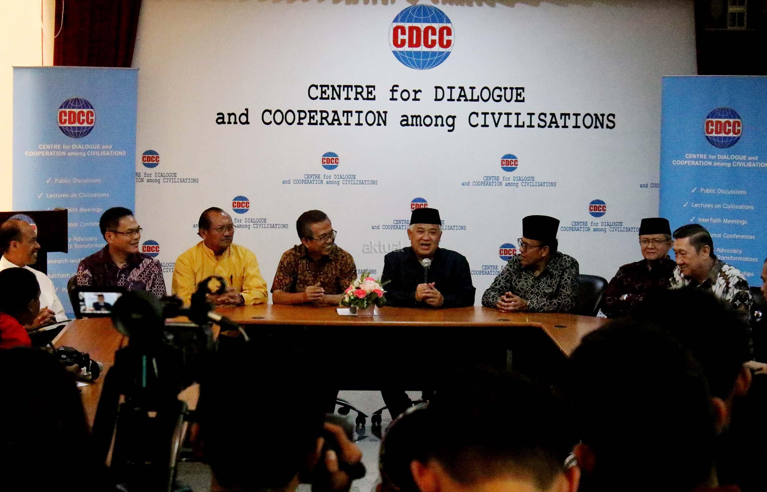 Presidium Inter Religious Council Indonesia (IRC) Din Syamsuddin, bersama tokoh lintas agama memberikan pernyataan sikap menyikapi isu yang berkembang terkait penistaan agama di Kantor CDCC, Jakarta, senin (17/10/2016). Sejumlah tokoh lintas agama meminta sejumlah pihak menahan diri dalam perkataan dan perbuatan yang dapat mendorong pertentangan dalam masyarakat majemuk, terutama menyinggung wilayah sensitifitas menyangkut keyakinan agama, ras dan suku.