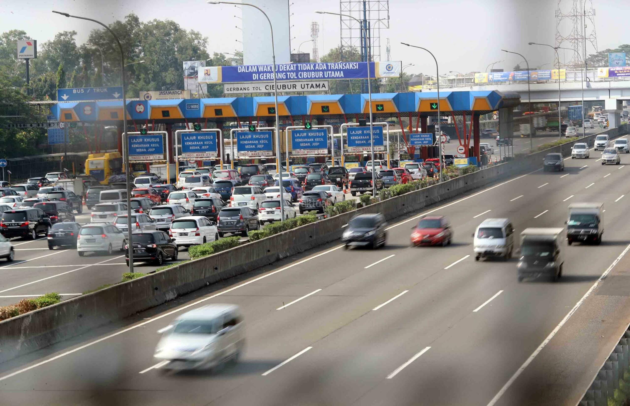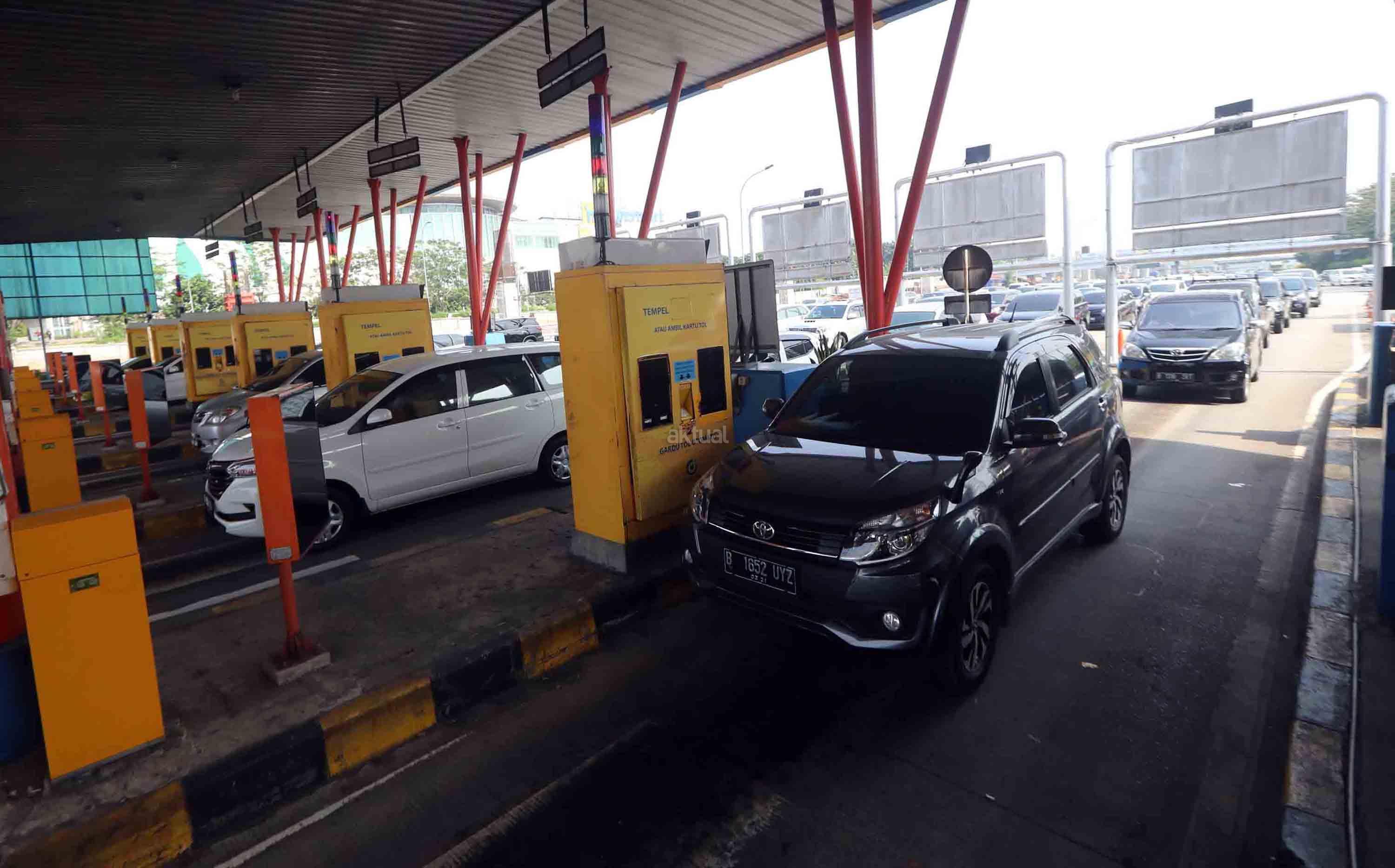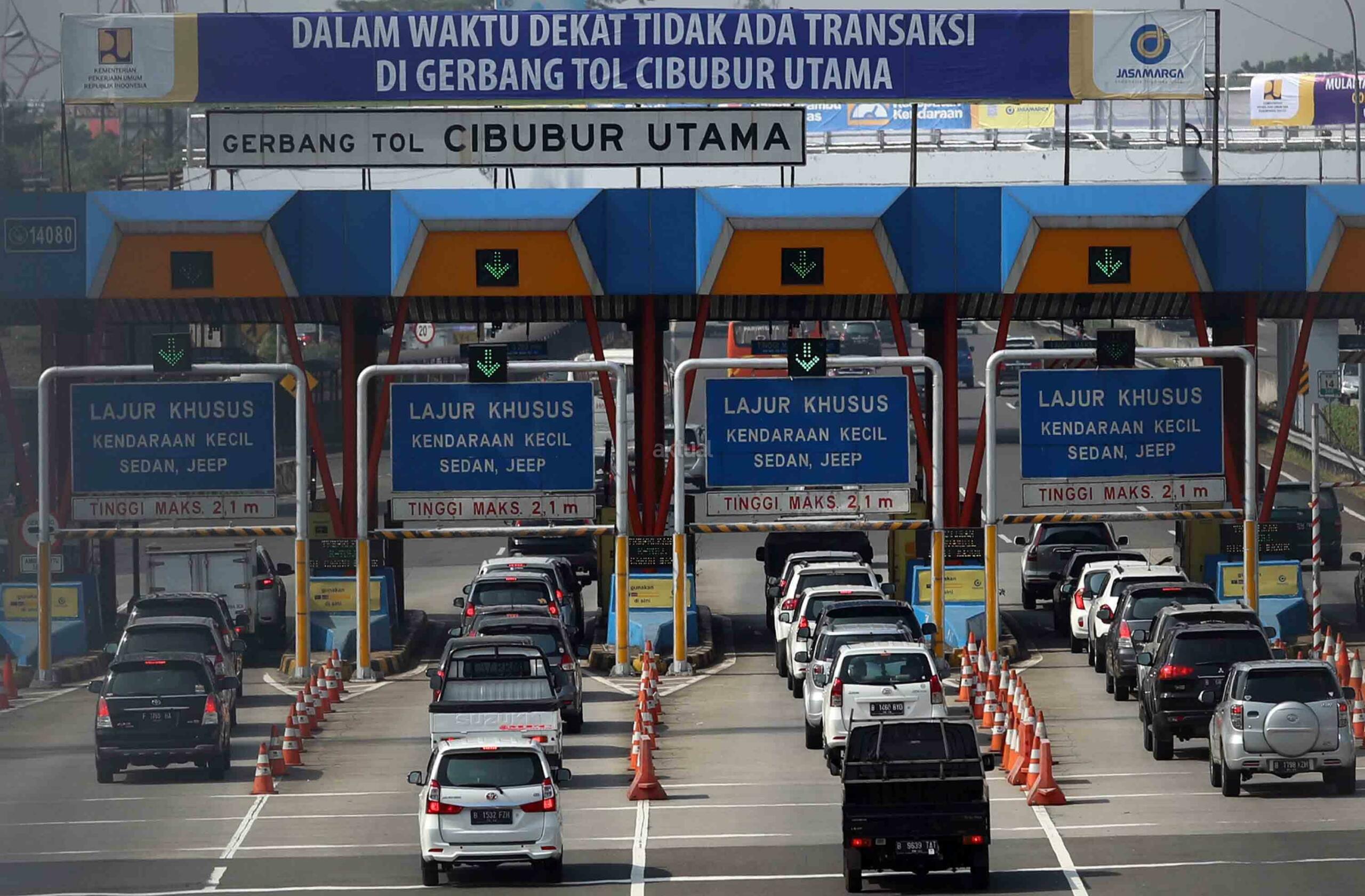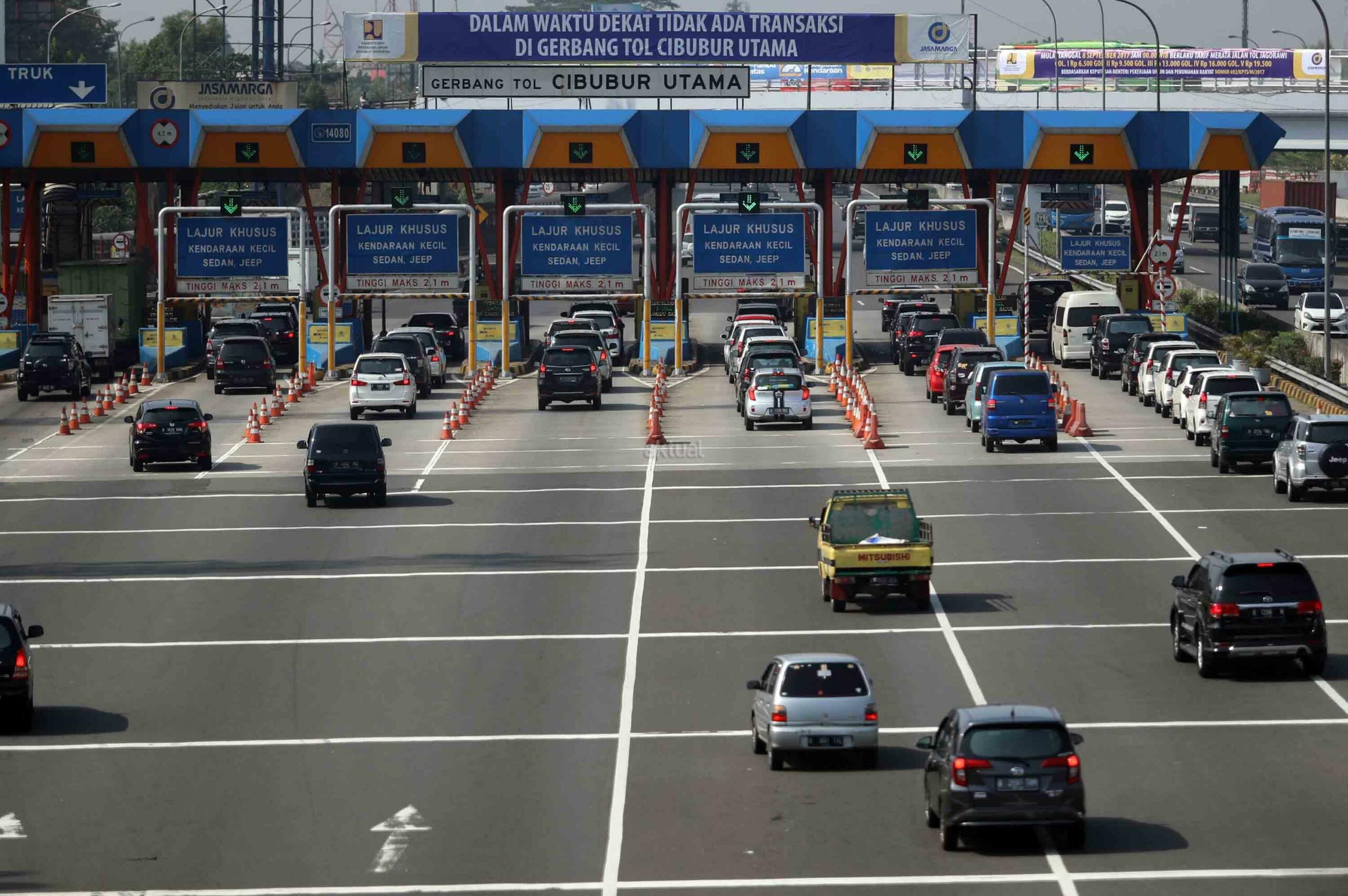 Kendaraan berjalan tersendat saat akan masuk Gerbang Tol Cibubur Utama di Jakarta, Jumat (8/9). PT Jasa Marga (Persero) memutuskan menghapus dua gerbang tol di ruas tol Jakarta-Bogor-Ciawi (Jagorawi) yaitu Gerbang Tol Cibubur Utama dan Cimanggis Utama mulai 8 September 2017 pukul 00.00 WIB. Hal ini guna mengatasi kemacetan yang kerap terjadi di ruas Jagorawi tersebut. AKTUAL/Tino Oktaviano
