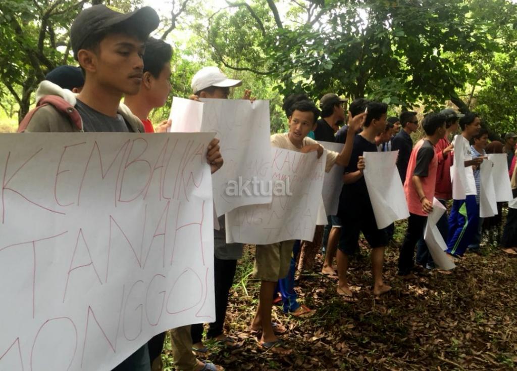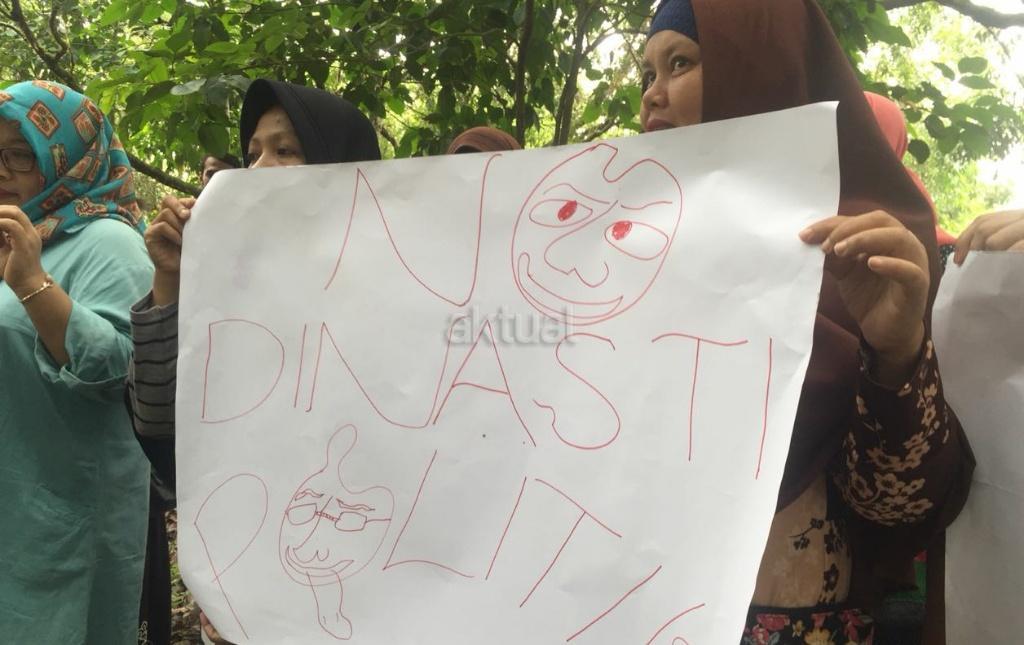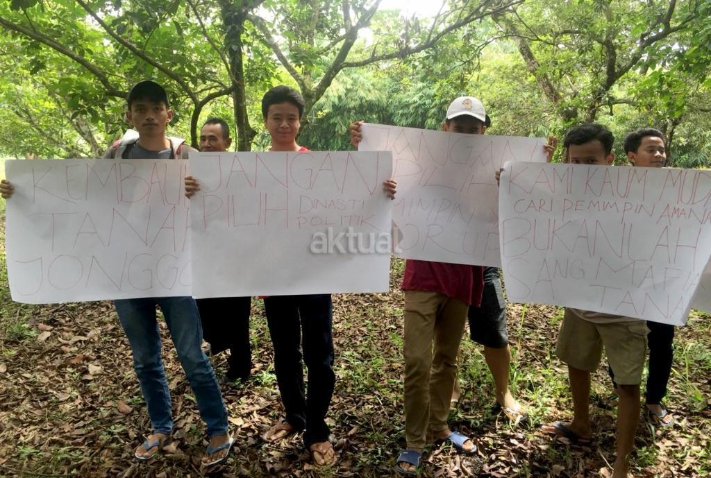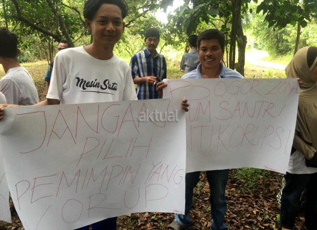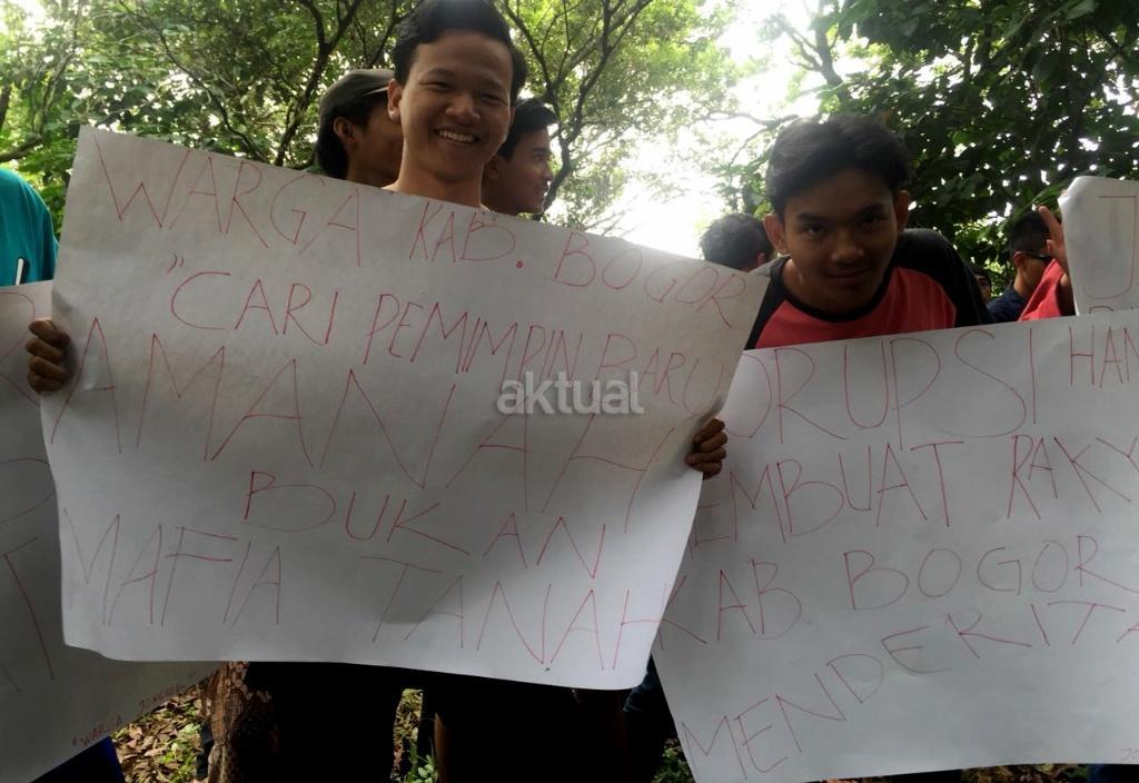 Sejumlah warga melakukan aksi tolak calon pimpinan daerah yang tersandung kasus korupsi di Jonggol, Bogor, Jawa Barat, Selasa (26/6/2018). Warga menduga calon bupati Bogor Ade Yasin terlibat korupsi lahan warga. Ade merupakan adik Rachmat Yasin yang telah divonis 5 tahun 6 bulan penjara dan denda Rp 300 juta subsidair 3 bulan bui dalam kasus alih fungsi hutan di Bogor. AKTUAL/HO