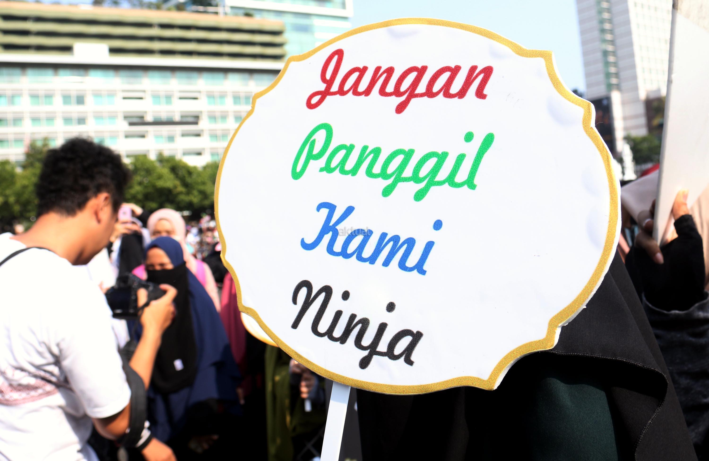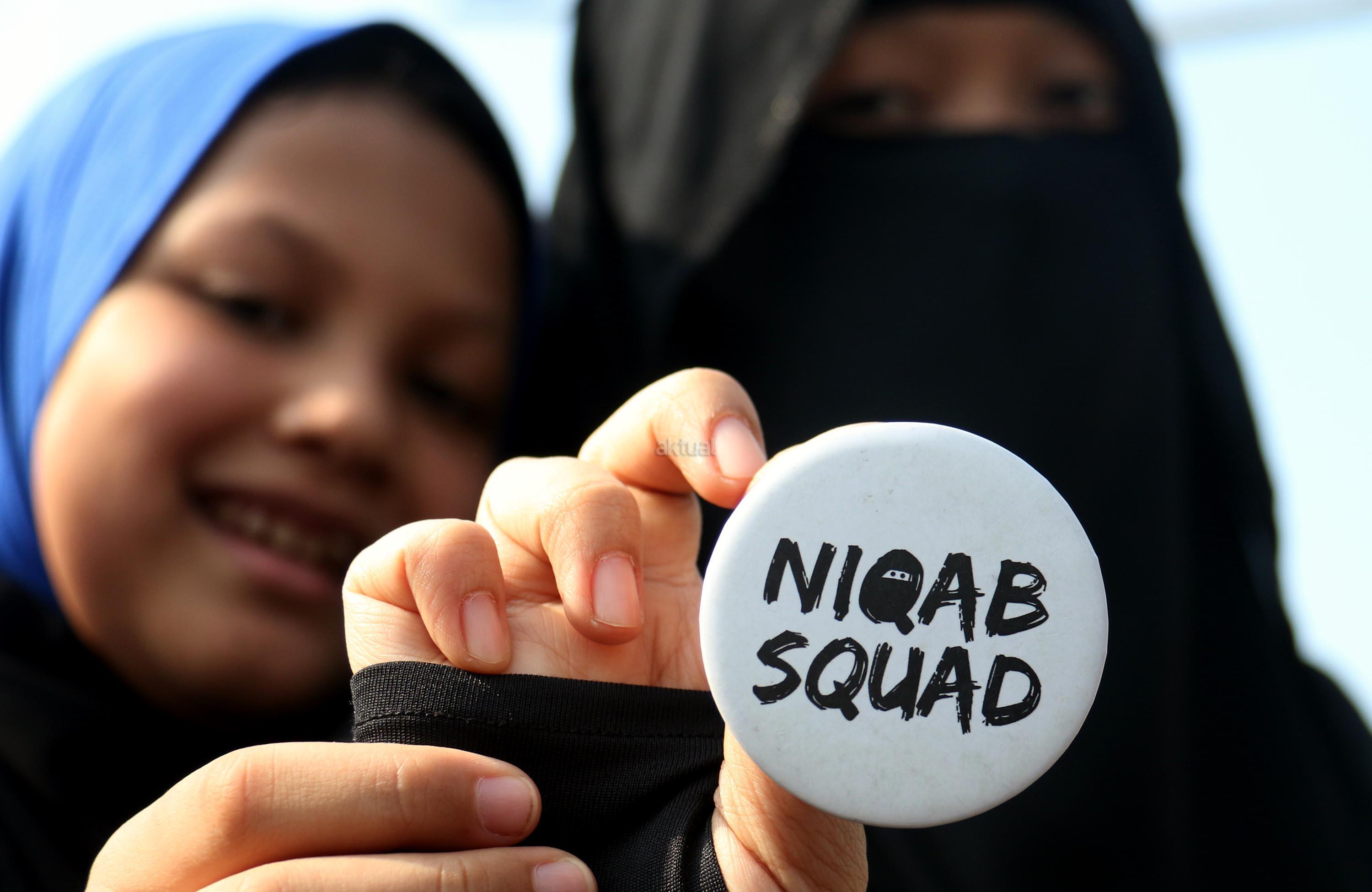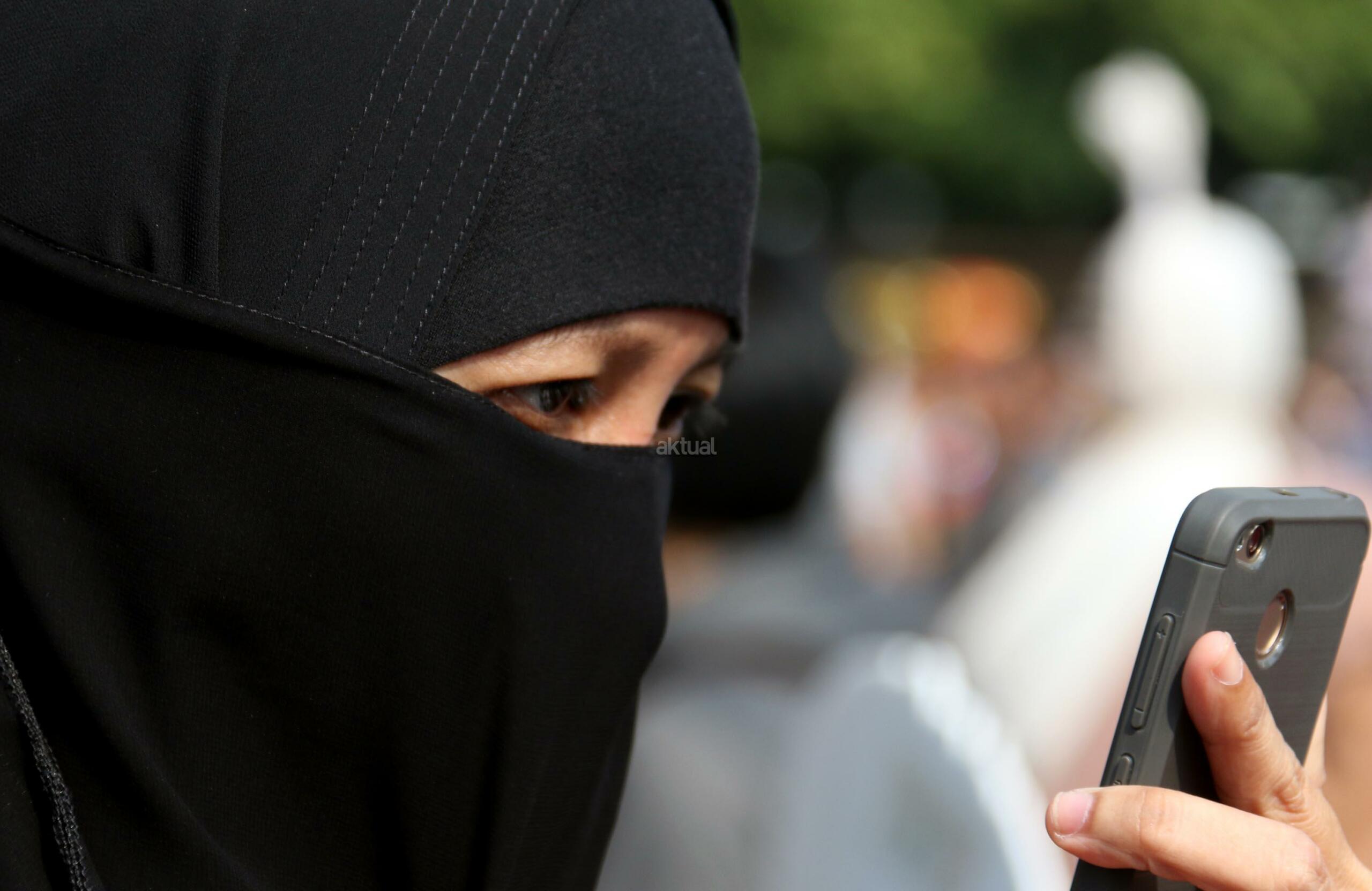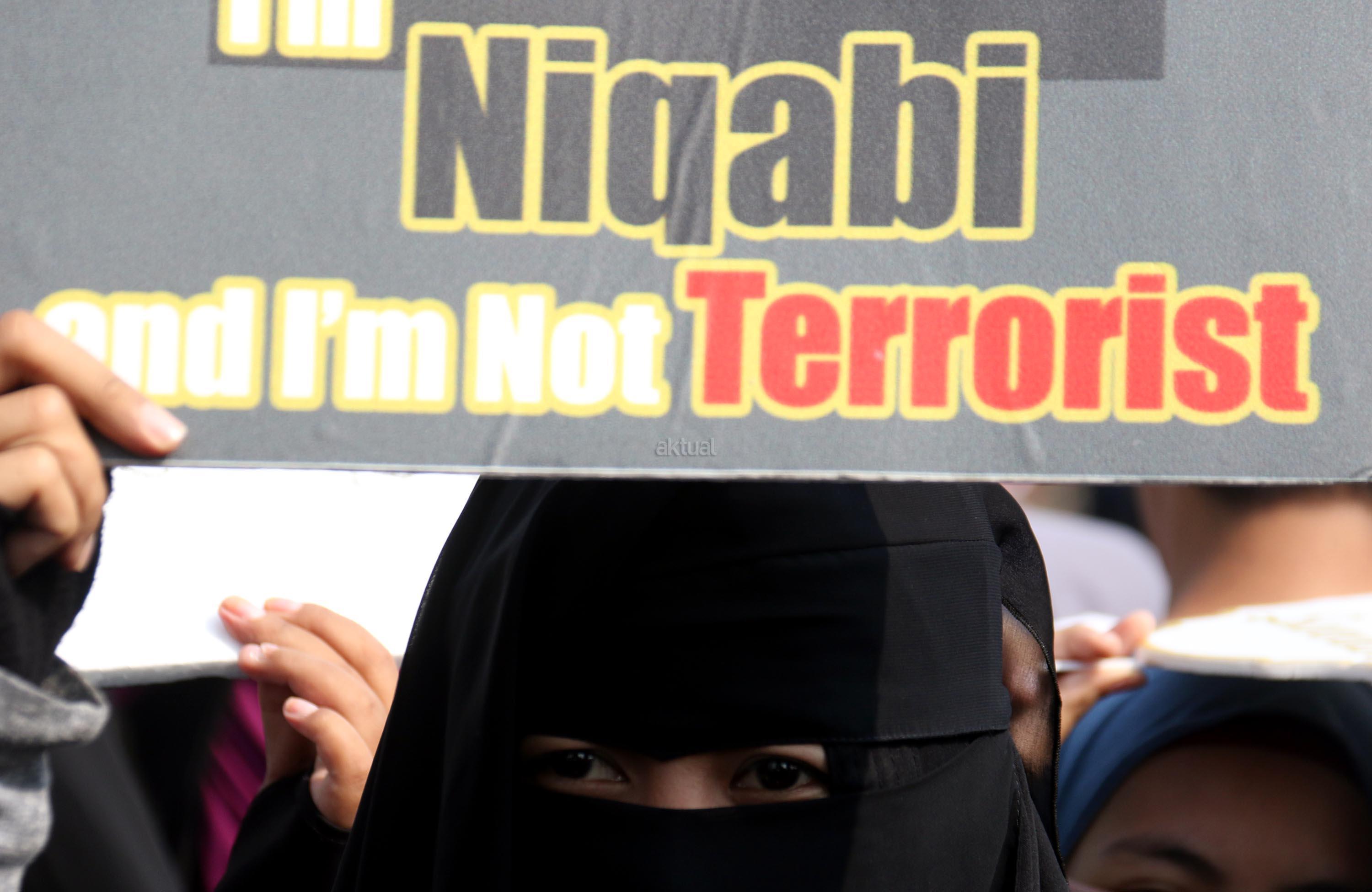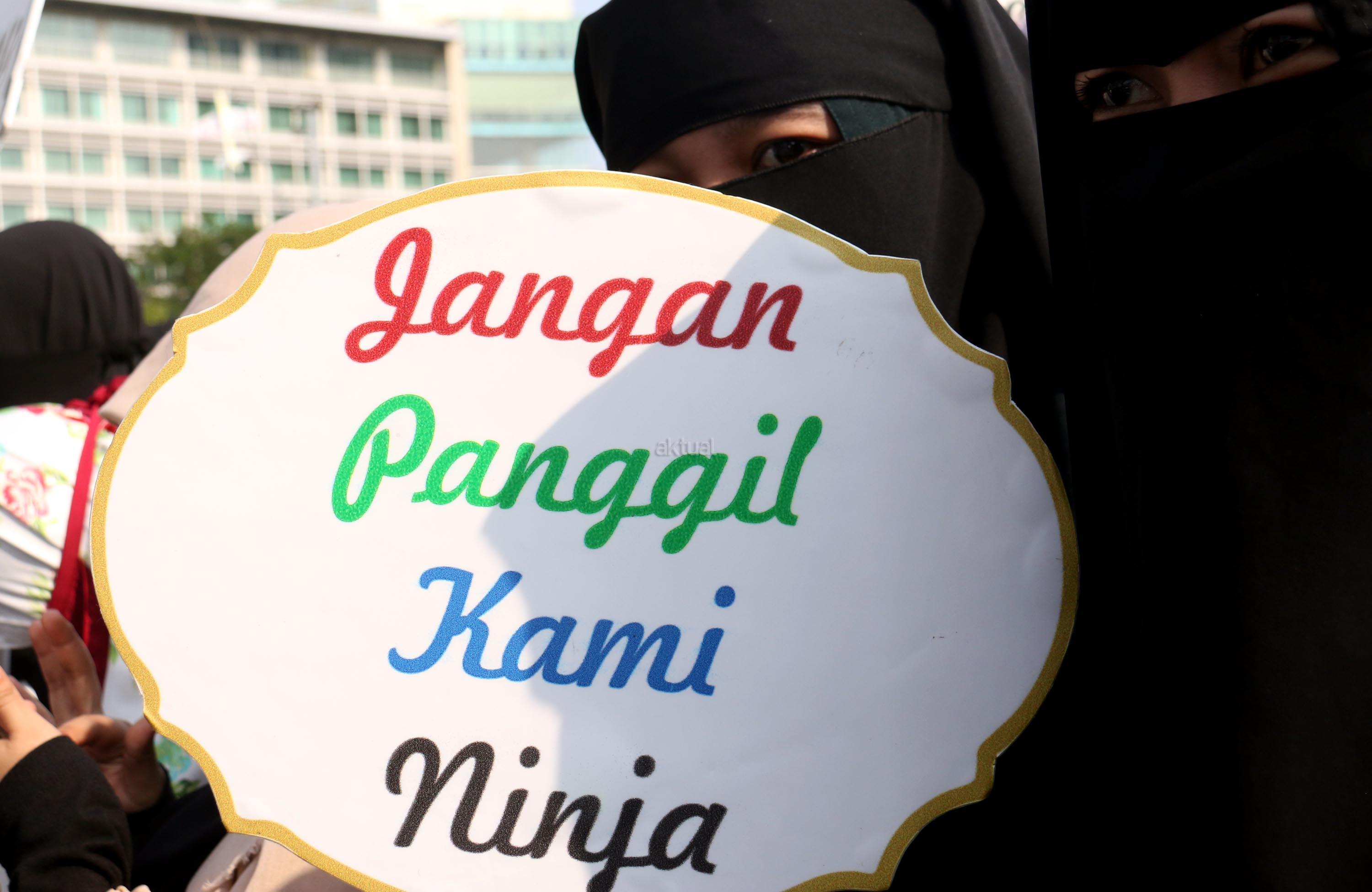 Sejumlah perempuan memakai Niqab (penutup kepala muslimah yg dilengkapi dgn cadar) saat menggelar aksi dikawasan Bundaran Hotel Indonesia, Jakarta, Minggu (10/9/2017). Mereka menolak segala bentuk diskriminasi terhadap wanita yang memakai niqab. AKTUAL/Munzir