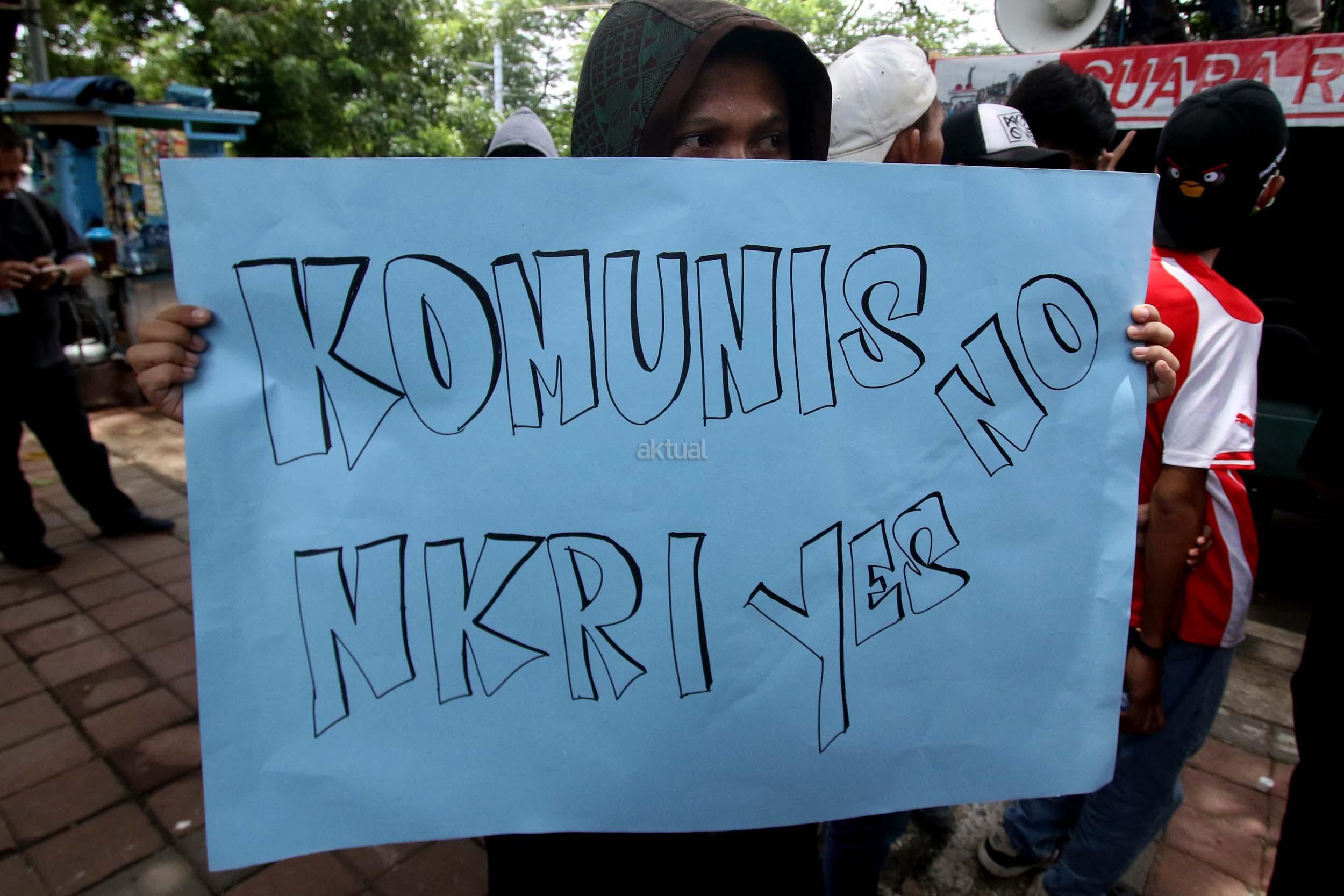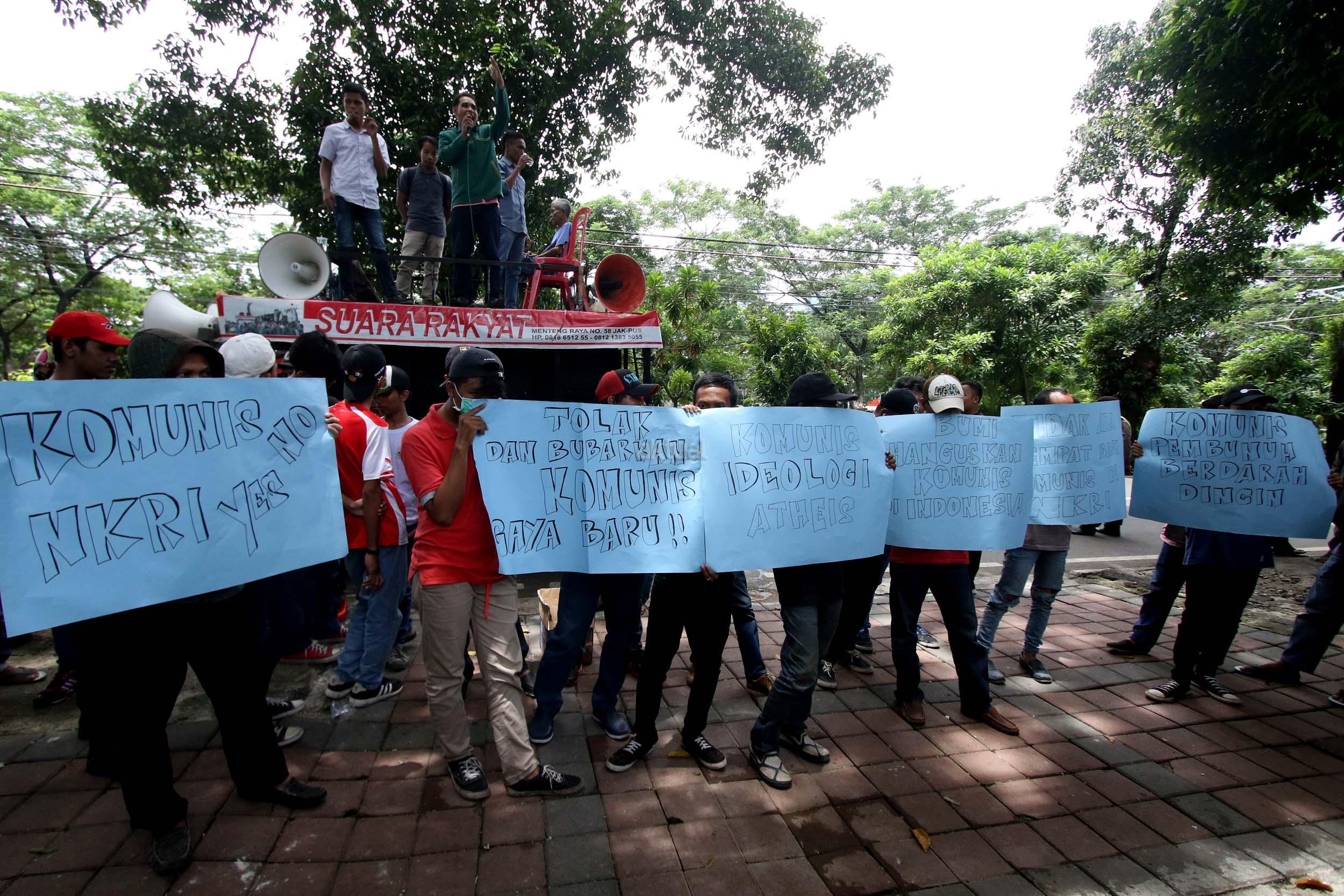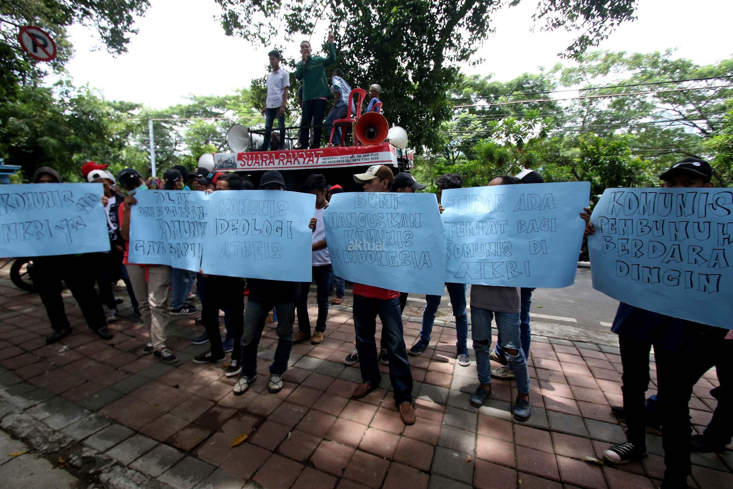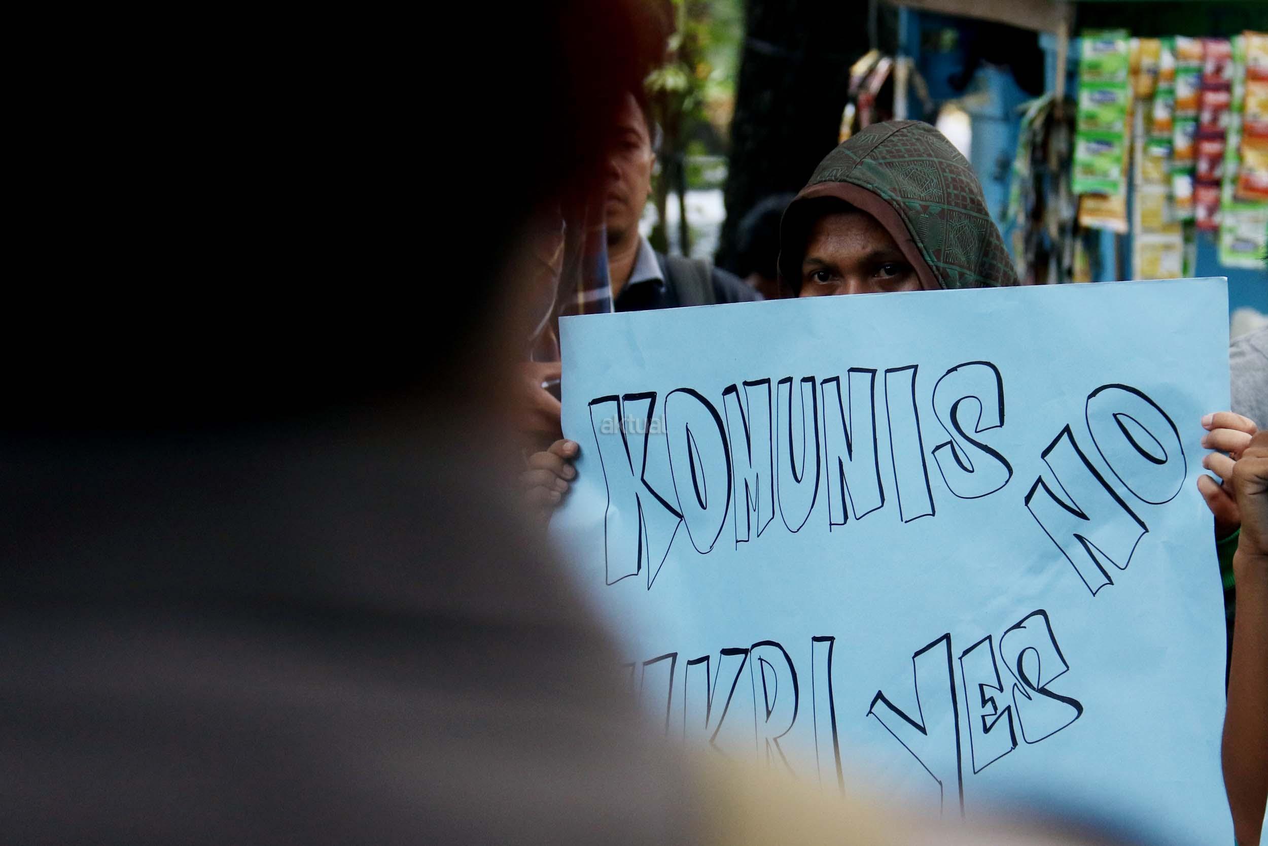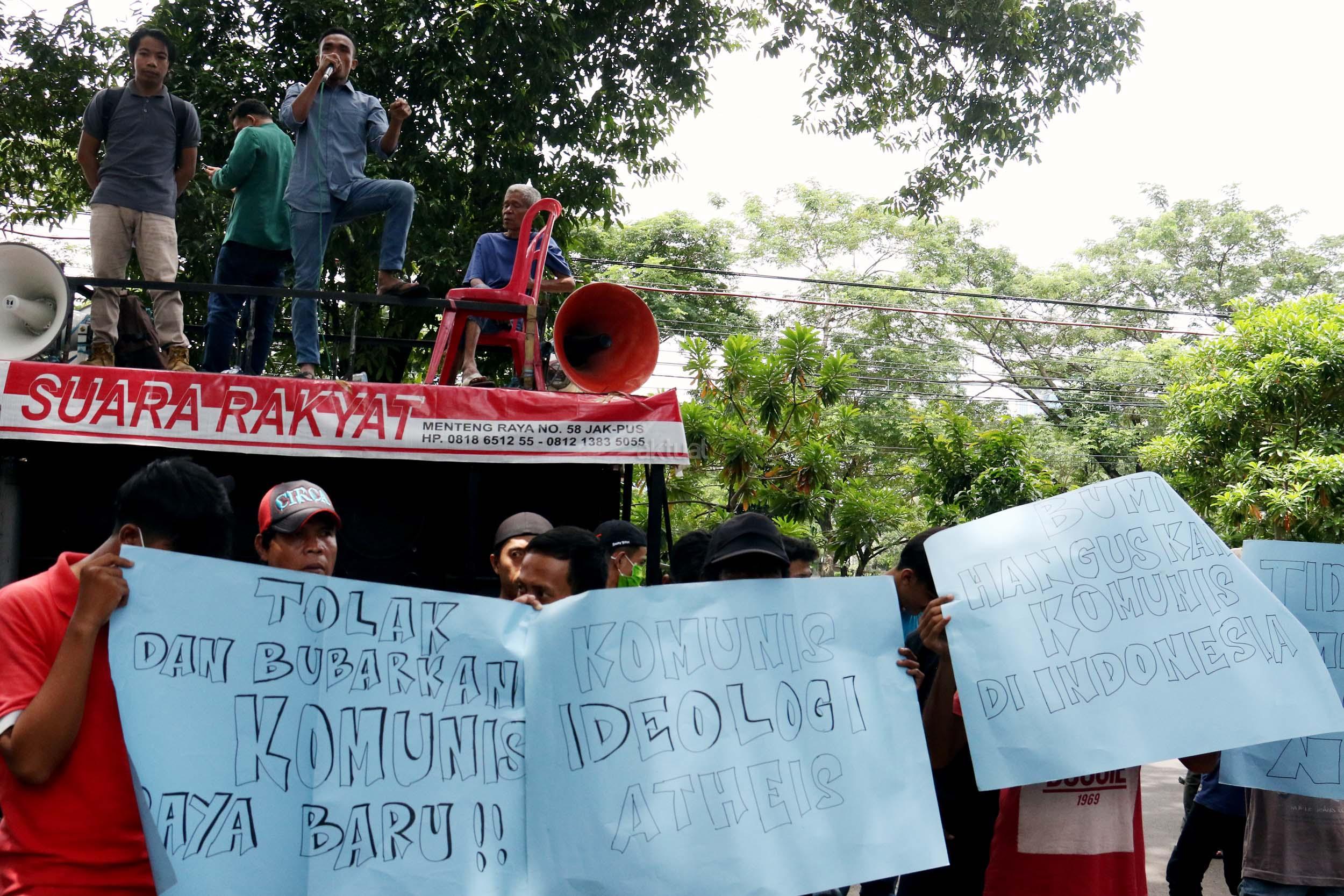 Sejumlah perwakilan dari Suara Rakyat berunjuk rasa di depan Kantor Komnas Ham, Jakarta, Minggu (19/3/2017). Mereka mendesak pemerintah untuk menolak dan membubarkan komunisme gaya baru. AKTUAL/Munzir