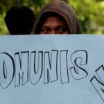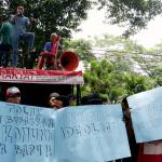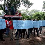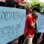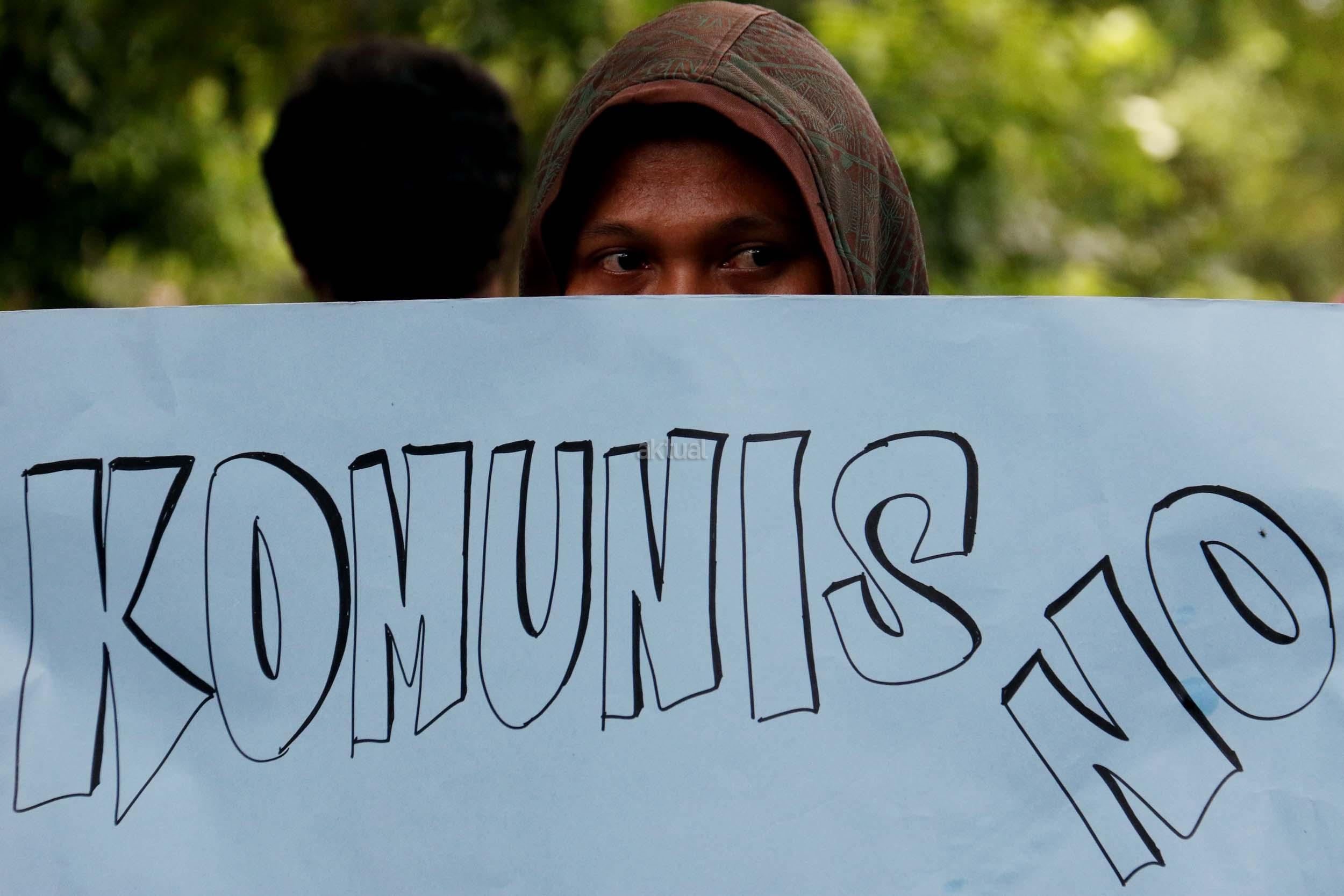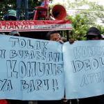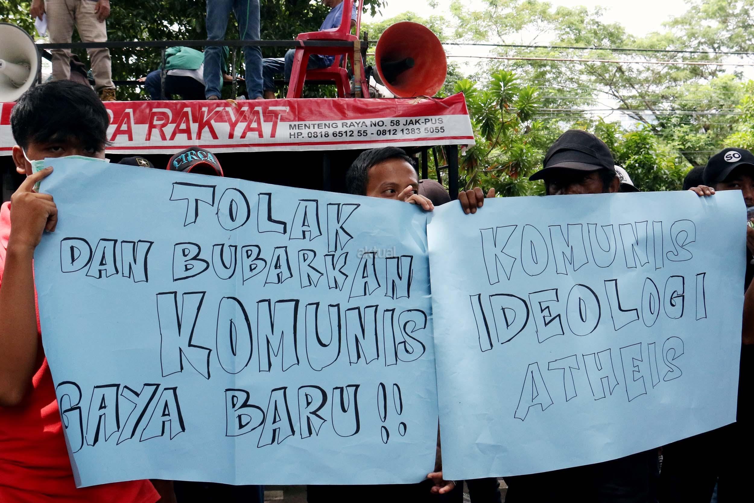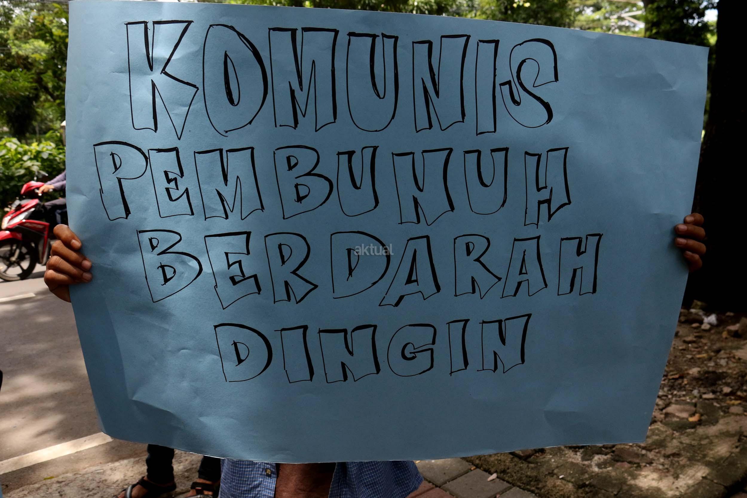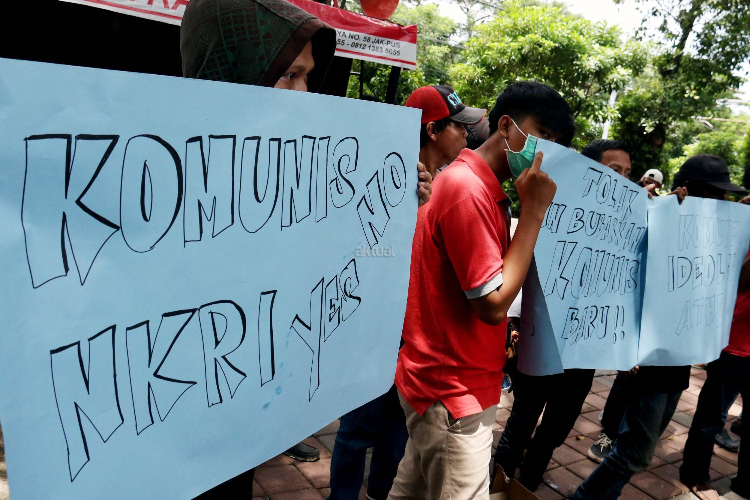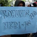 Sejumlah perwakilan dari Suara Rakyat berunjuk rasa di depan Kantor Komnas Ham, Jakarta, Minggu (19/3/2017). Mereka mendesak pemerintah untuk menolak dan membubarkan komunisme gaya baru. AKTUAL/Munzir