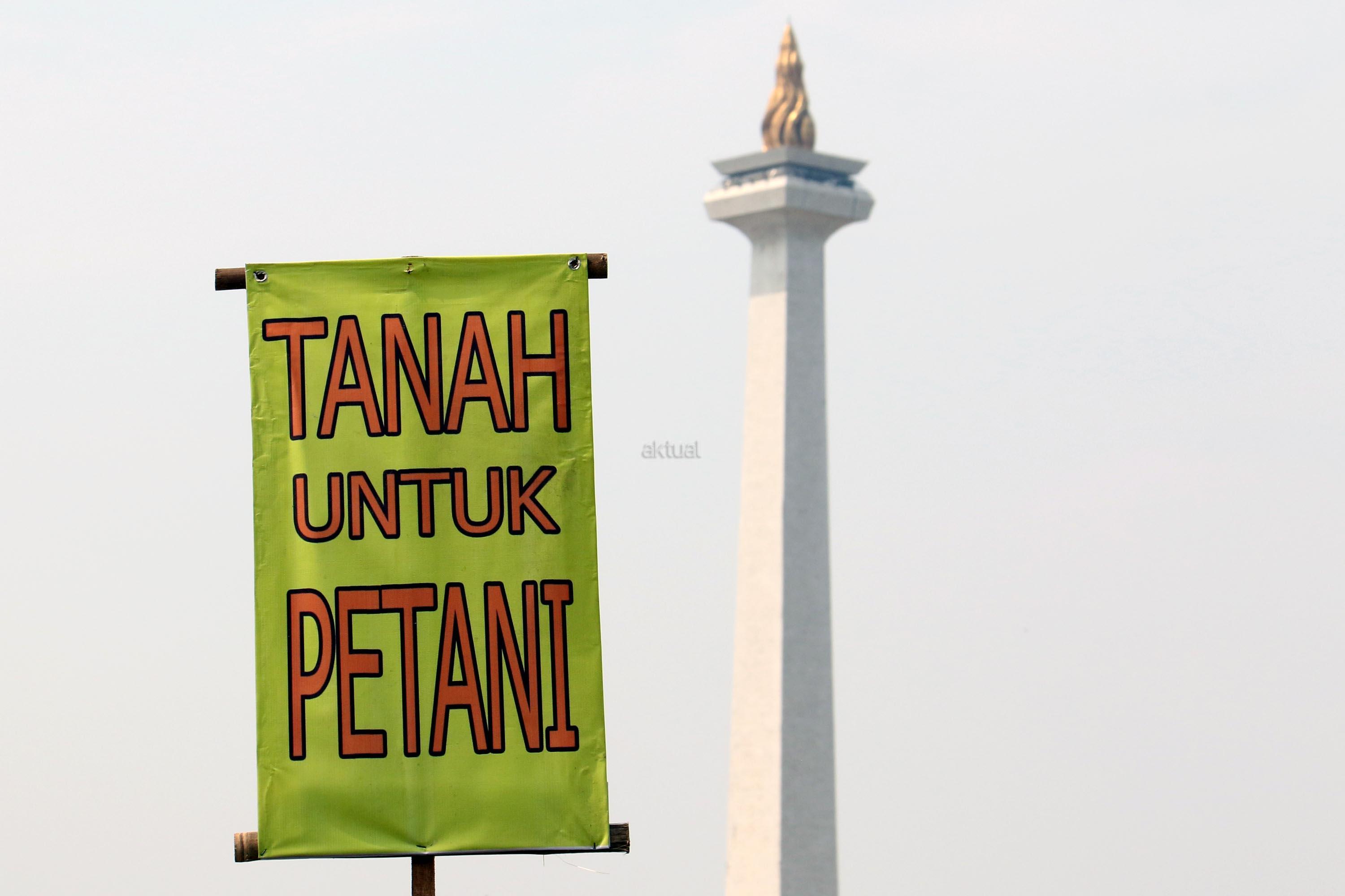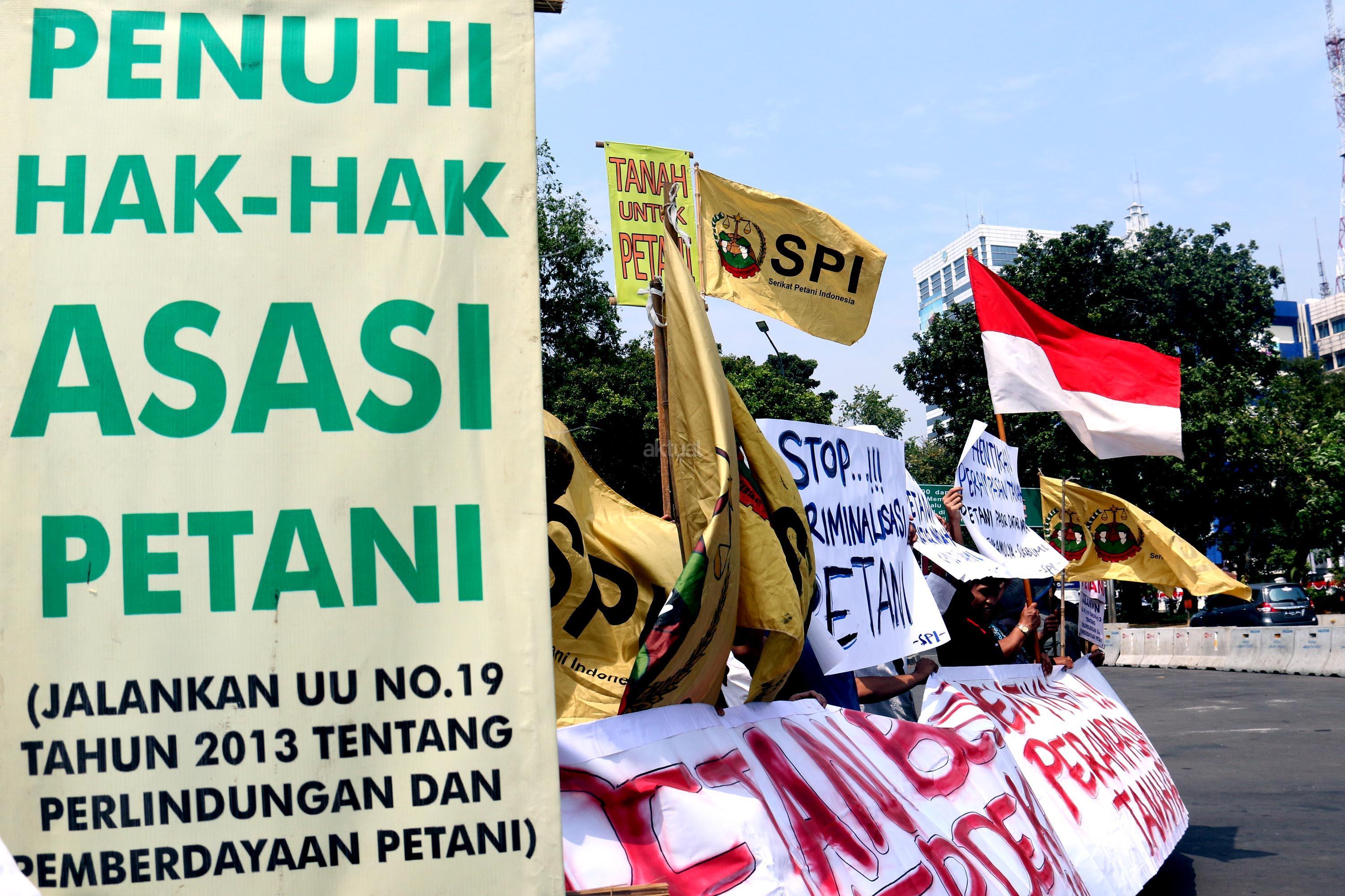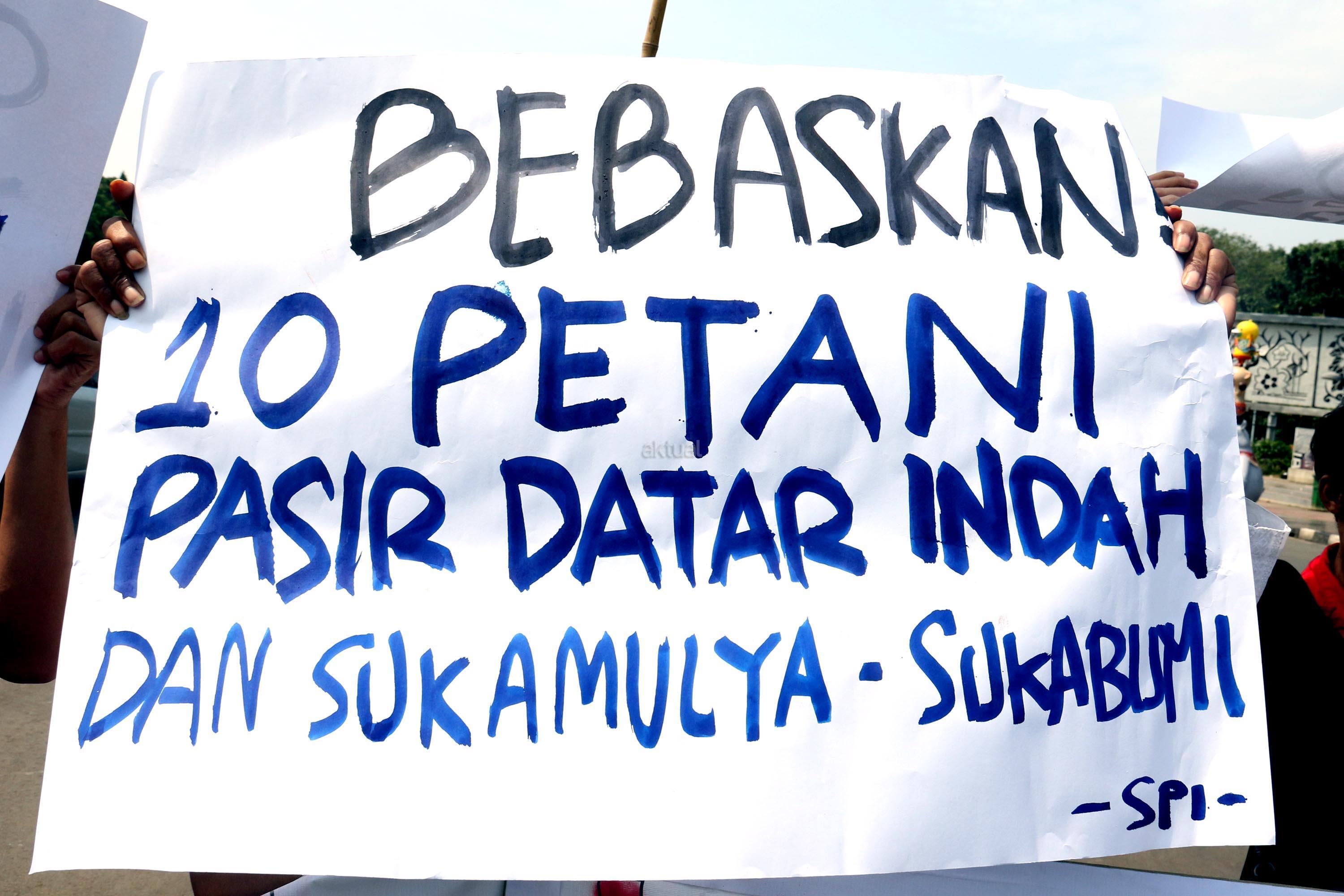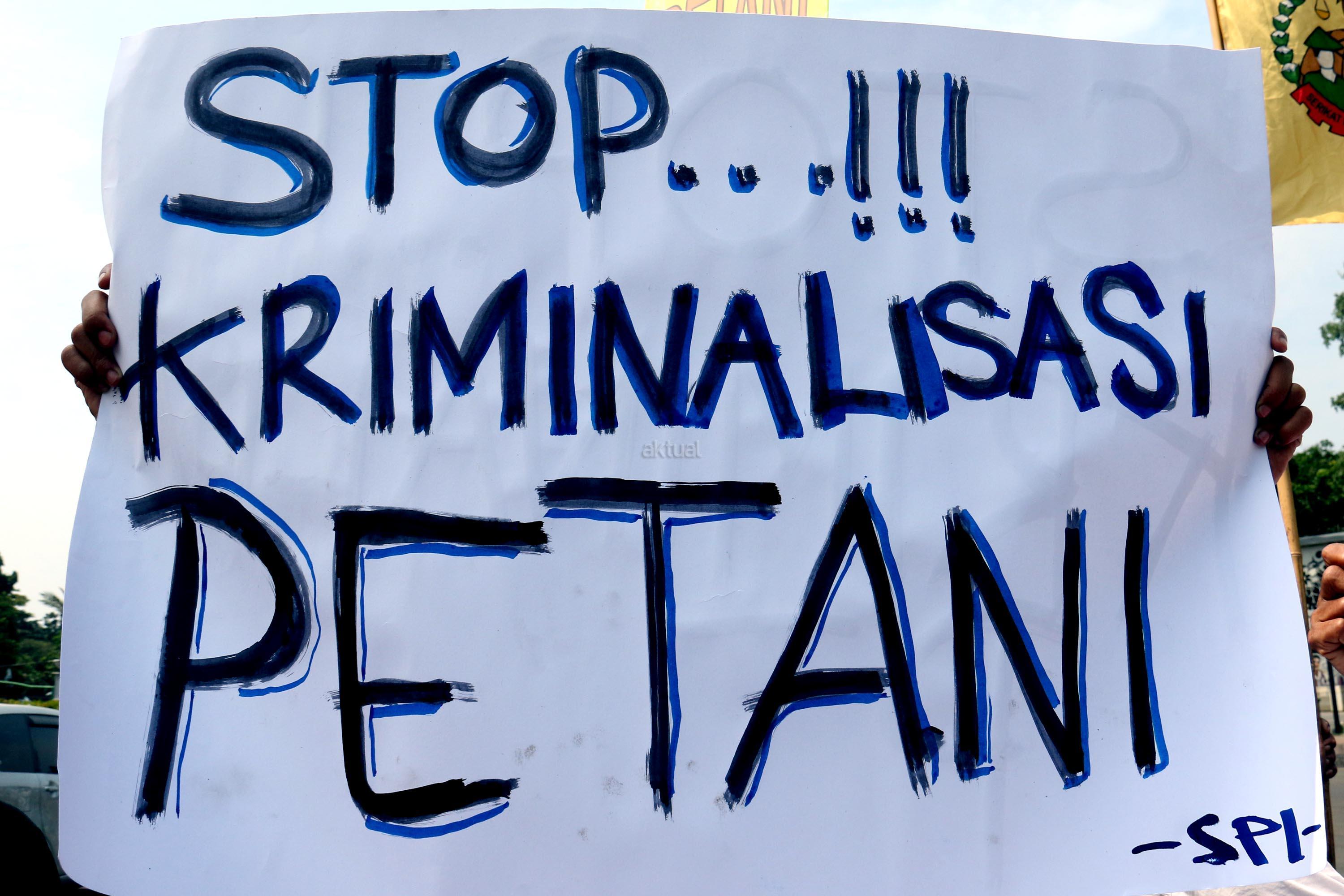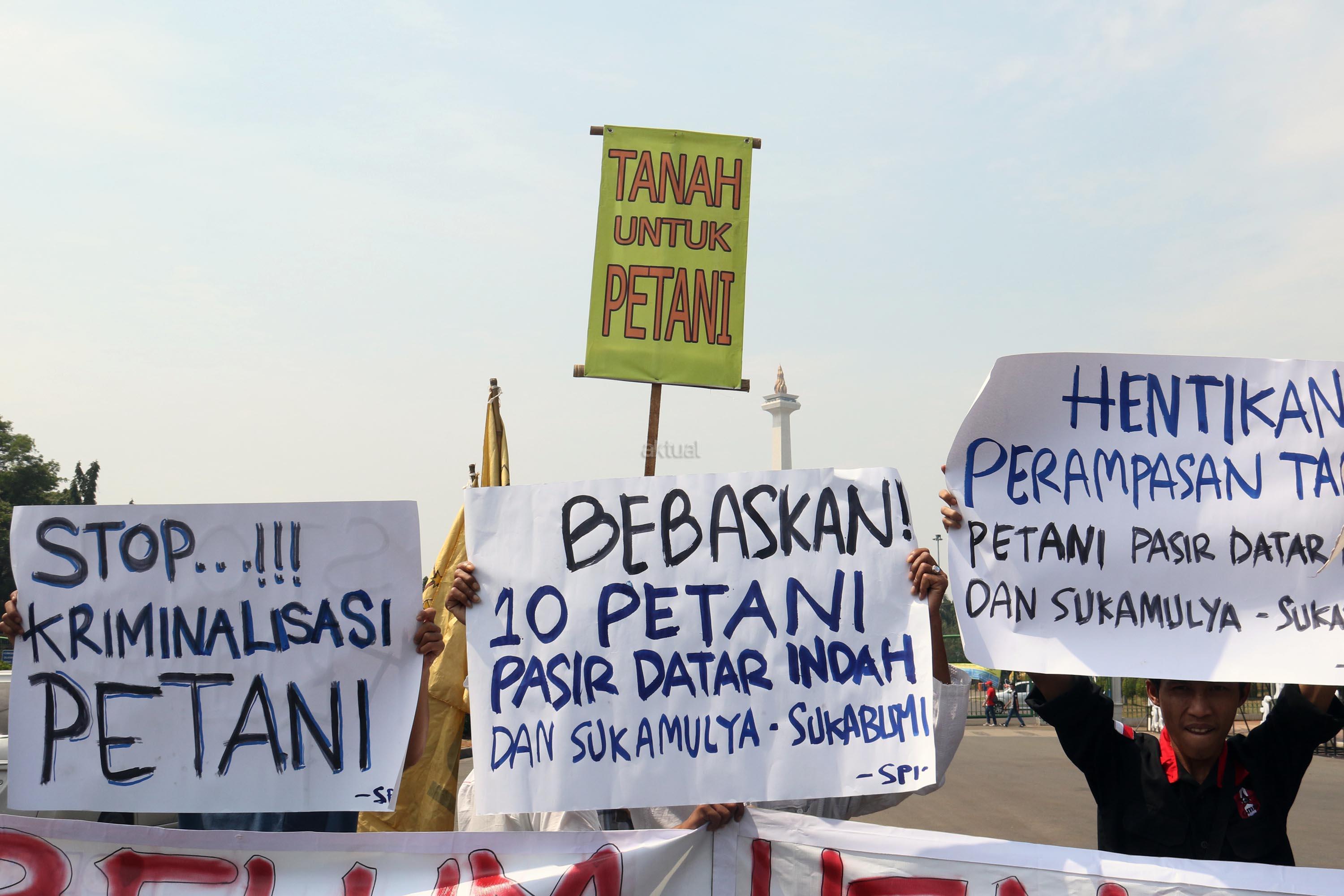 Dalam aksinya para petani mendesak kepada Pemerintaha Jokowi/JK untuk menghentikan kriminalisasi dan perampasan tanah petani yang dilakukan oleh PT. Surya Nusa Nadicipta (PT.SNN). AKTUAL/Munzir