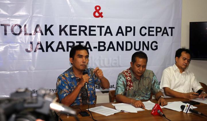 Dalam penolakan Koalisi Masyarakat Menolak Kereta Api Cepat Jakarta-Bandung mendesak dihentikannya proses pembangunan proyek ini, karena tidak sesuai dengan dan tidak ada dalam rencana tata ruang wilayah. Mereka juga meminta DPR segera memanggil pemerintah untuk menjelaskan secara rinci proyek kereta cepat ini dan membentuk panitia khusus dengan memanggil semua pihak yang terlibat.