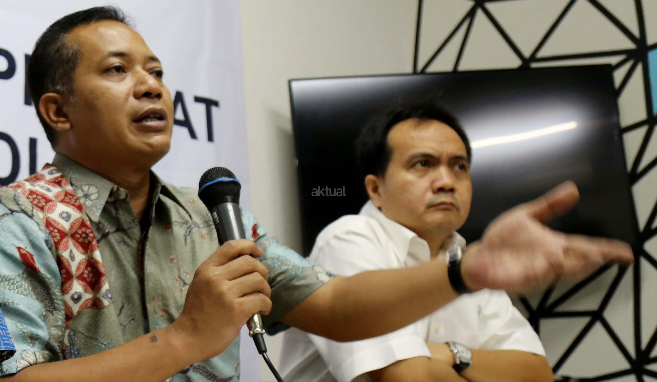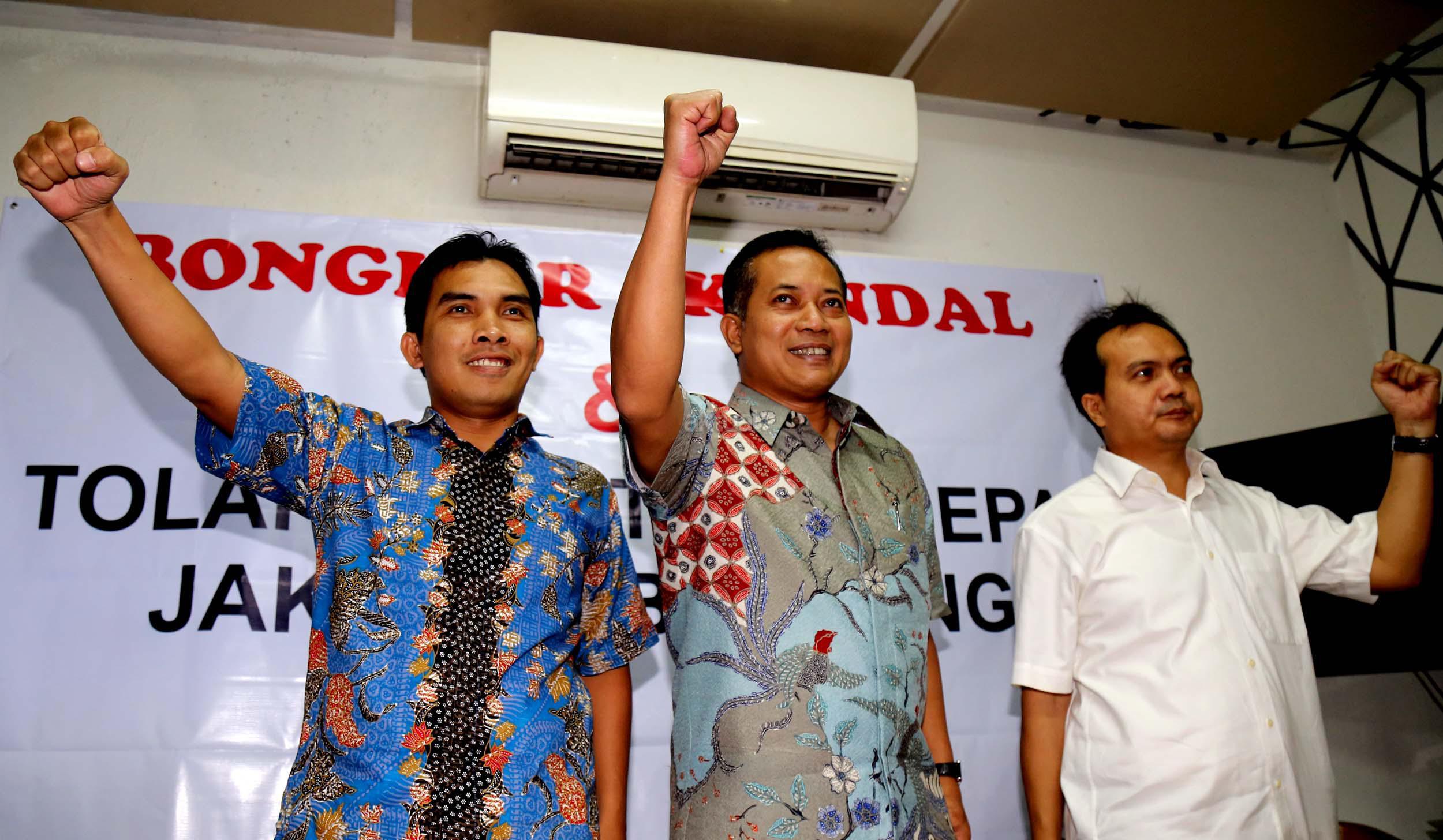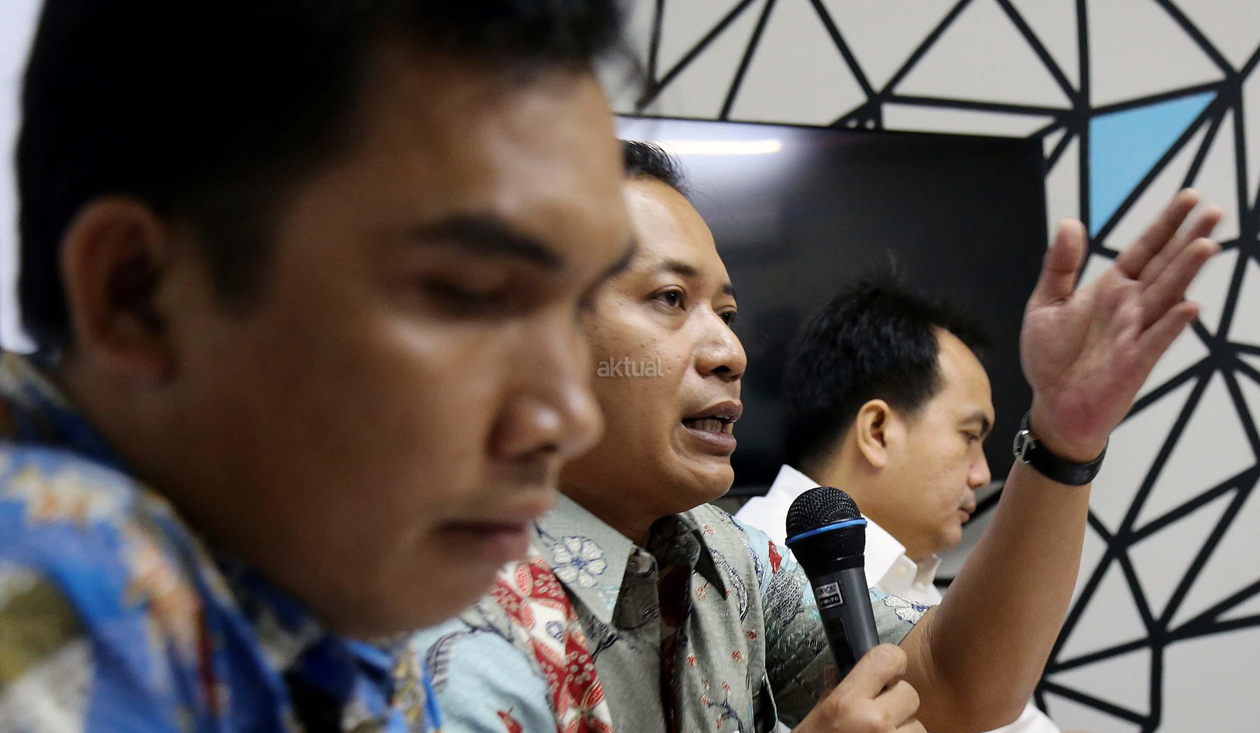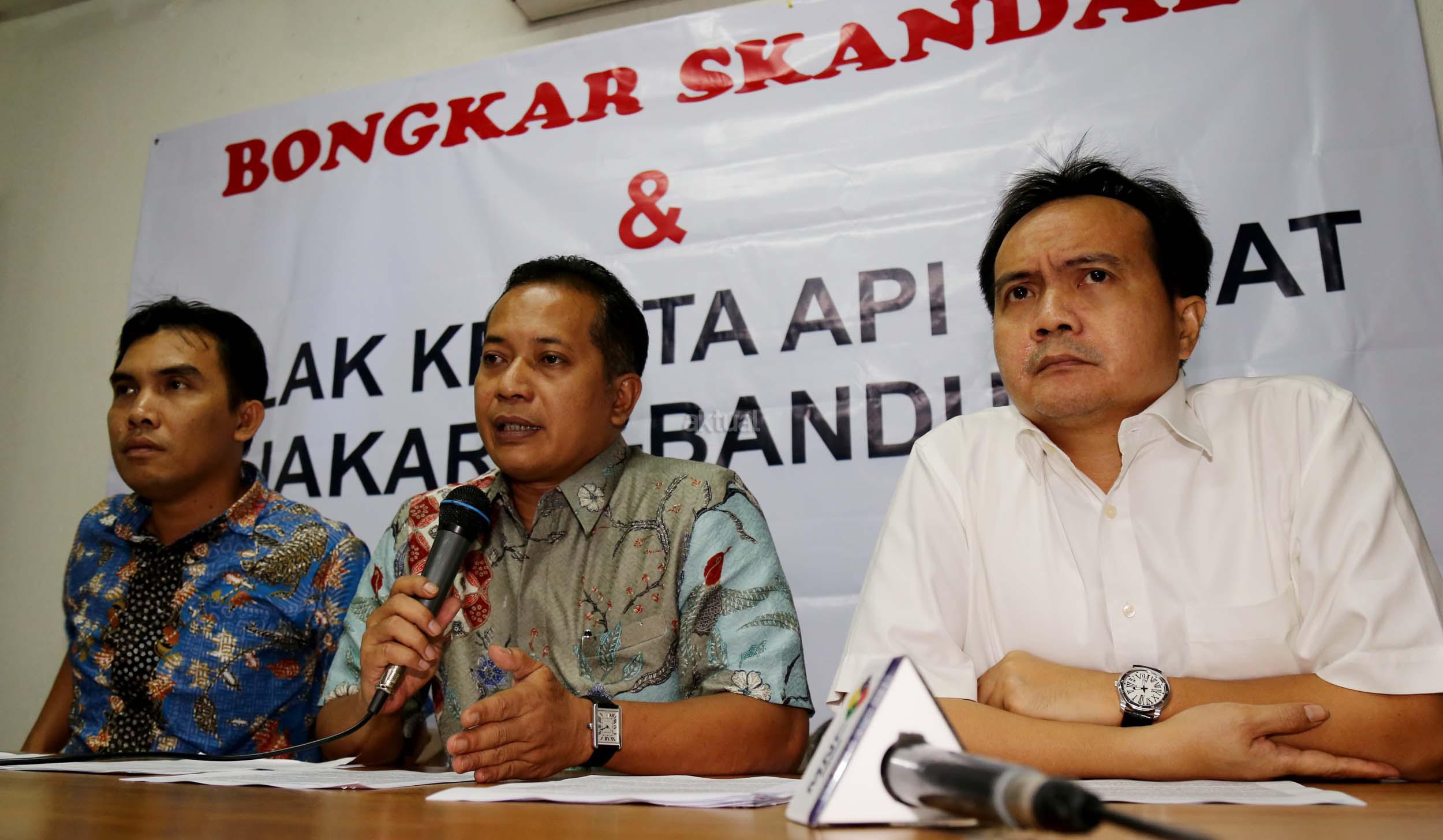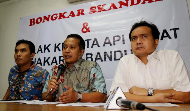 Kiri-kanan; Sekjen Konsorsium Pembaruan Agraria (KPA) Irwan Nurdin, Waketum Partai Gerindra Ferry J Juliantono, Ketua Prodem Andrianto yang tergabung dalam Koalisi Masyarakat Menolak Kereta Api Cepat Jakarta-Bandung, menyampaikan penolakan pembangunan kereta api cepat Tiongkok Jakarta-Bandung saat jumpa persnya di Jakarta, Rabu (10/2/2016). Dalam penolakan Koalisi Masyarakat Menolak Kereta Api Cepat Jakarta-Bandung mendesak dihentikannya proses pembangunan proyek ini, karena tidak sesuai dengan dan tidak ada dalam rencana tata ruang wilayah. Mereka juga meminta DPR segera memanggil pemerintah untuk menjelaskan secara rinci proyek kereta cepat ini dan membentuk panitia khusus dengan memanggil semua pihak yang terlibat.