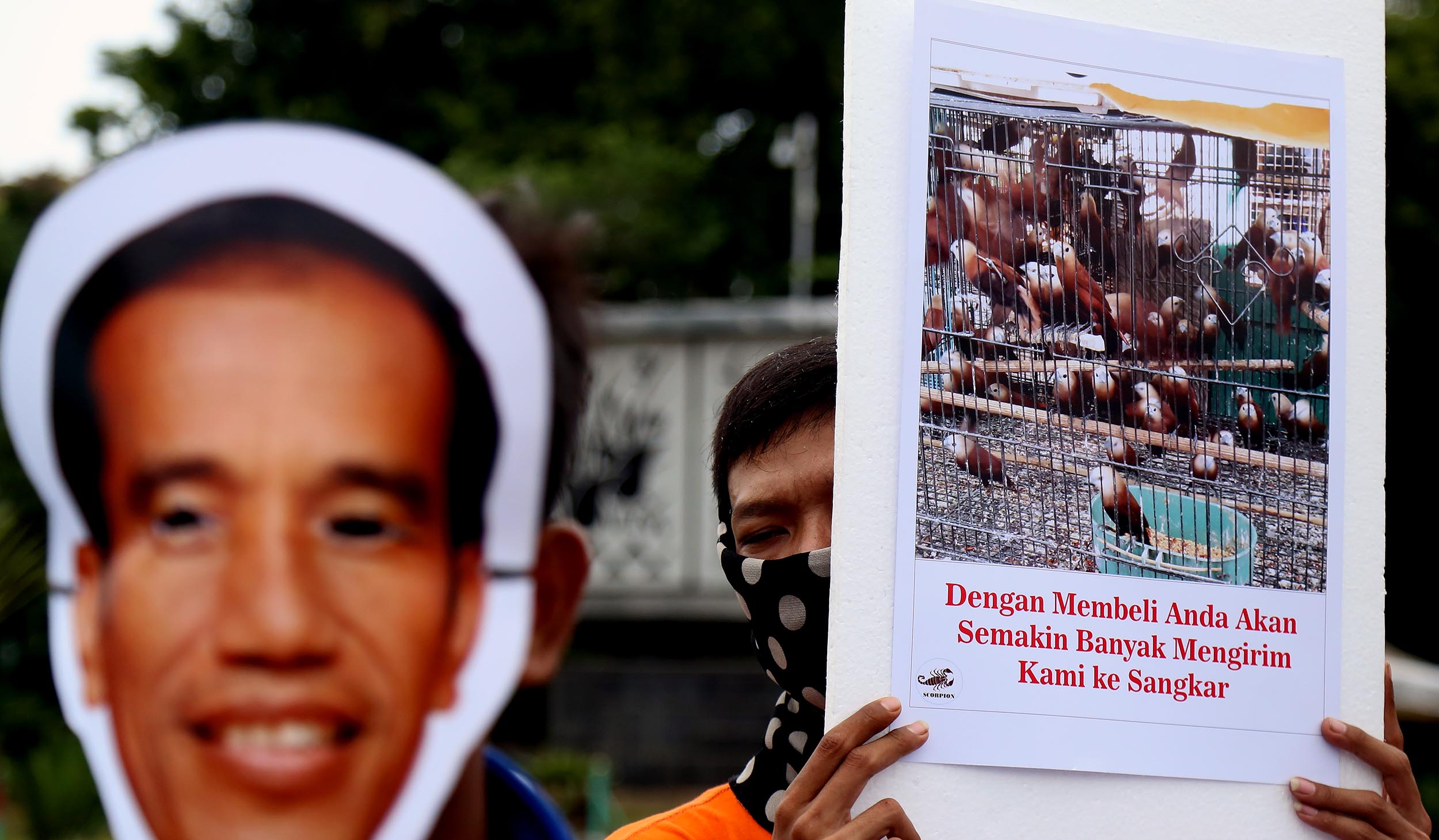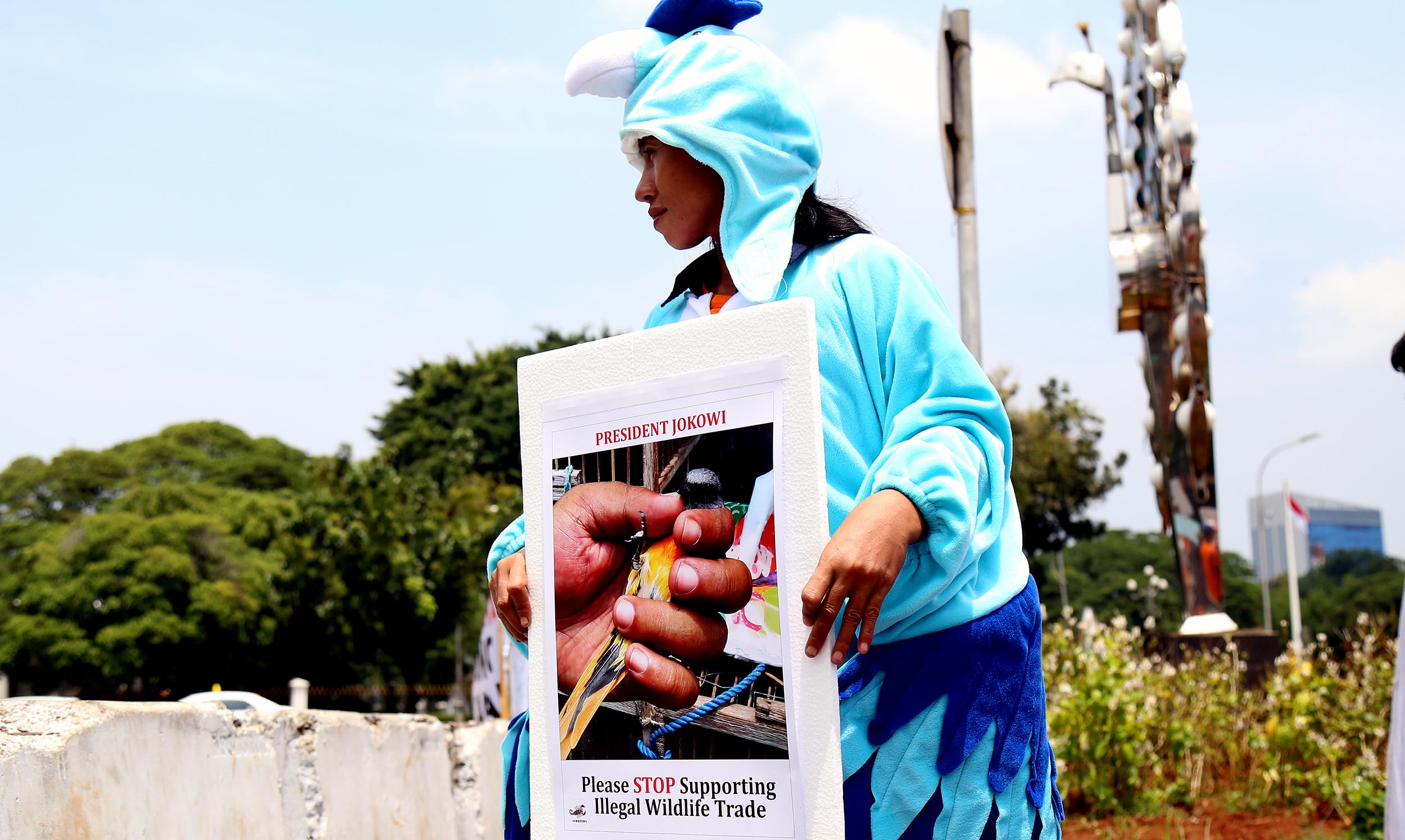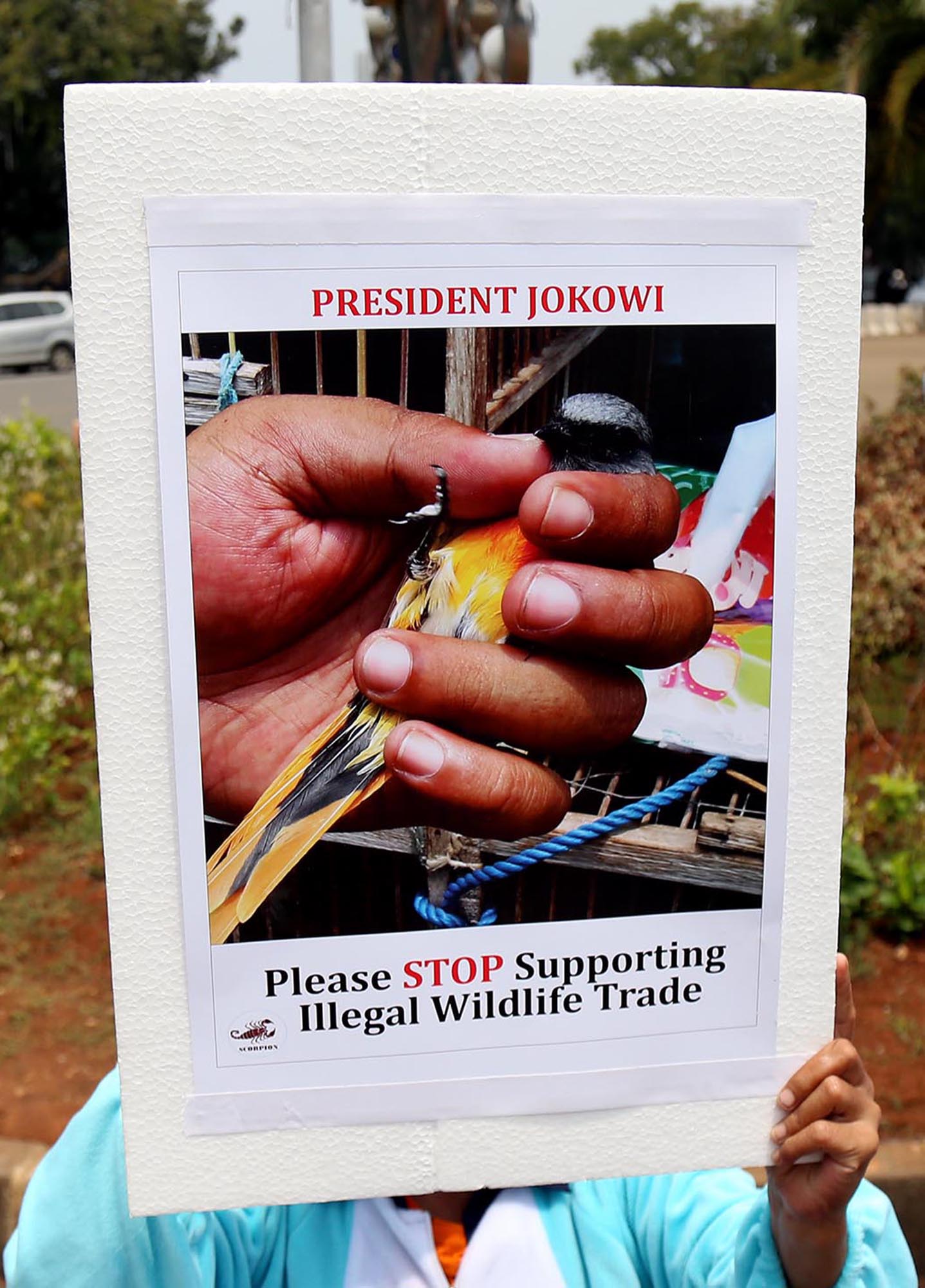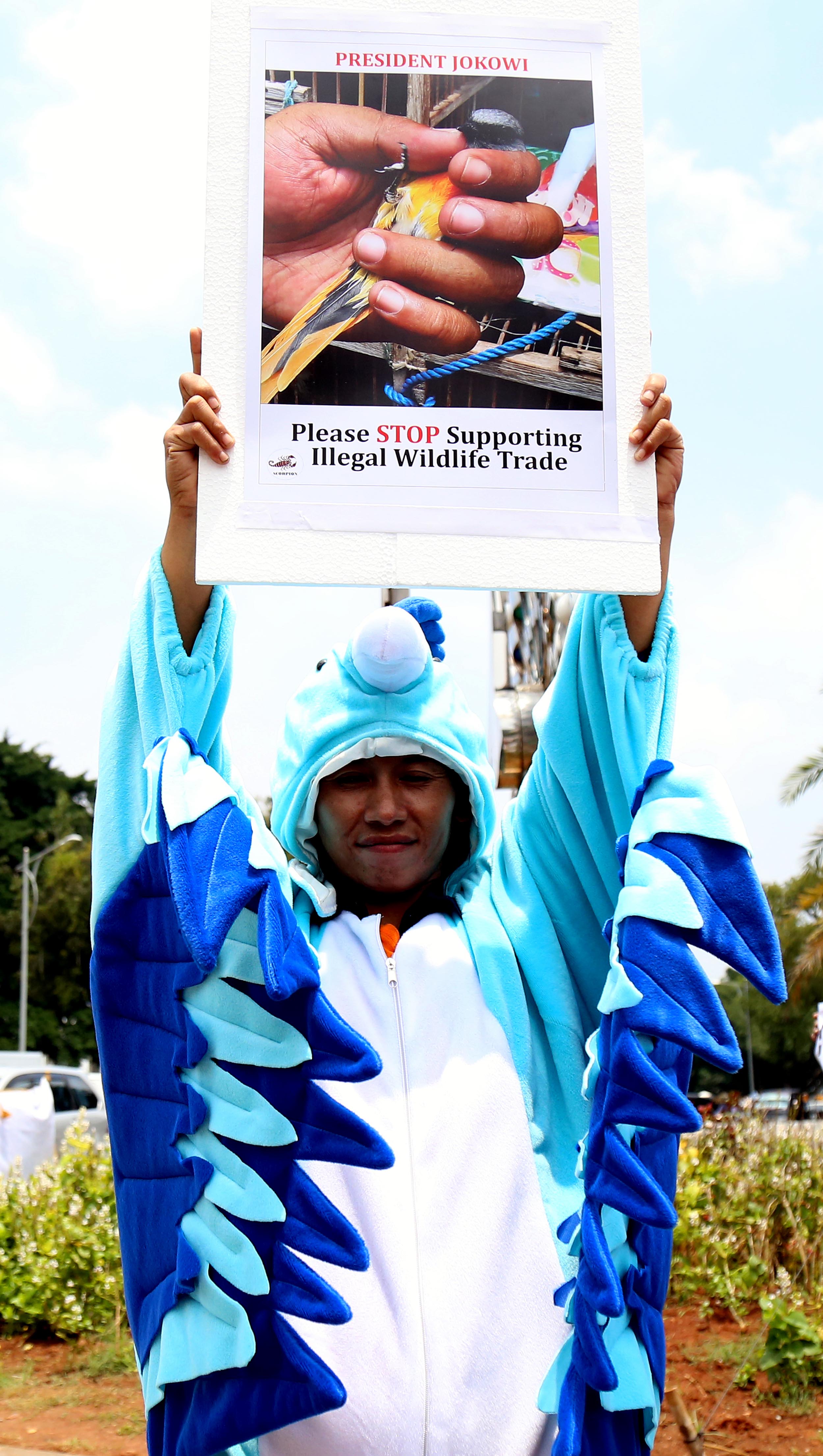Dalam aksinya Yayasan Scorpion Indonesia mendesak Presiden Jokowi untuk tidak membeli burung ilegal yang dijual dipasar gelap.