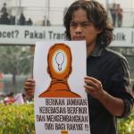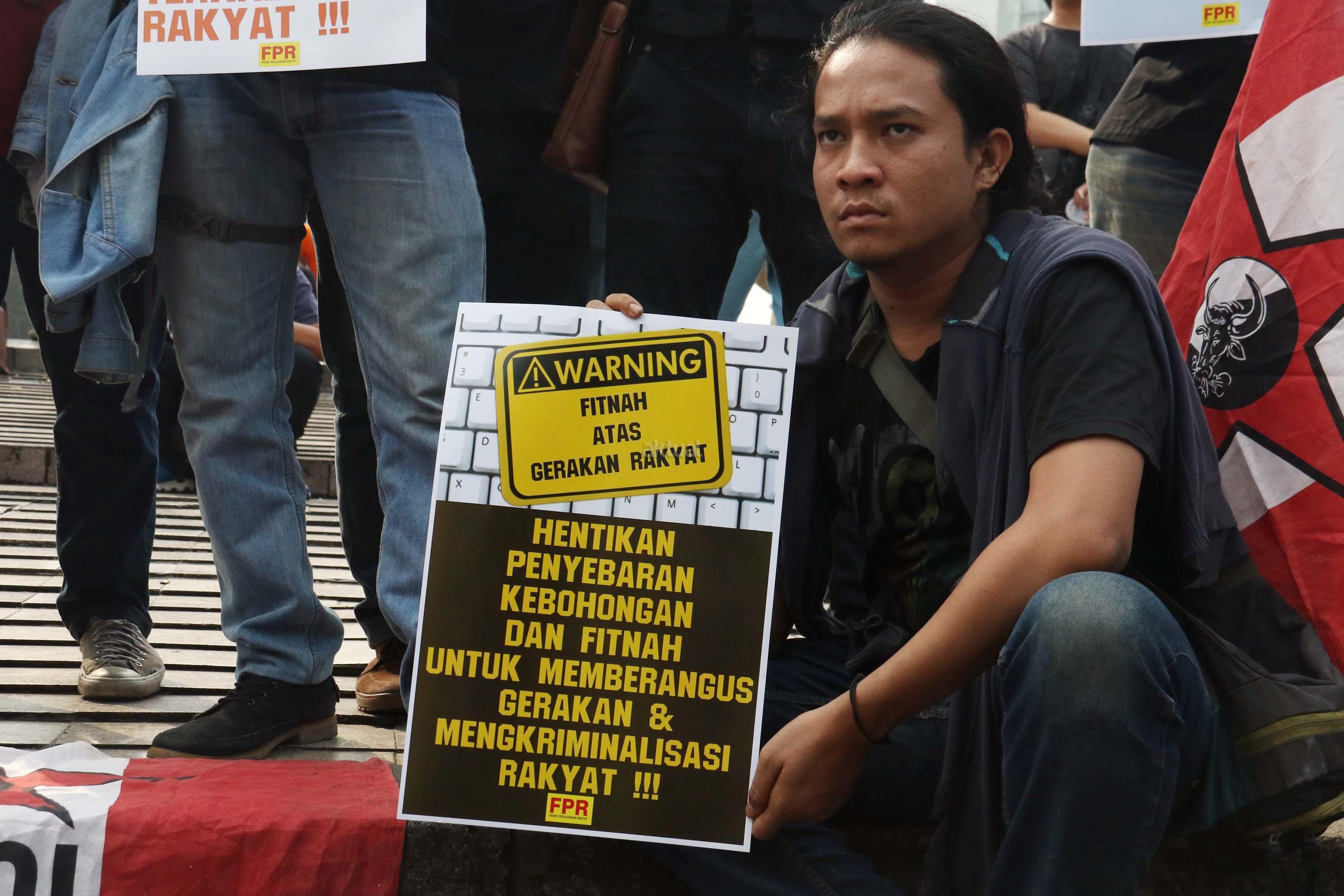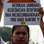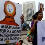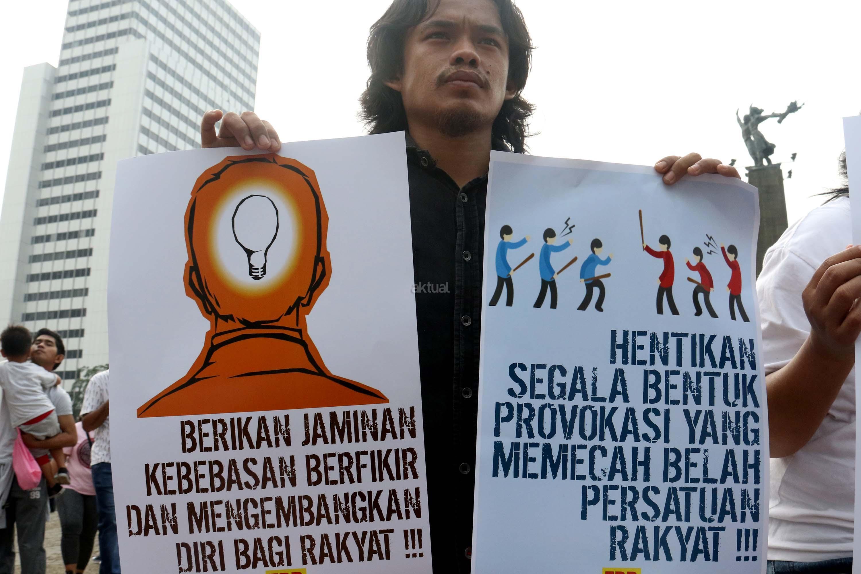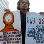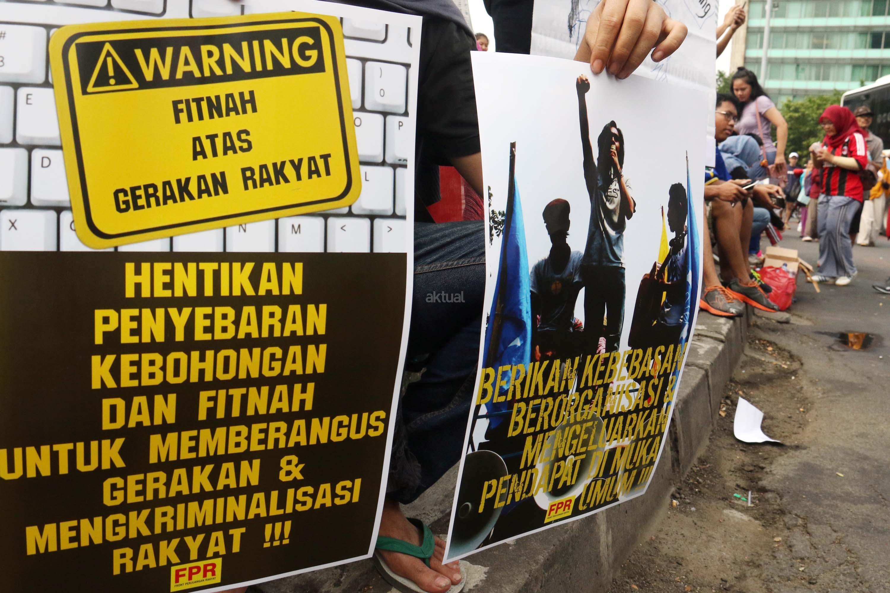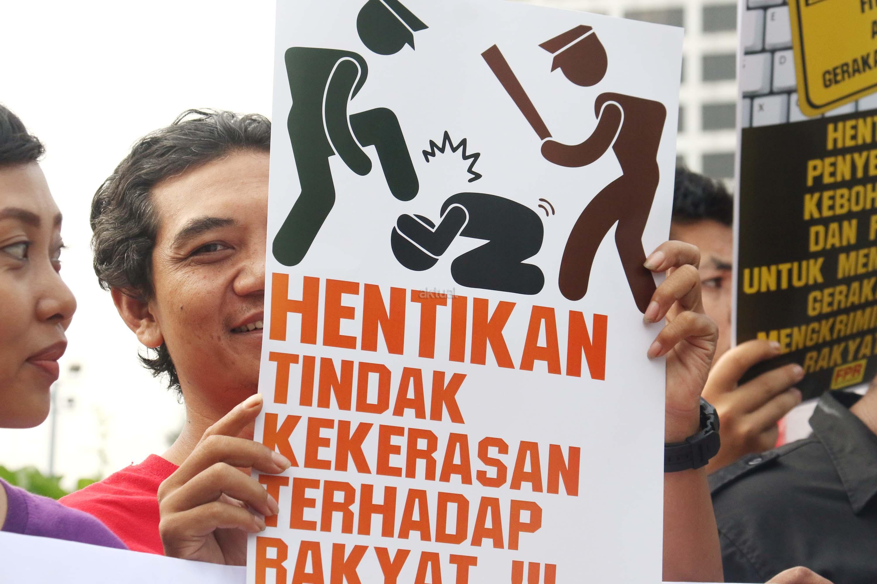Dalam aksinya Front Perjuangan Rakyat (FPR) untuk memperingati 19 tahun Reformasi dan menolak keputusan pemerintah secara sepihak akan membubarkan organisasi dengan tudahan radikalisme dan membahayakan NKRI, cabut seluruh Perda yang membatasi kebebasan berpendapat di muka umum. AKTUAL/Munzir