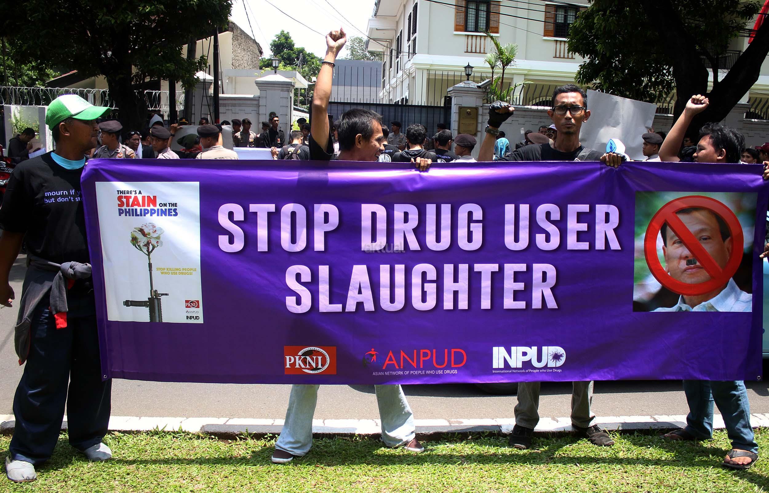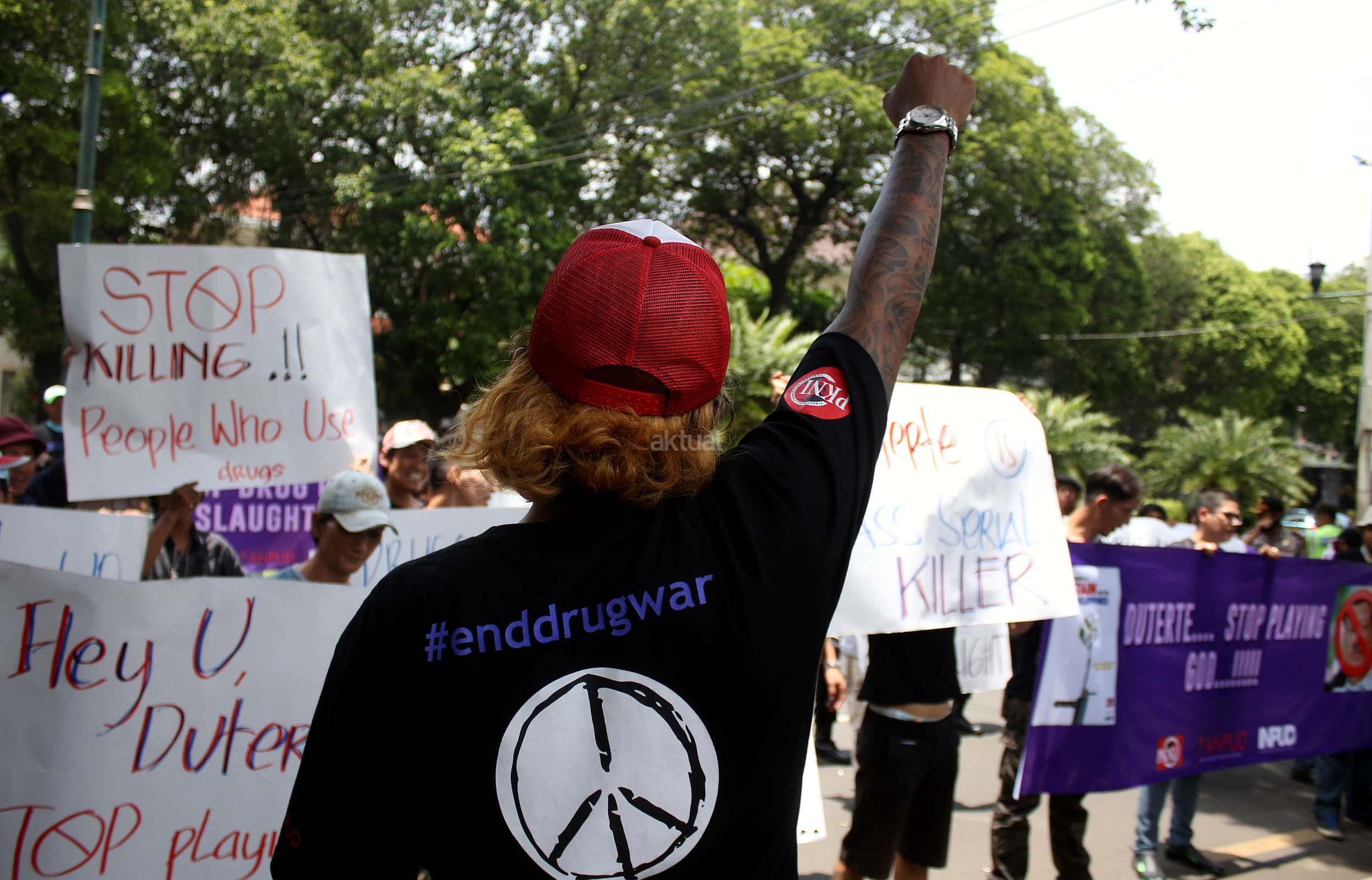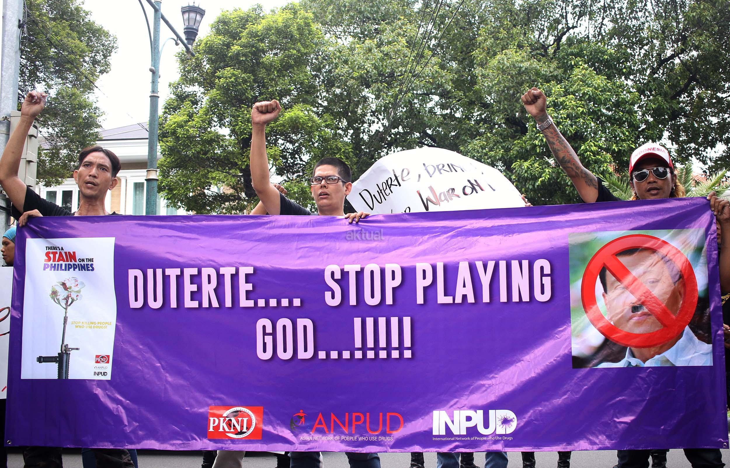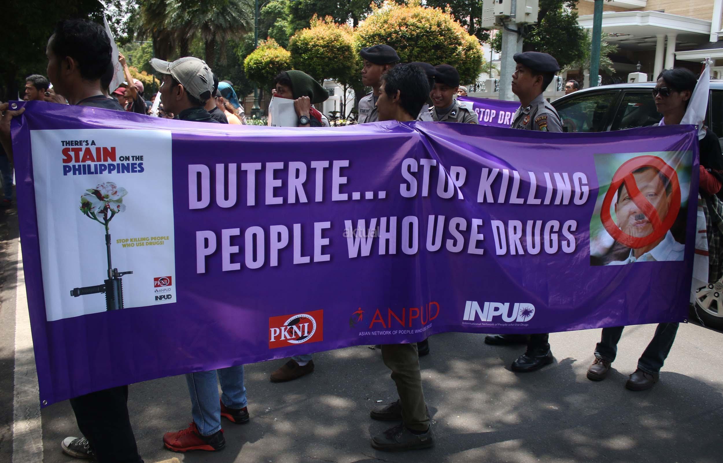 Dalam aksinya Persaudaraan Korban Napza Indonesia (PKNI) mengecam tindakan pembunuhan diluar proses hukum (extrajudiciak killing) terhadap para korban Napza atas nama perang terhadap narkotika seperti yang dilukakan oleh Presiden Filipina Redrigo Duterte.