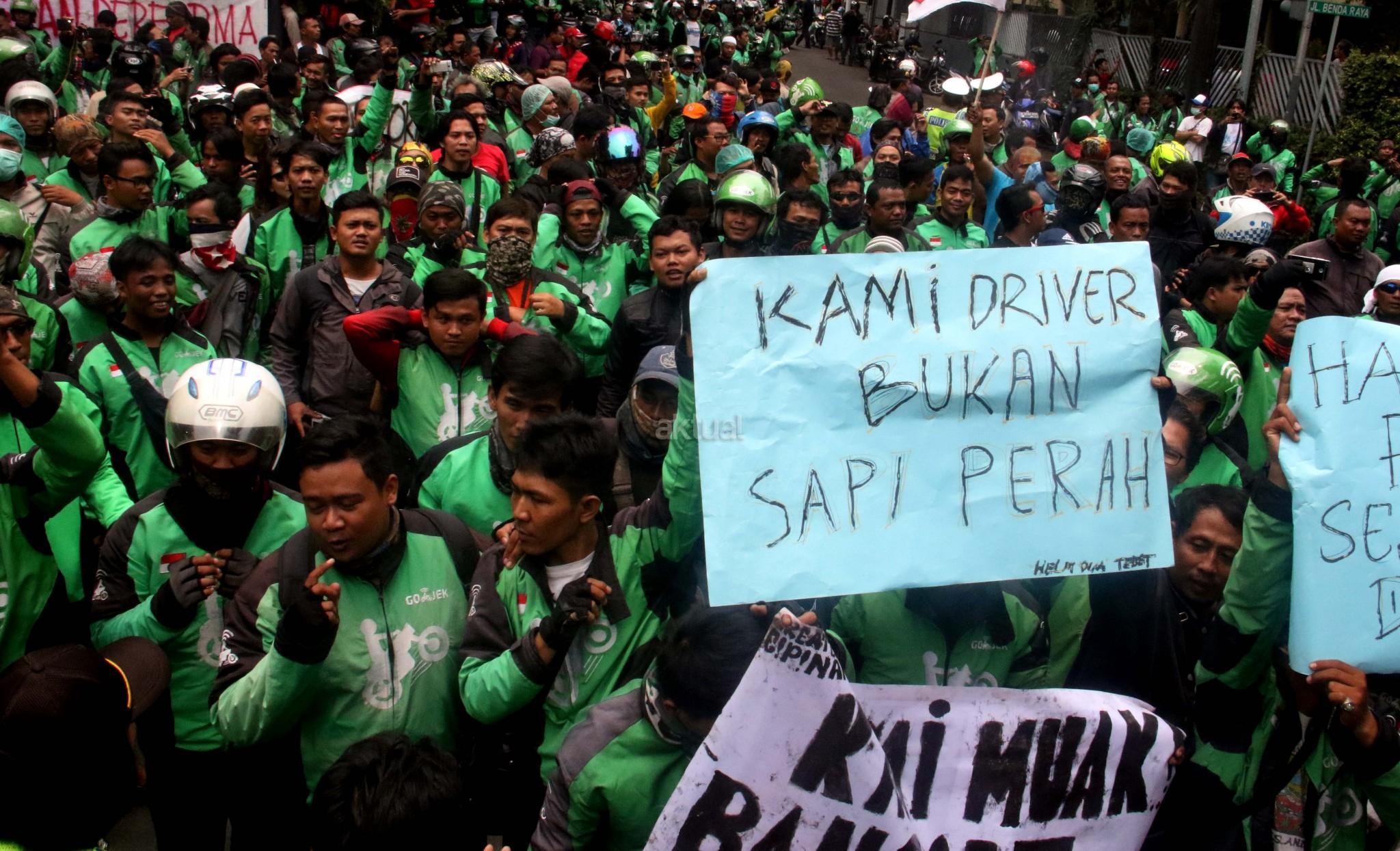 Tolak Sistem Aplikasi Baru, Ribuan Driver Gojek Mogok Beroperasi