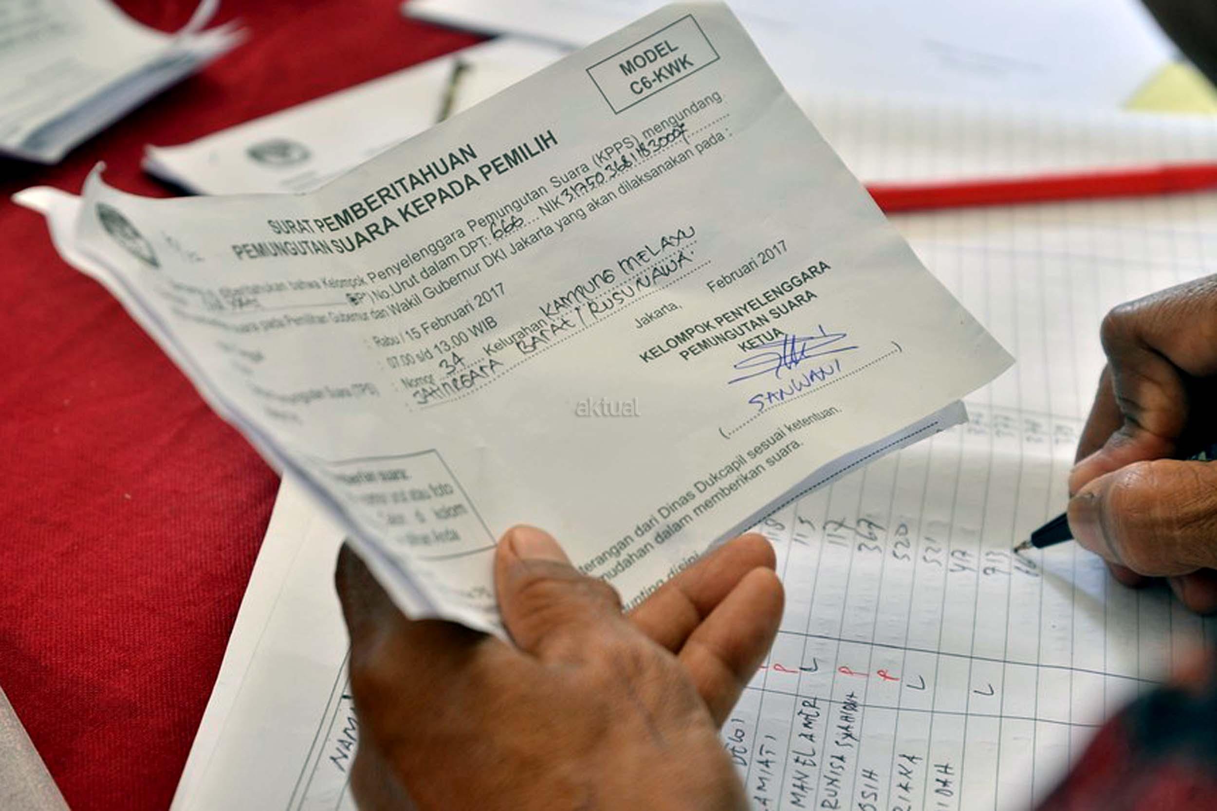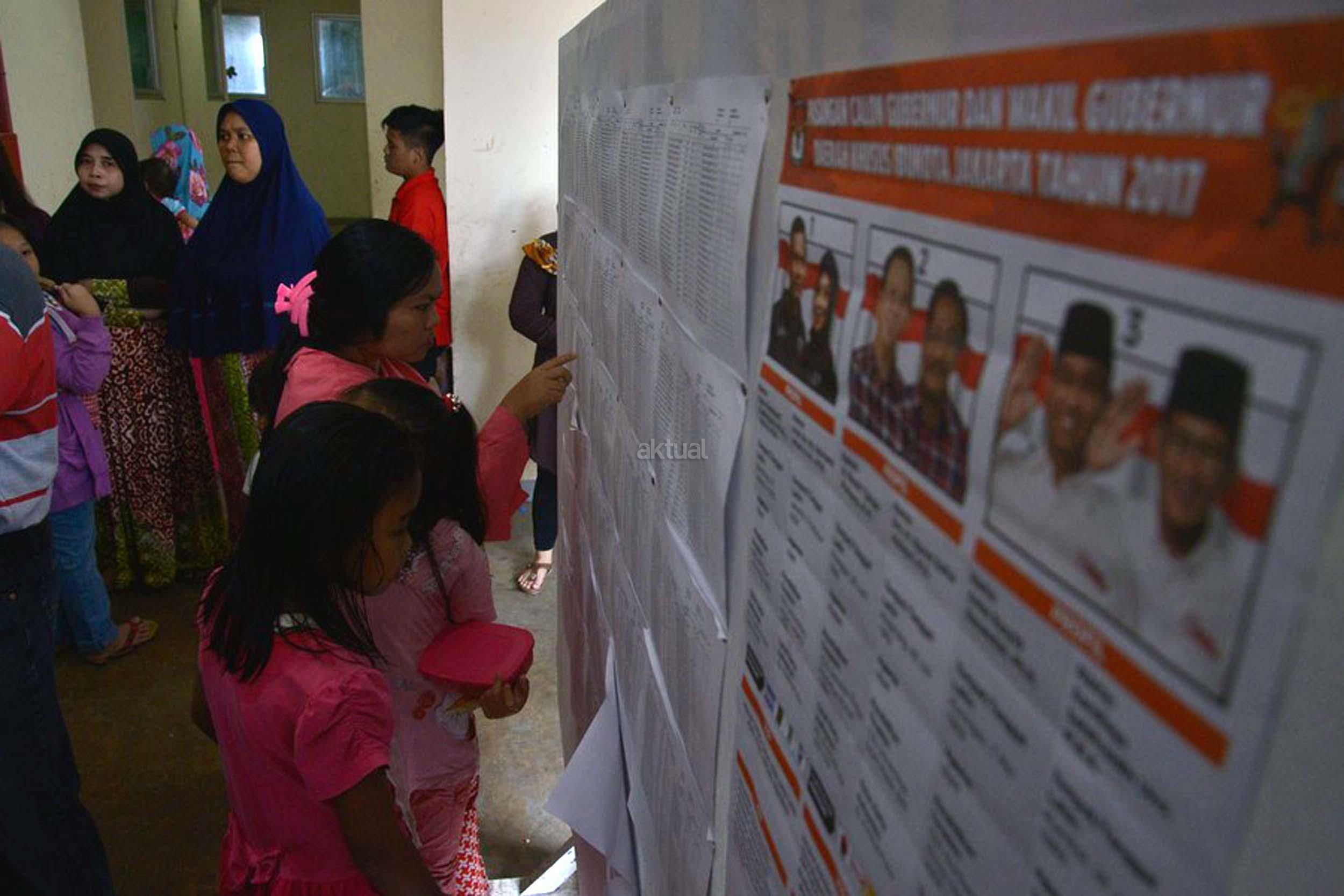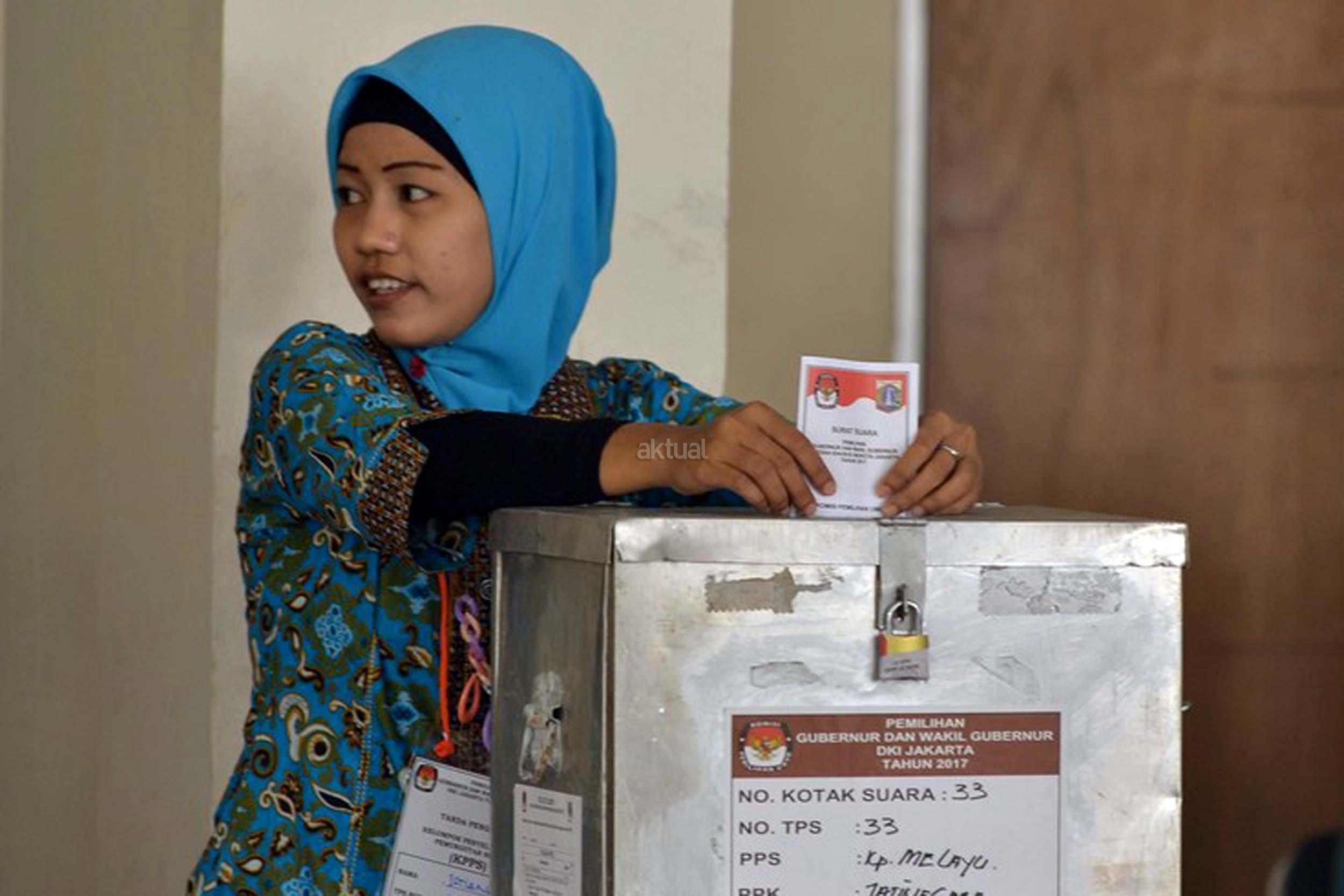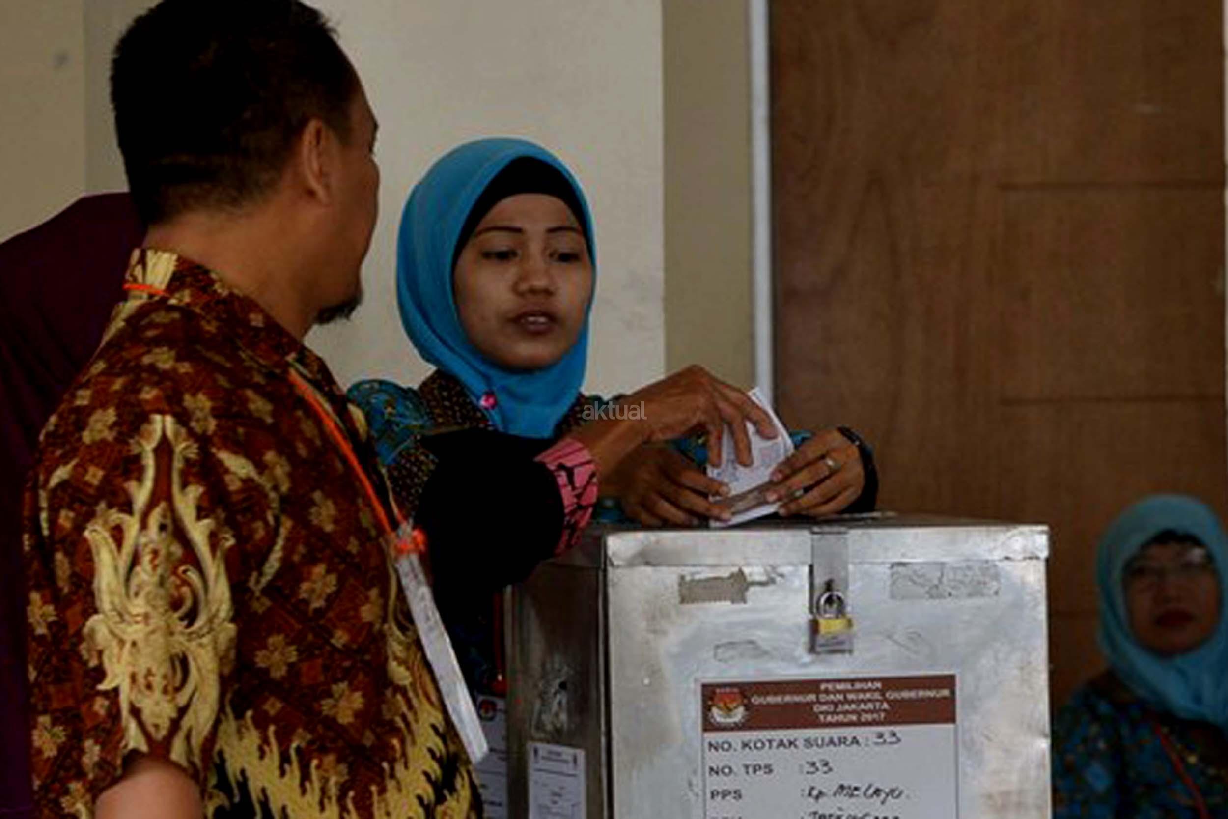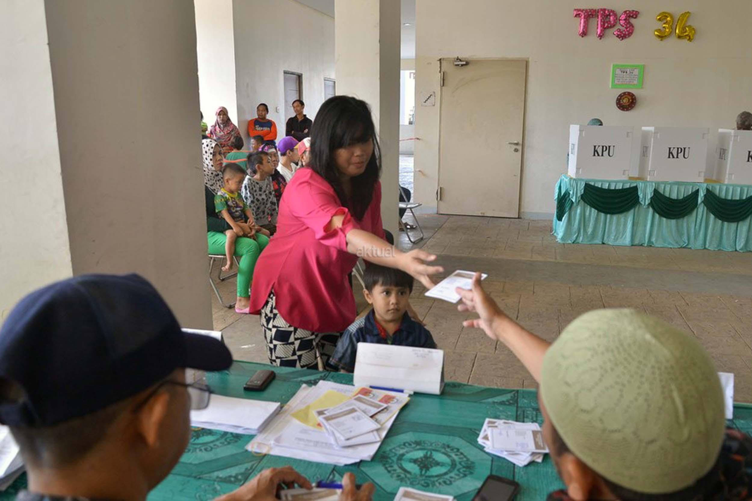 Para penghuni rumah susun Jatinegara, Jakarta Timur terlihat antusias memberikan hak suaranya di Pemilihan Kepala Daerah DKI Jakarta 2017, Rabu, (15/2/2017). Mereka yang memilih merupakan warga yang direlokasi dari lokasi penertiban di Kampung Pulo, Kampung Melayu, Jatinegara, Jakarta Timur.