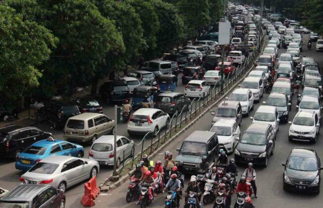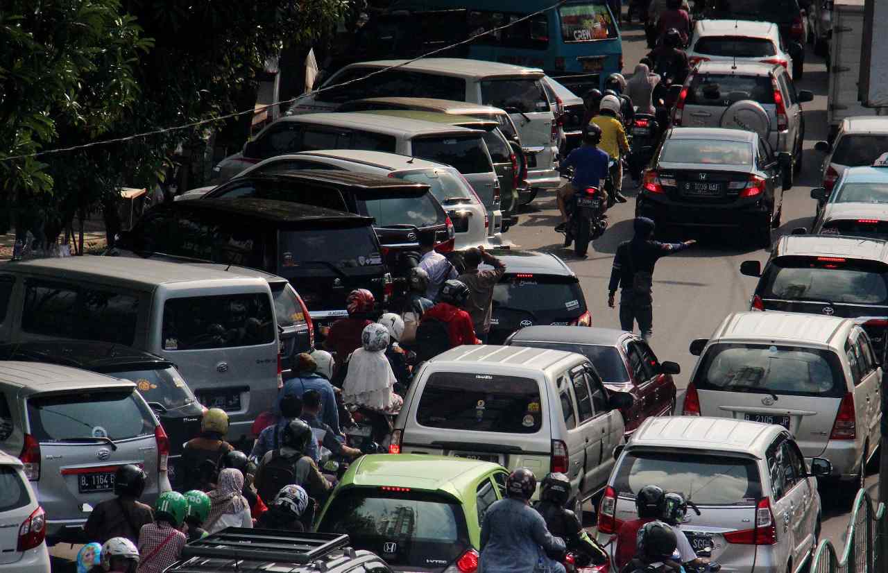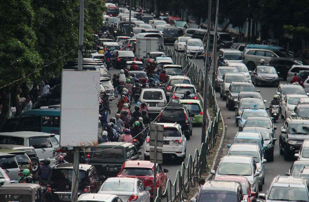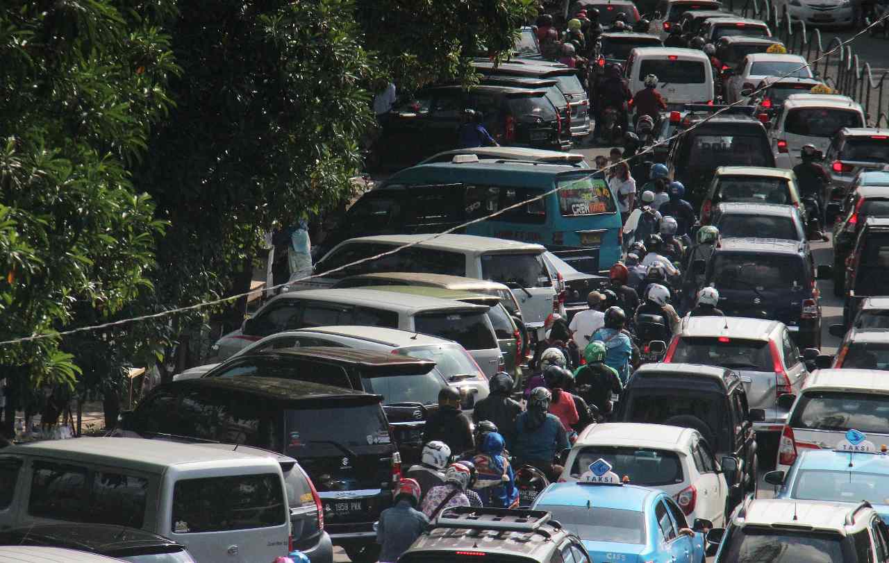 Kondisi arus lalu lintas di depan TPU Karet Bivak yang berada di Jalan. Penjernihan I, Jakarta, Rabu (6/7/2016). Padatnya peziarah menyebabkan arus lalu lintas di depan TPU menjadi tersendat karena warga memarkir kendaraan di badan jalan.