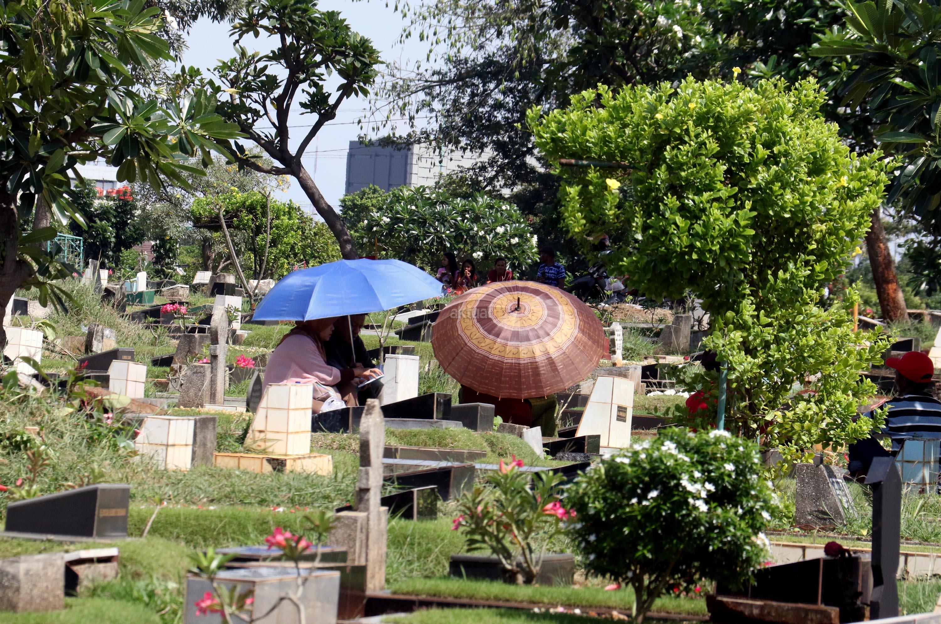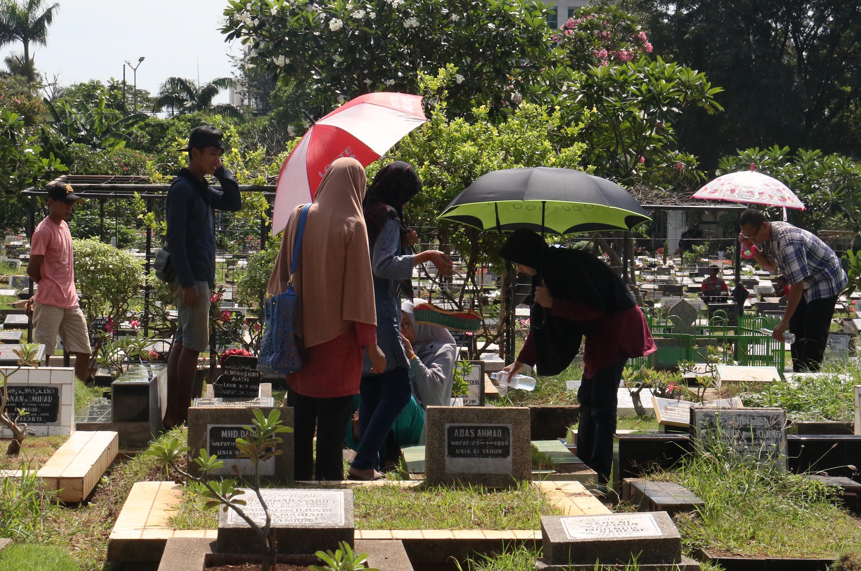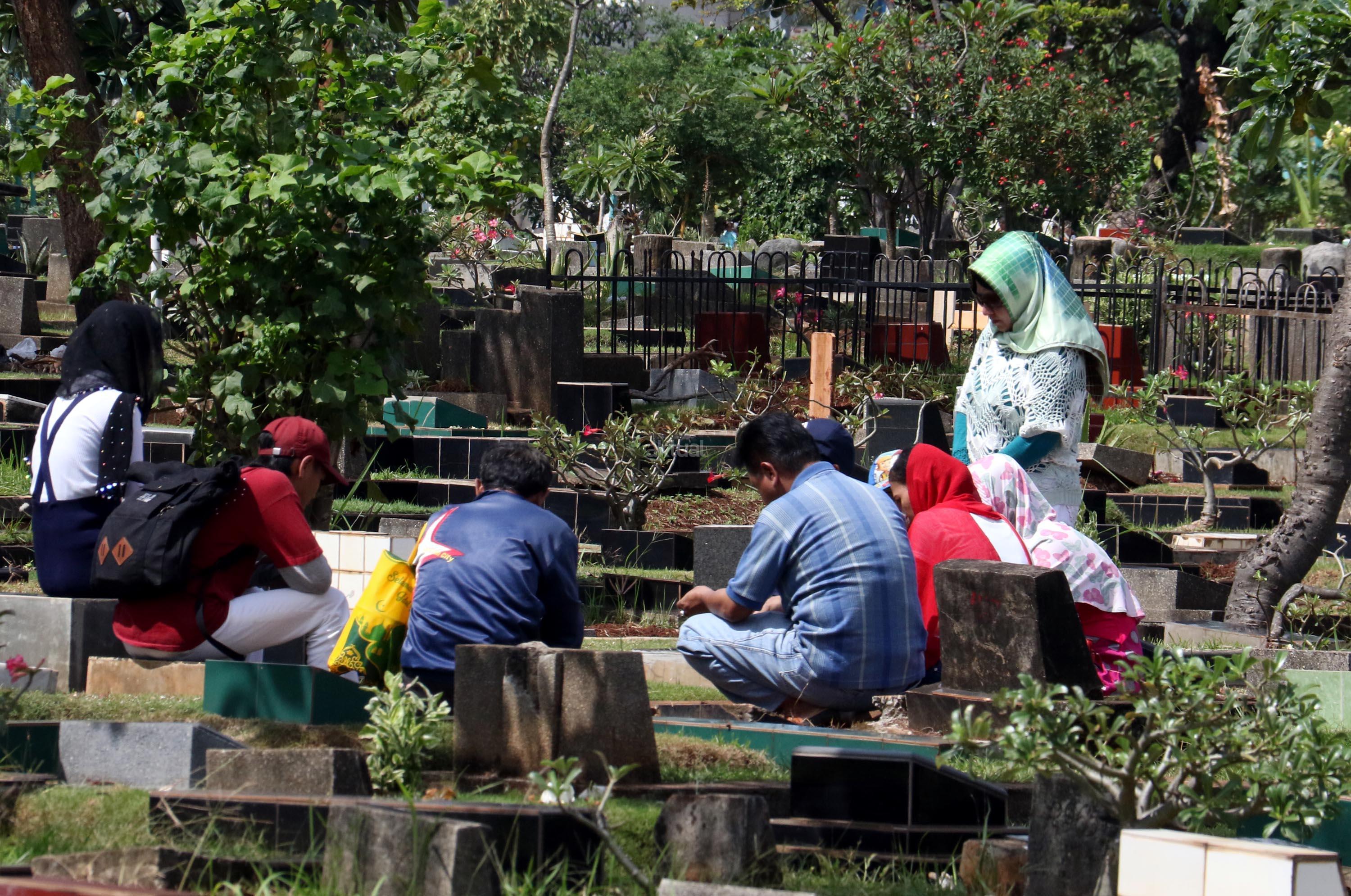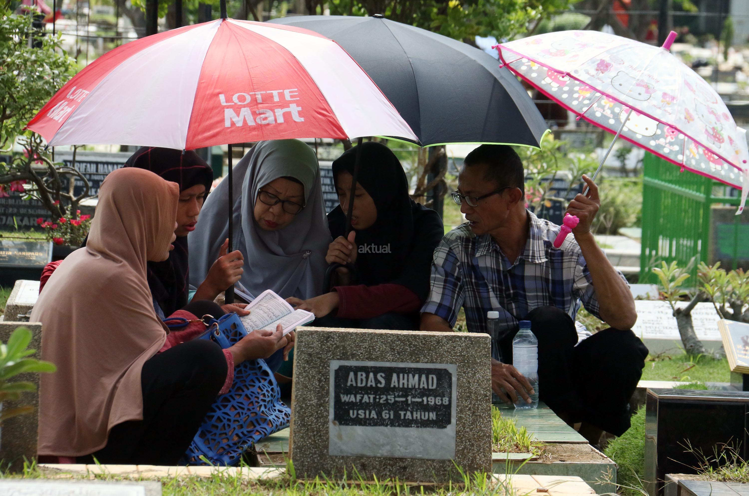 Umat Muslim berdoa saat ziarah kubur di Tempat Pemakaman Umum (TPU) Karet Bivak, Jakarta, Selasa (27/6/2017). Tradisi ziarah yang dilakukan umat muslim usai melakukan salat Idul Fitri adalah acara tahunan. AKTUAL/Munzir